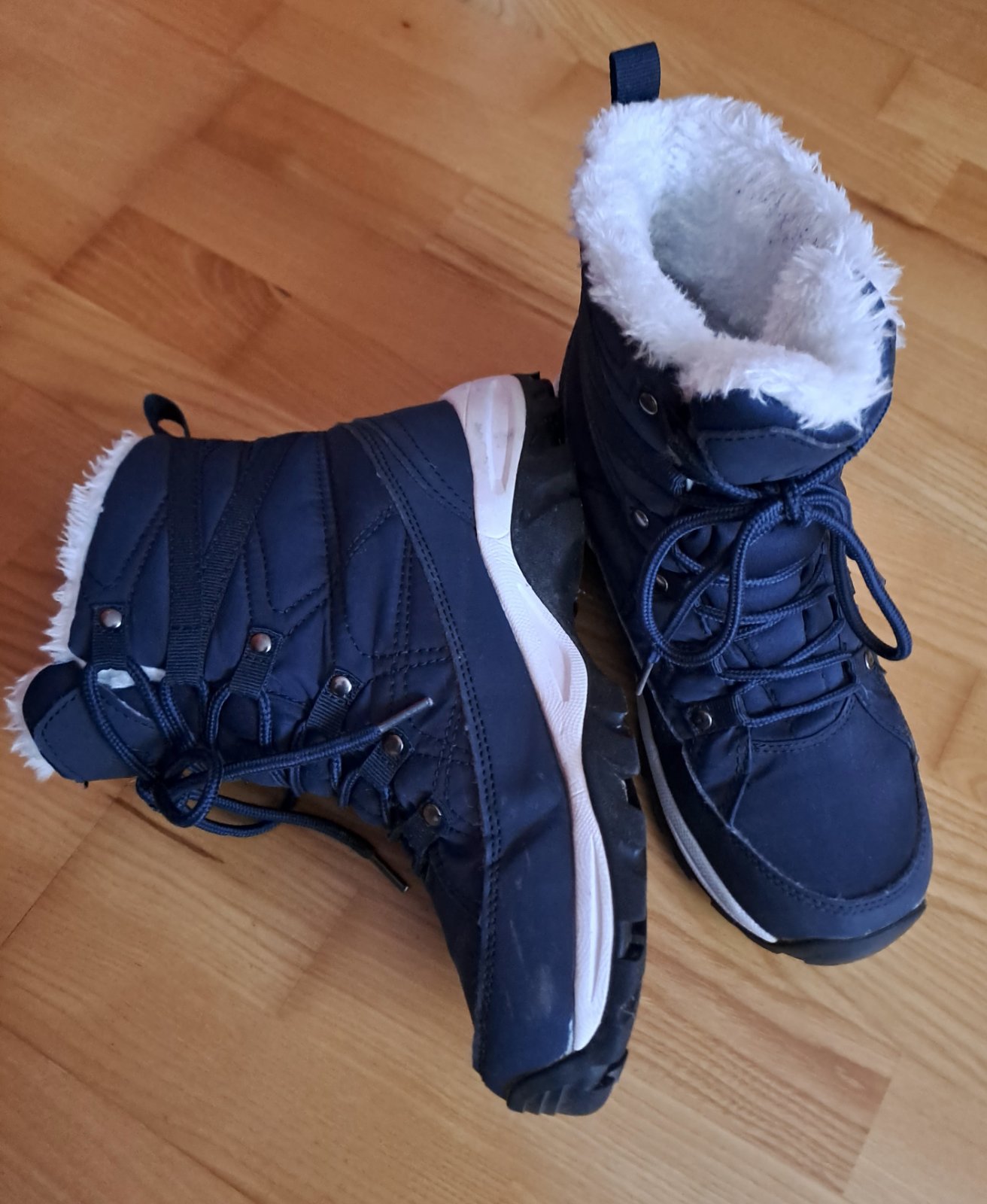 Predám zimné topánky, veľkosť č.37, málo používané, vôbec neschodené. Výhodou je rýchle obúvanie a možnosť prispôsobiť si ich šírke nohy šnúrkami na zaväzovanie. Podrážka je protišmyková.