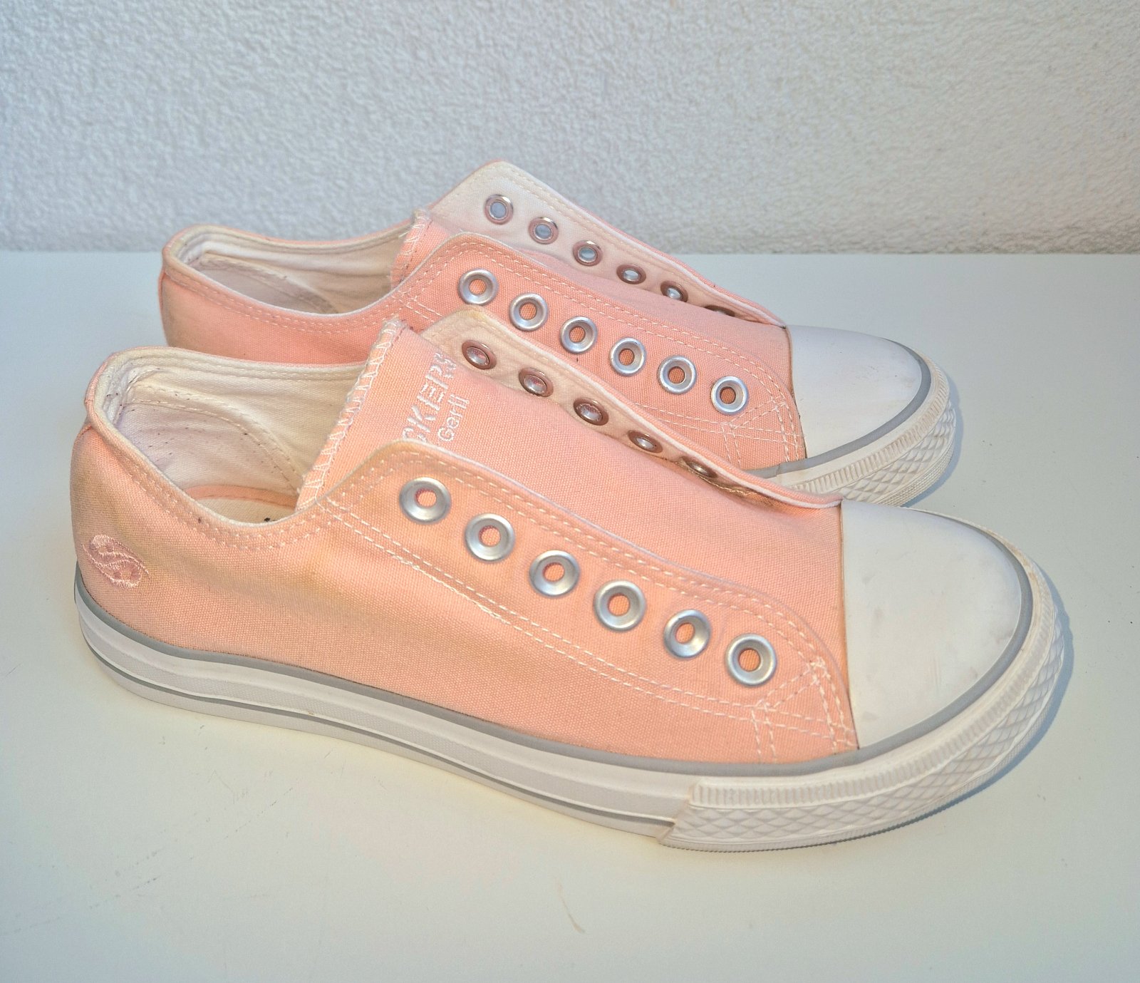 Ružové tenisky, velkost 38. Nosené, velmi dobrý stav. Sú bez šnúrok, dierky sú len na okrasu. A su na gumičku. Vnútorná dlžka chodidla 23-23,5cm.