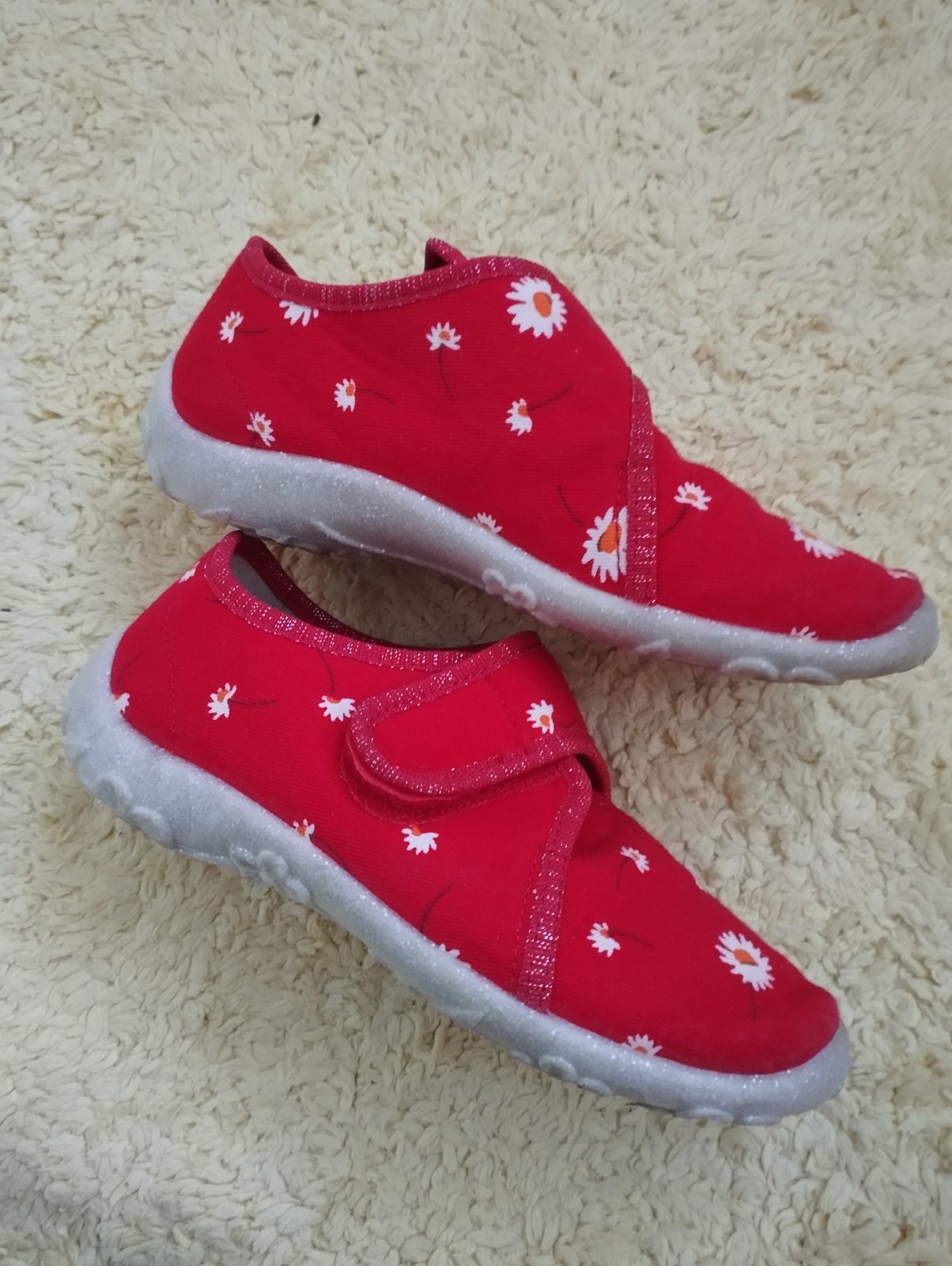 Nosené len dcérkou necelý školský rok, stále sú v peknom nosenom stave, nosenie vidno len na farbe. Verím že ešte niekoho potešia. VD cca. 19 cm. PC 28€. Plus poštovné.