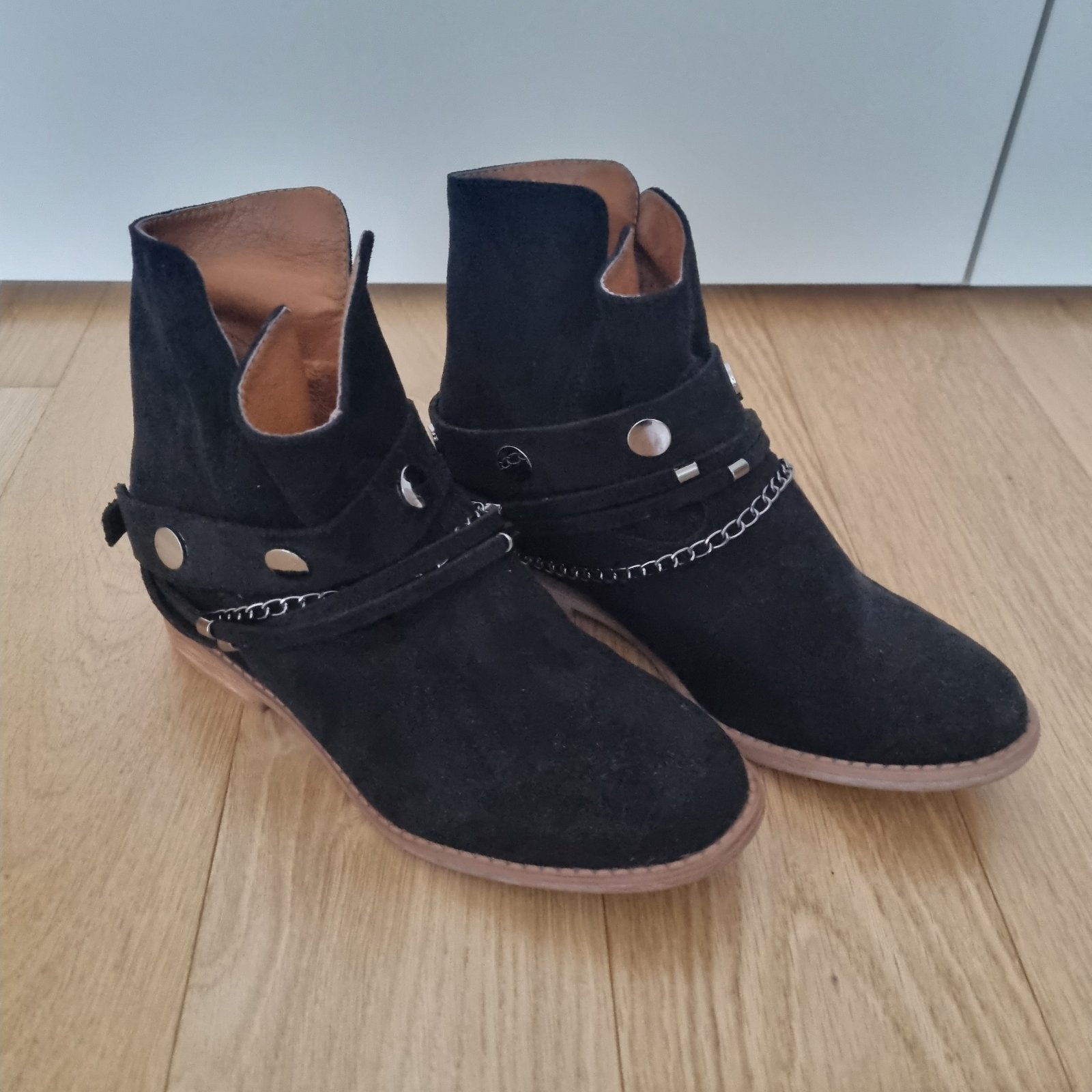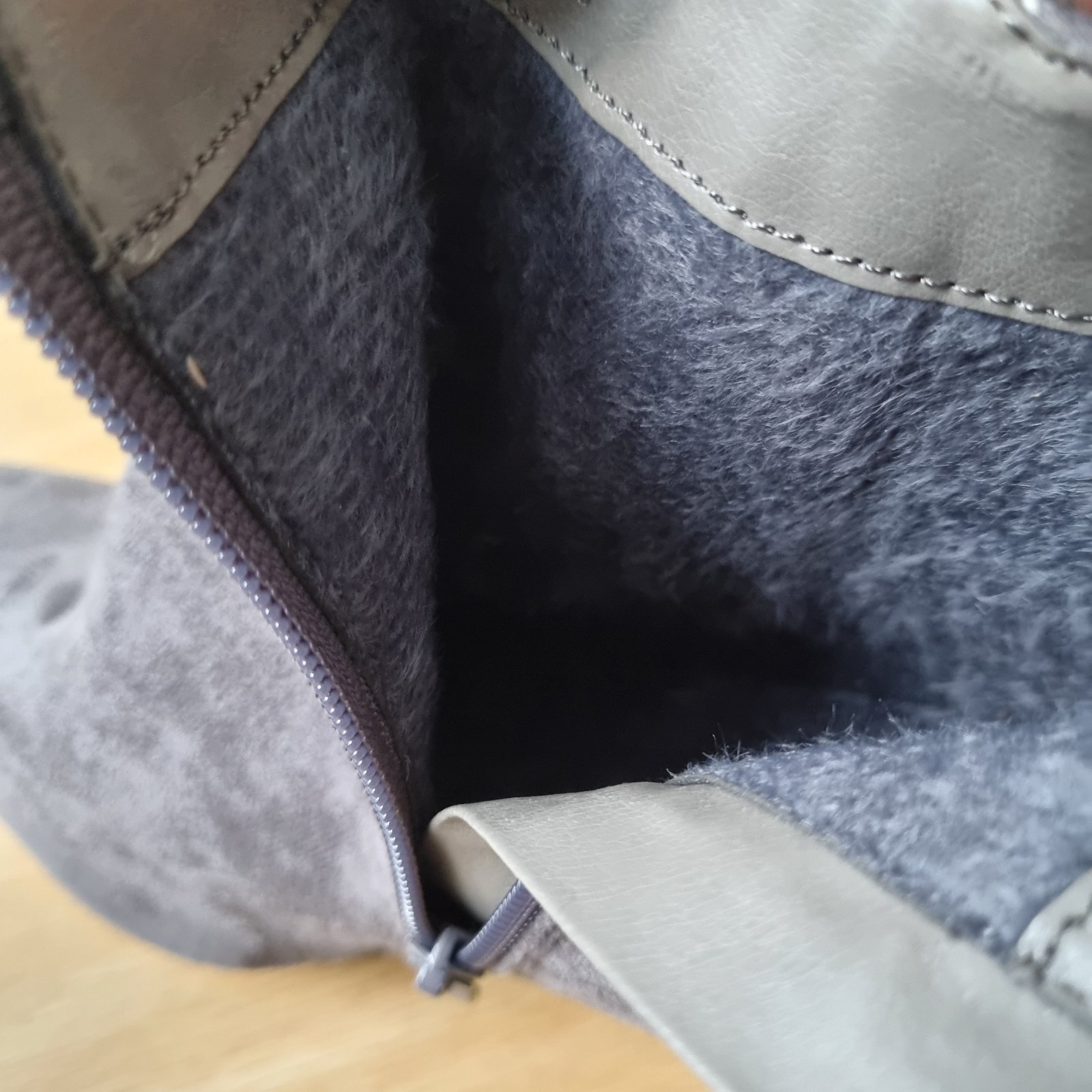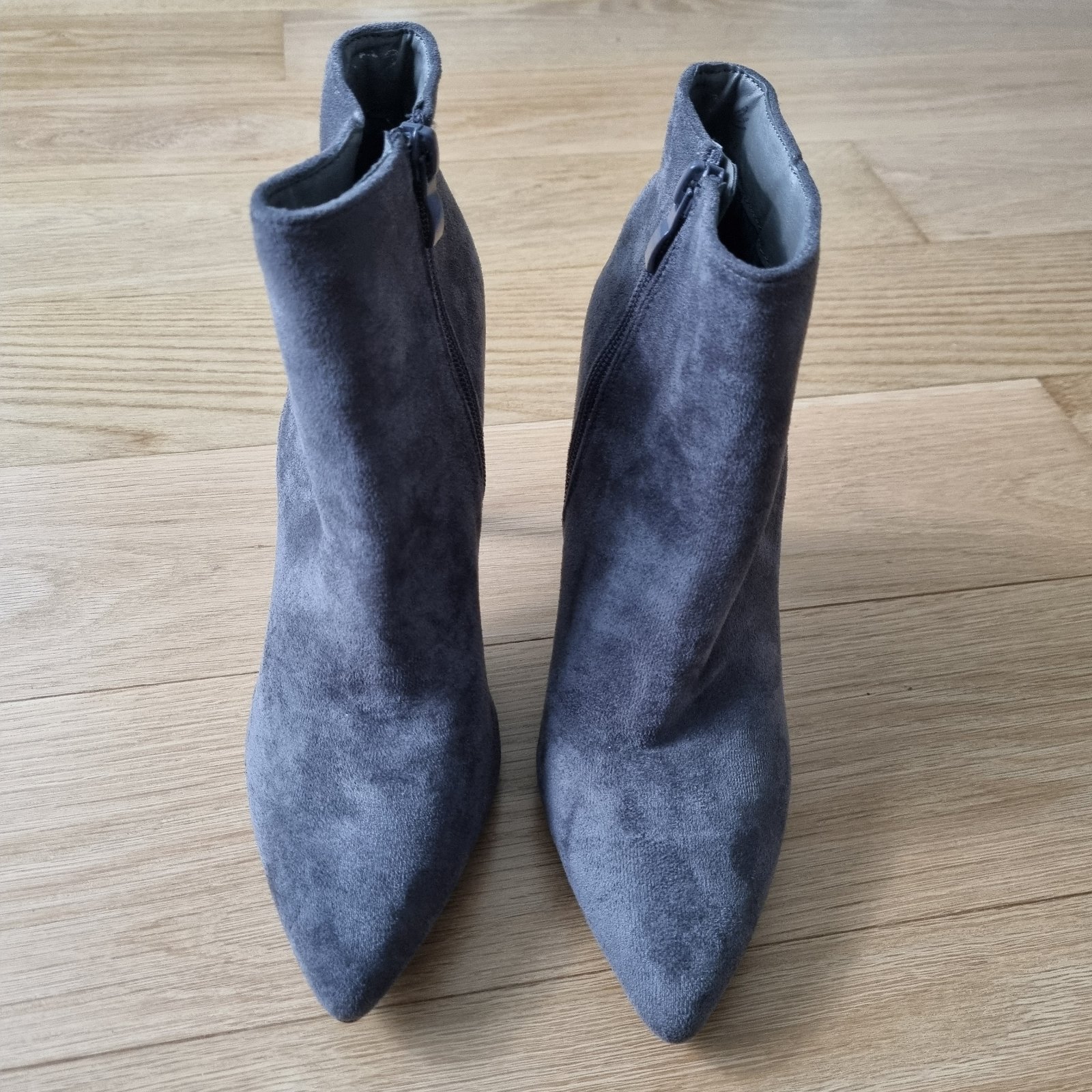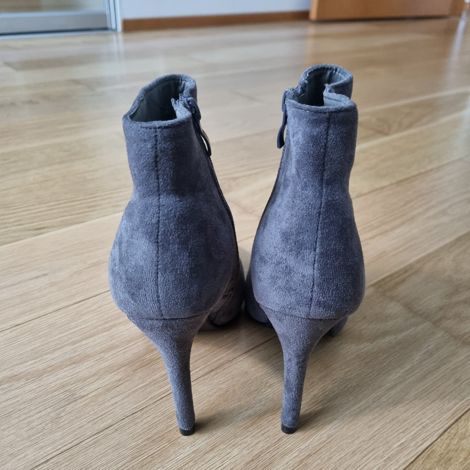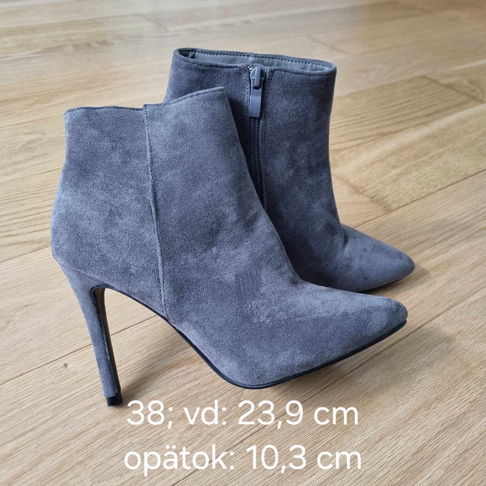 - šedé členkové čižmy s opätkom - veľ. 38, VD: 23,9 cm, výška opätku: 10,3 cm.