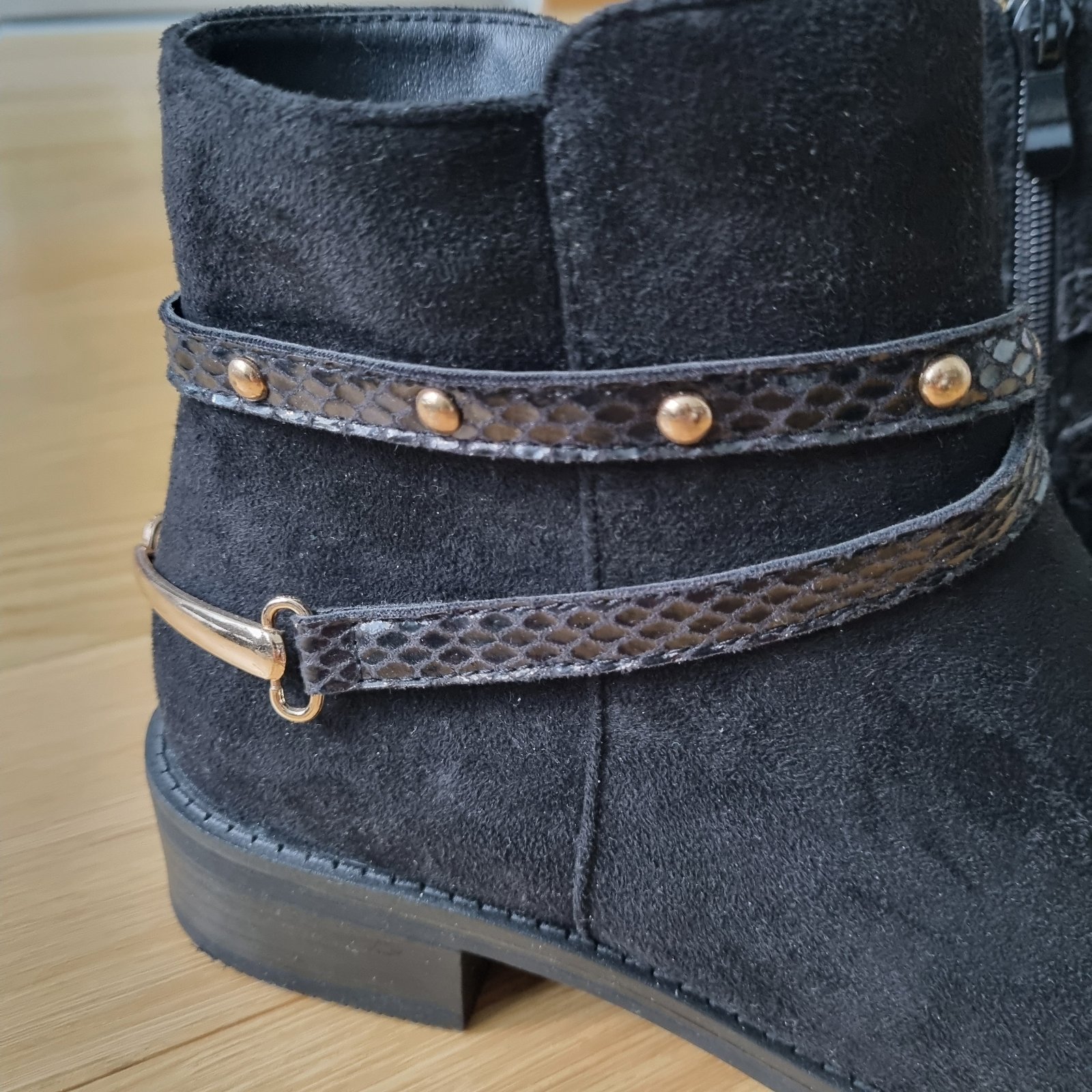 - nízke členkové čierne topánky so zlatou aplikáciou - veľ. 38, VD: 24 cm