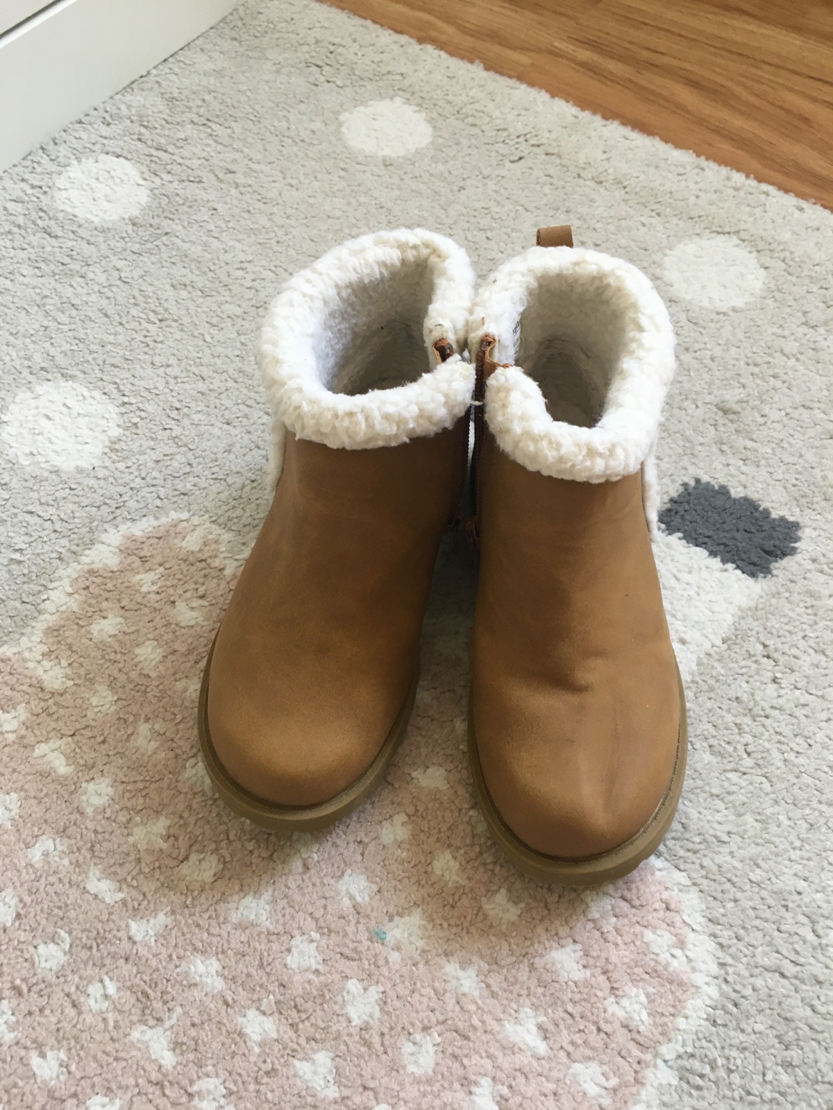 Veľmi pekný málo nosený stav, asi 5krát obuté, no stihli sme poškriabať jednu špičku.