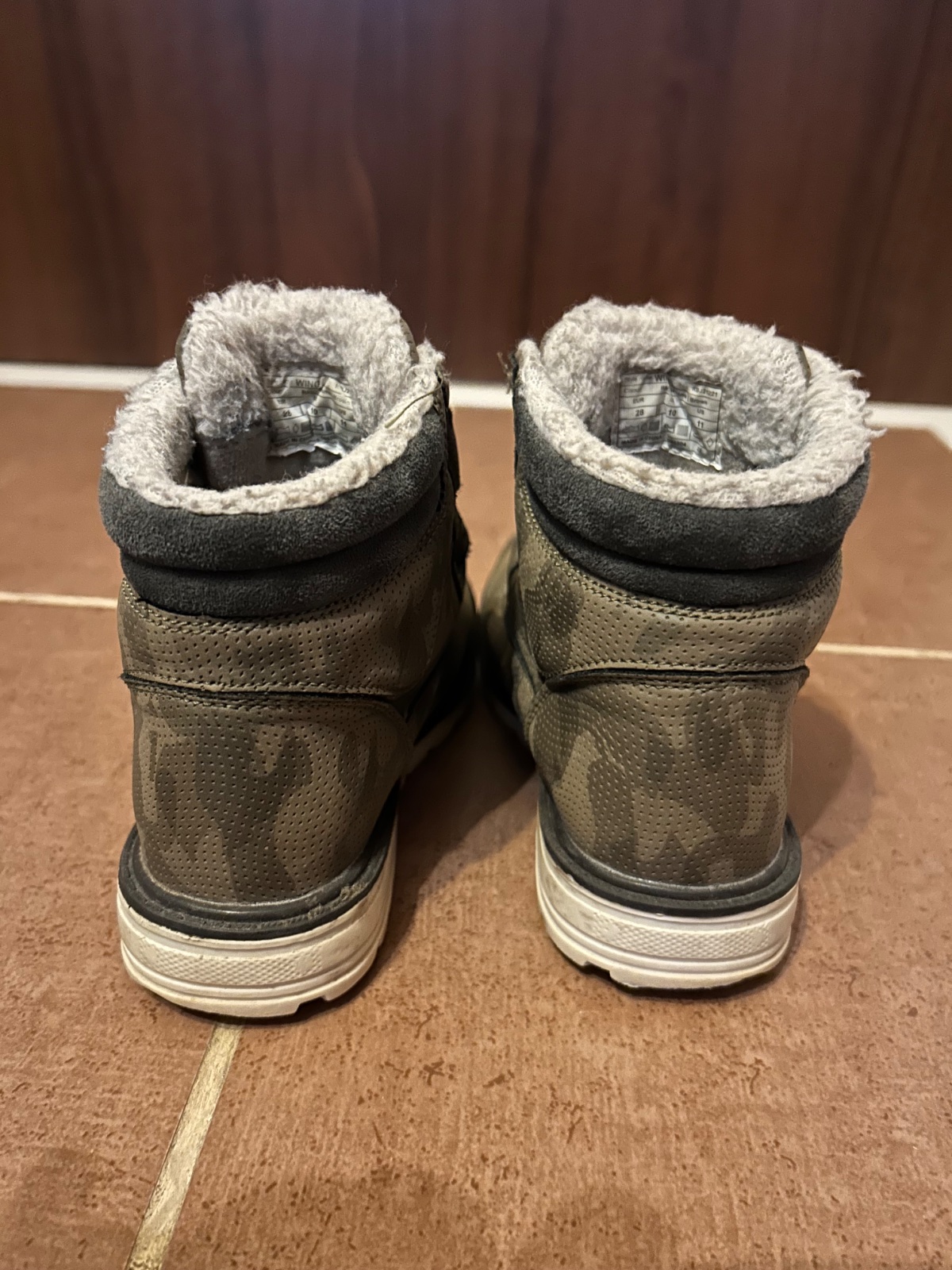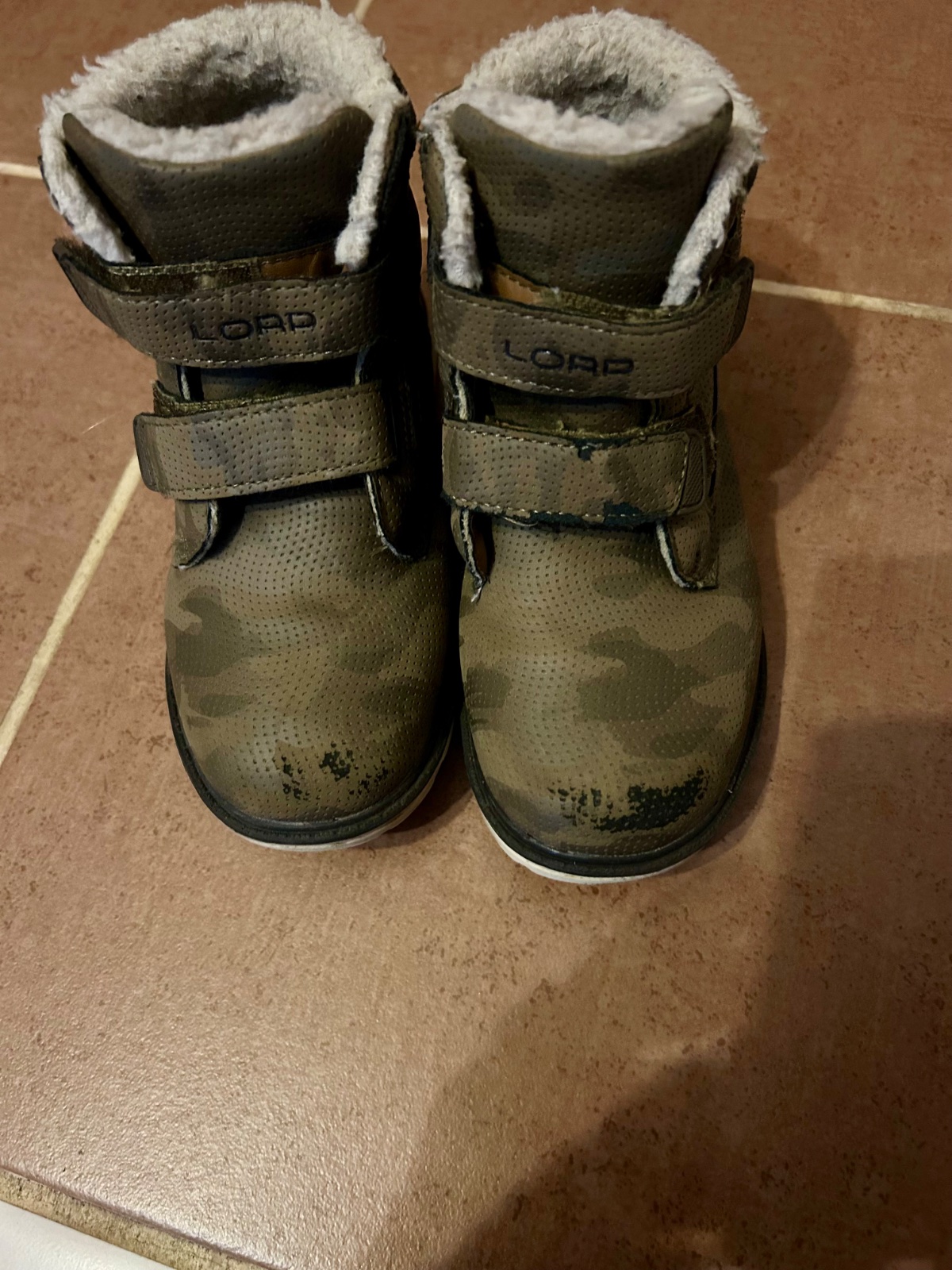 Čižmy sú praktické, teple, špička je tvrdá. Vpredu sú ošúchané, vhodne na nosenie na ihrisko.