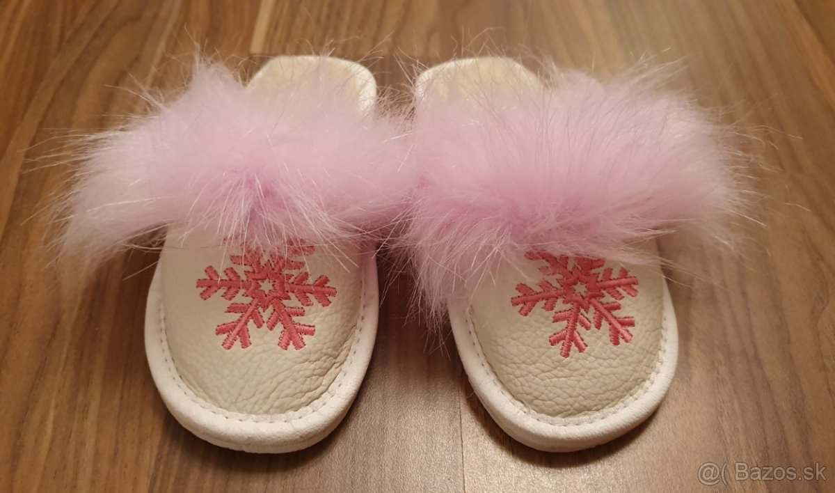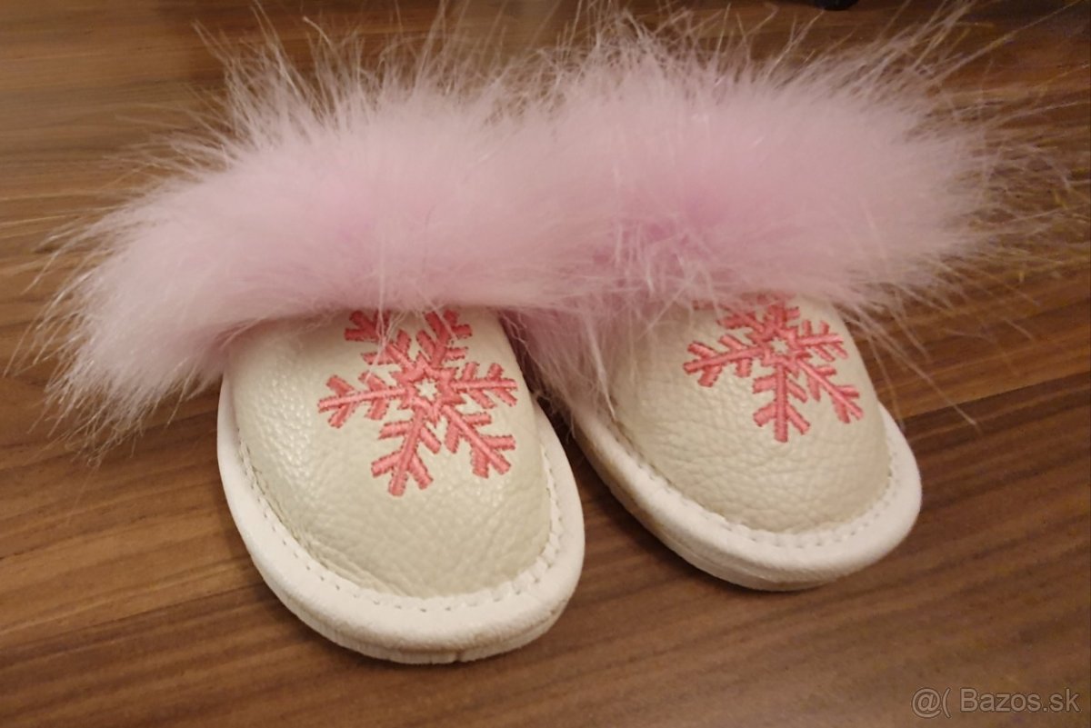 Predám papučky/šľapky v málo nosenom stave, veľmi zachovalé, vrchný materiál z pravej kože s výšivkou a vnútro kožušinové.