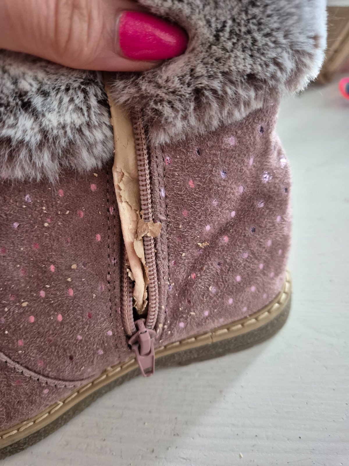 S trblietkami, neokopané. Avšak koženka vnútri pri zipse sa šúpe
