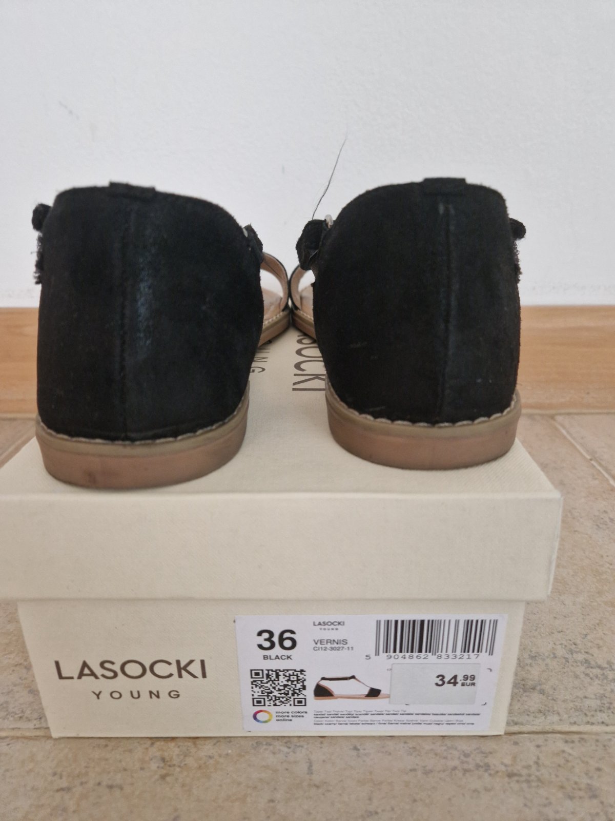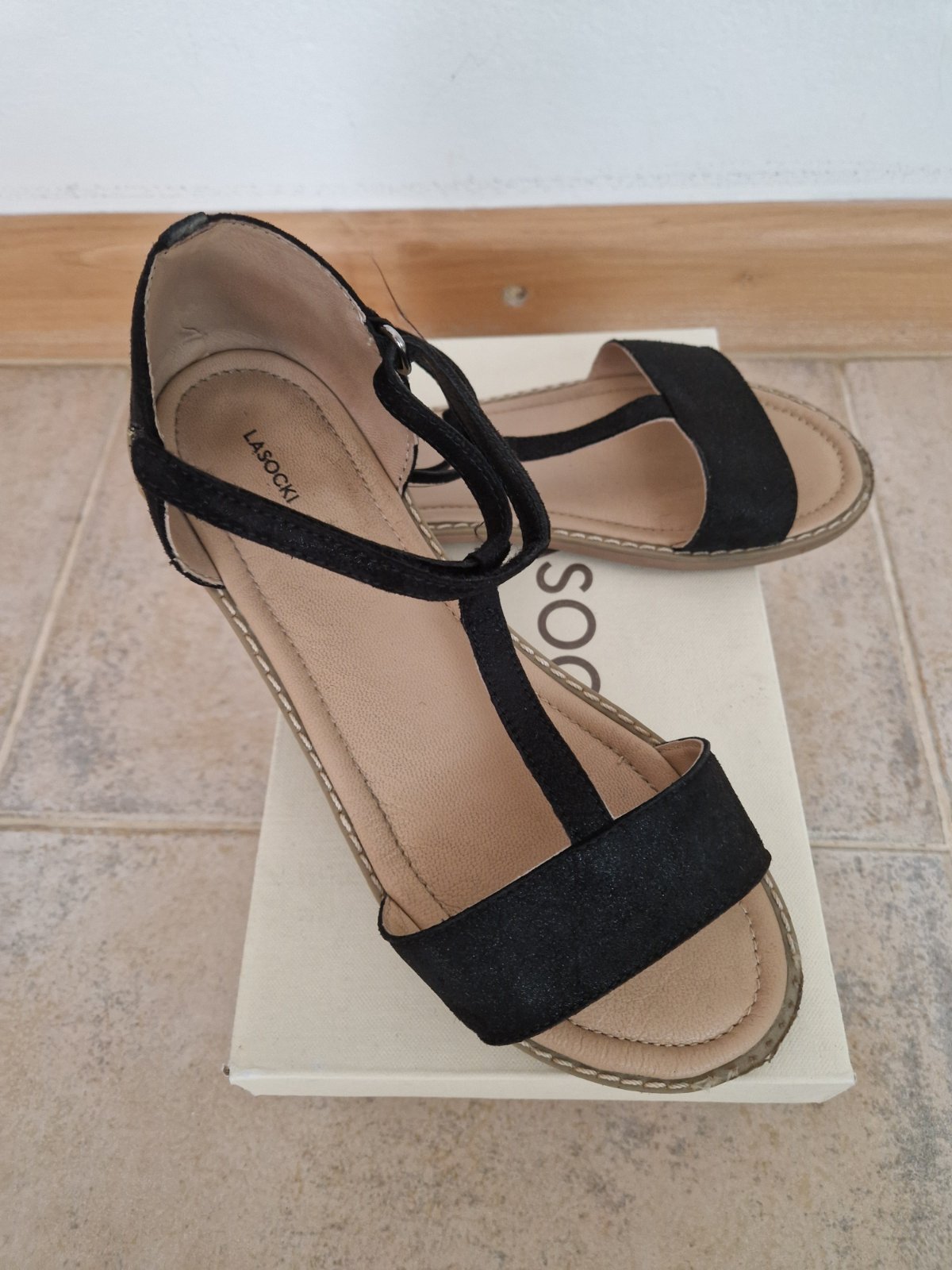 Krásne sandale, kožené, 36, Lasocki. Len na špičkách vidiet nosenie, inak top stav. Suché zipsy silno lepia, Pata nepolamana. Vnut dlzka cca 23cm. Viď dokladne obrázky.