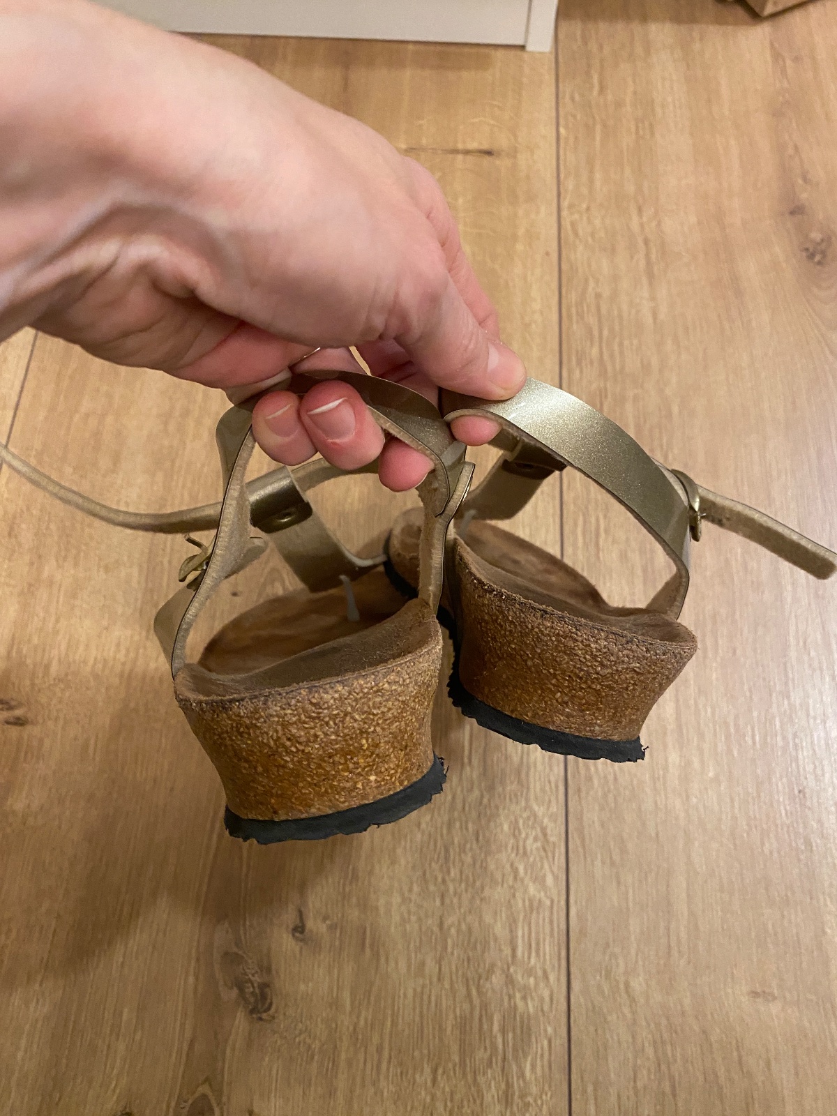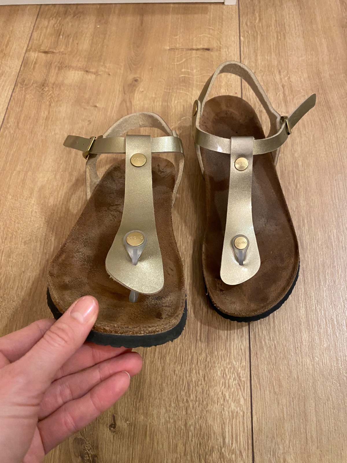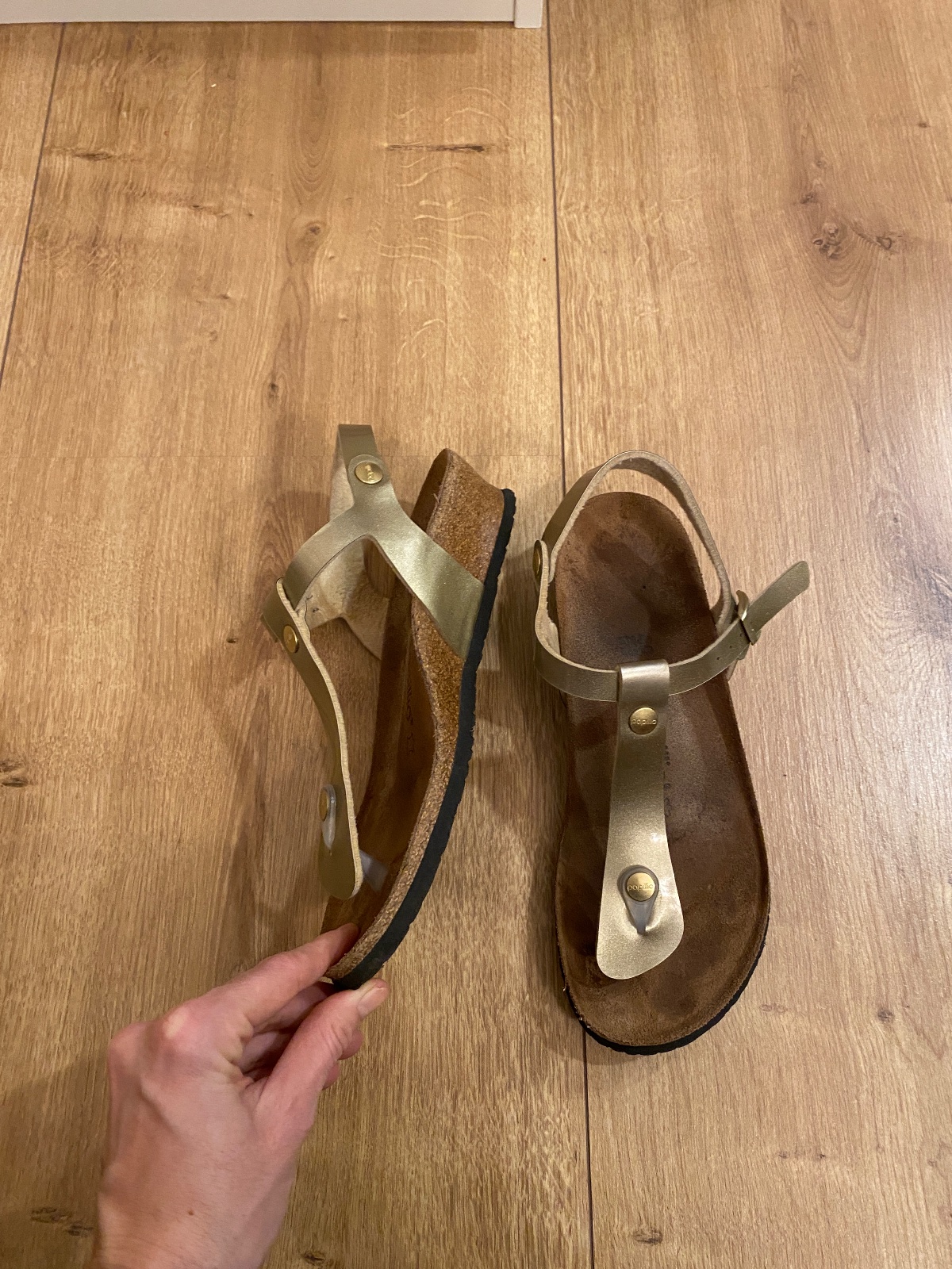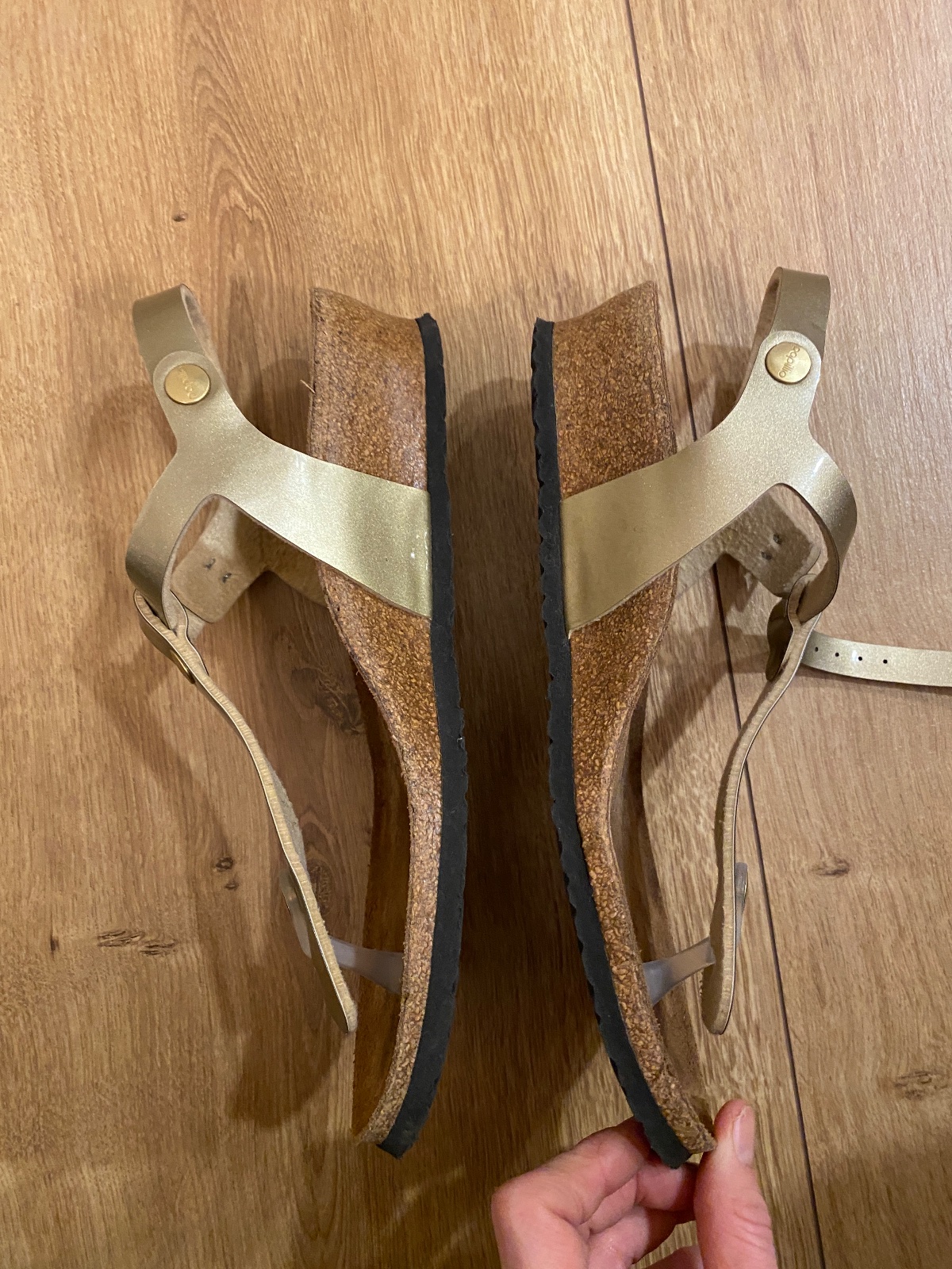 Ahojte, predám pohodlné zlaté sandale na mierne vyvýšenej podrážke.Veľkosť 40 sedi. V peknom nosenom stave bez poskodeni. Cena bez pakety pripadne osobne Ba Rača/ Ba Nivy.