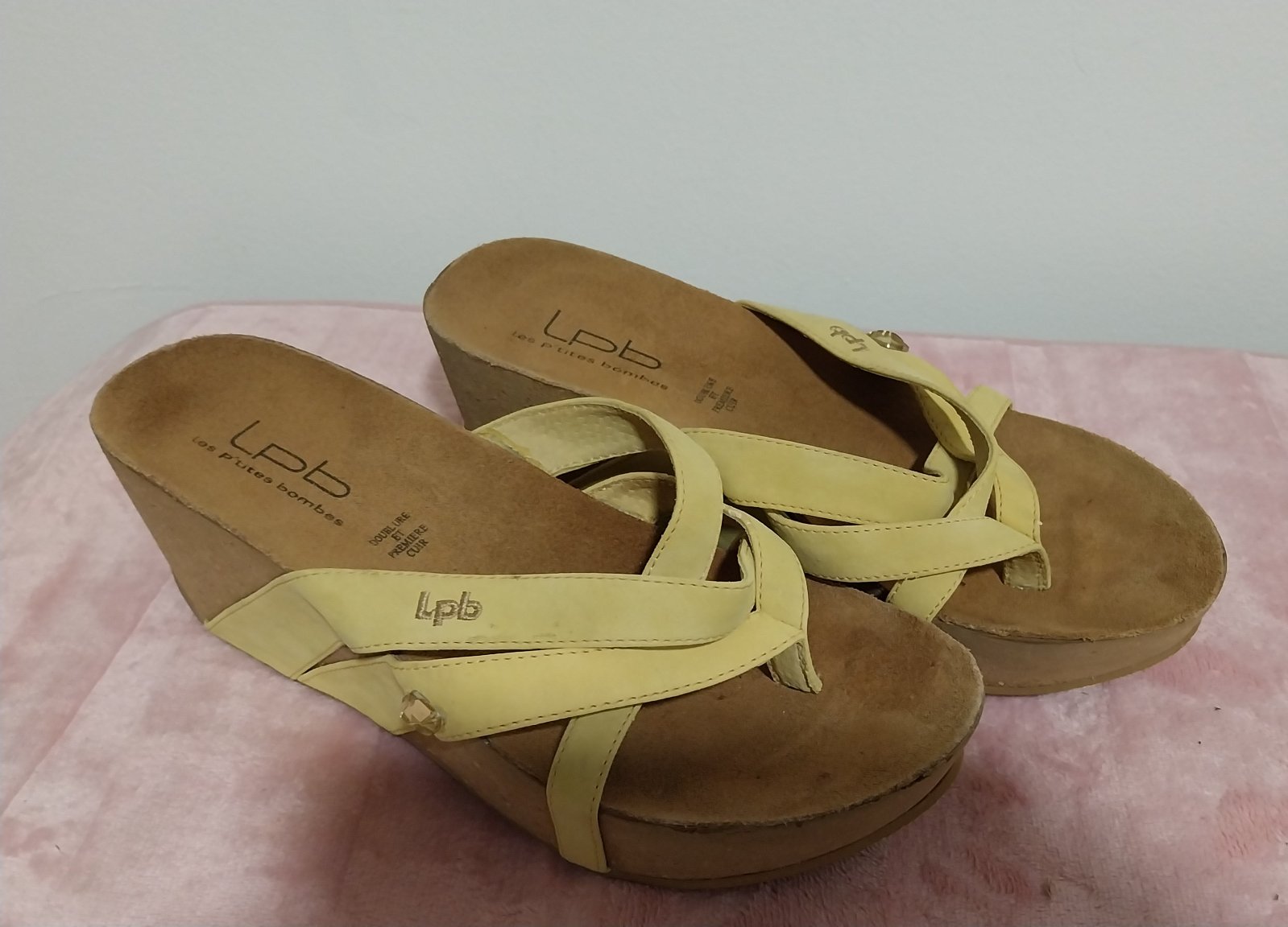 Letné korkové šlapky na klinovom korkovom podpätku. Materiál koža. Super stav, vidieť aj nafoto.