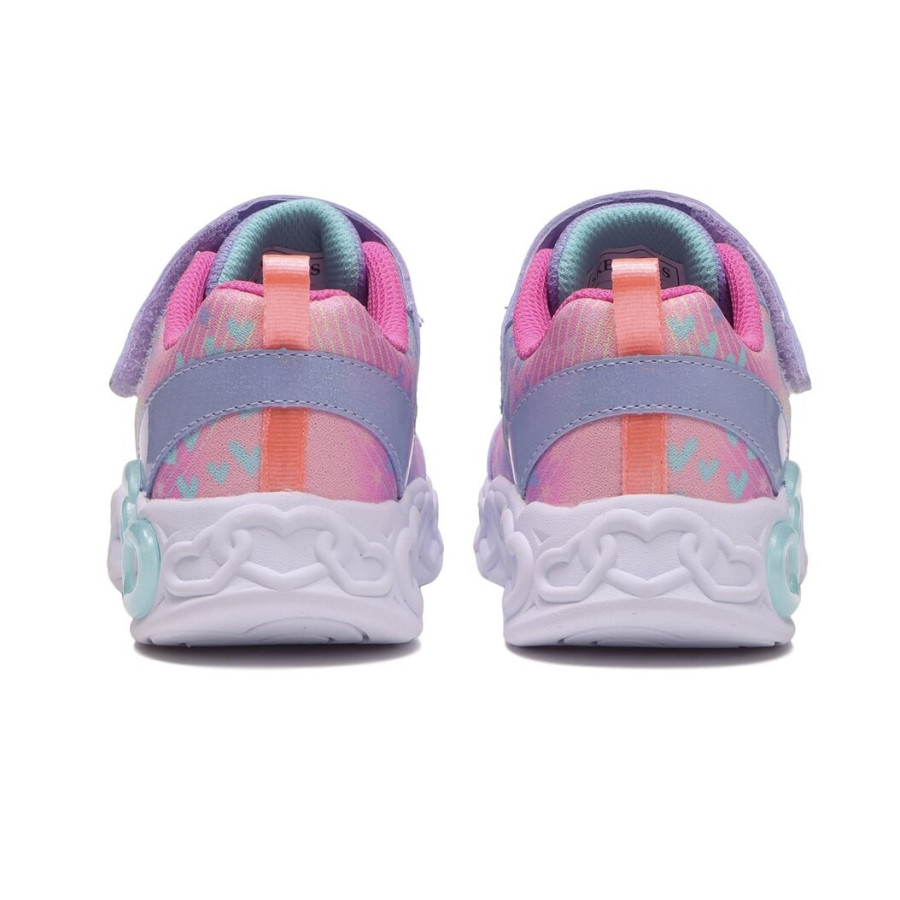 Dievčenské tenisky Skechers 303261L-LVMT zaujmú na prvý pohľad hravým pastelovým dizajnom a výraznou svietiacou podrážkou so srdiečkovým motívom. Model je navrhnutý pre malé deti, ktoré milujú farby, pohodlie a blikajúce detaily. Vďaka ľahkej konštrukcii a jednoduchému zapínaniu sú ideálne na každodenné nosenie do škôlky, na ihrisko aj vo voľnom čase.