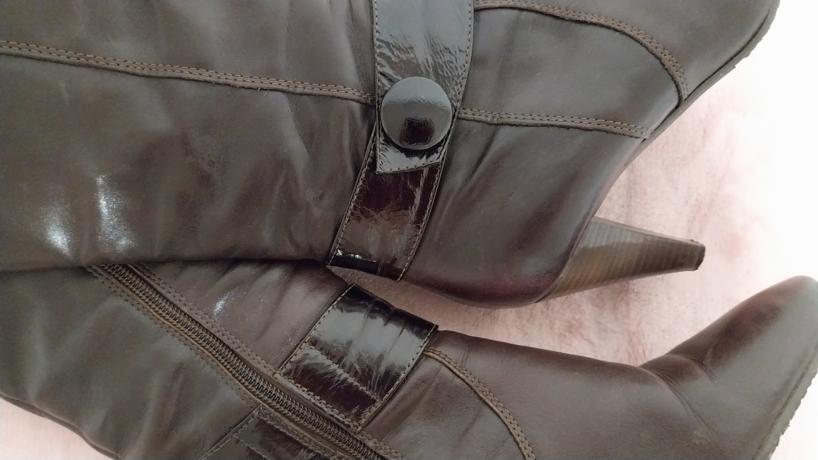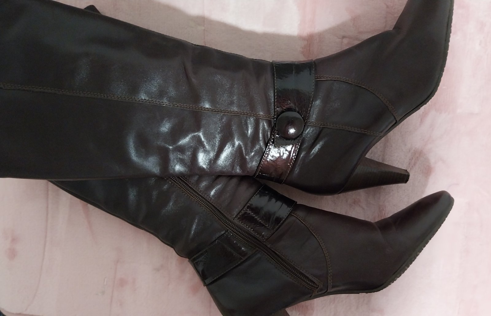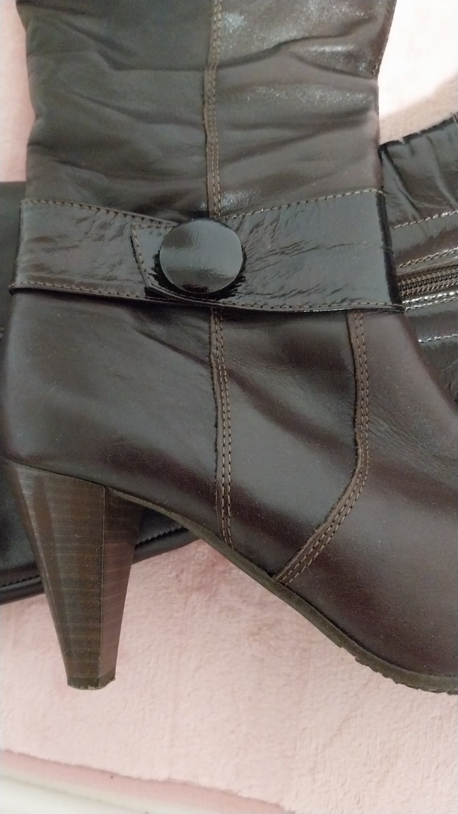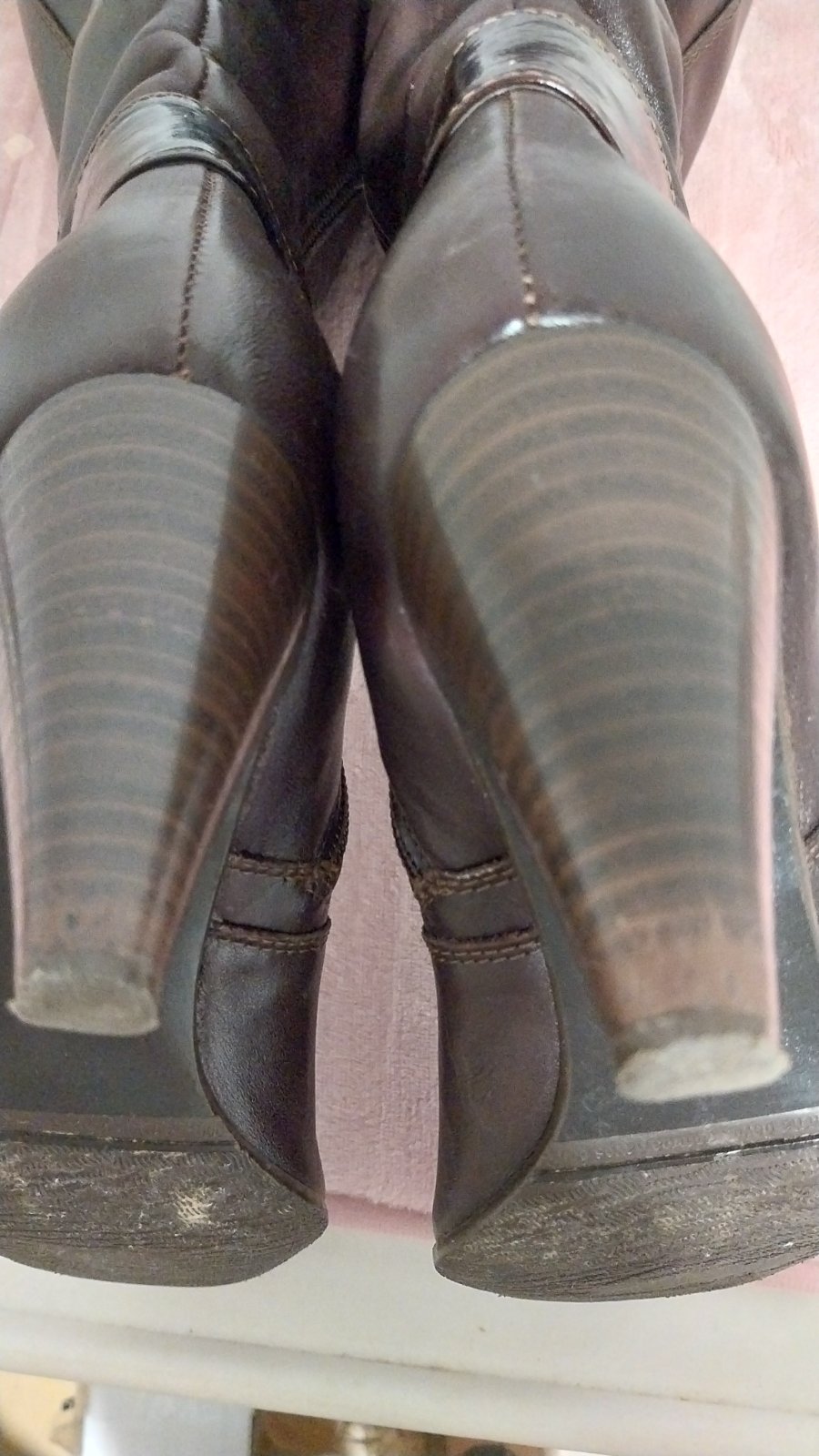 Hnedé čižmy na podpätku v TOP stave. Obuté veľmi málo. Nepoškodené. Jediná malička kozmetická vada je na podpätku - viď foto. Veľkosť sedí.