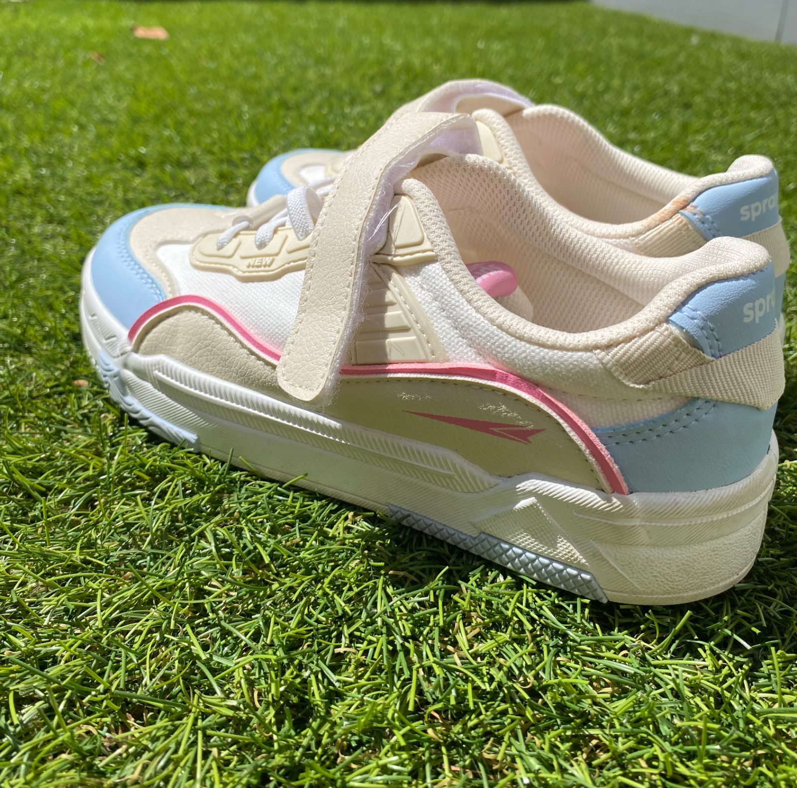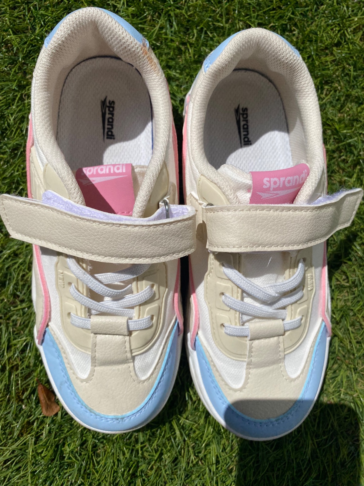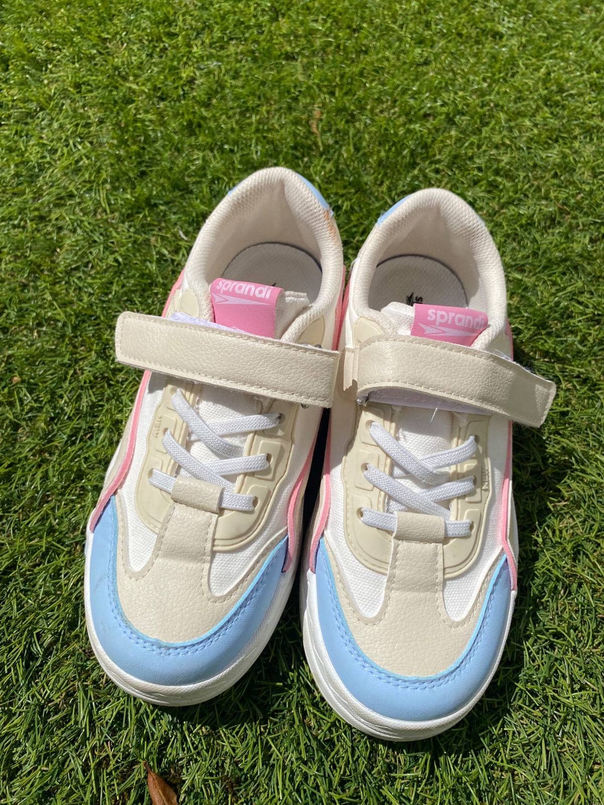 Predám tenisky značky Sprandi. Obuté raz, takže naozaj ako nové, viď foto. Biele tenisky so zaujímavým dizajnom s pastelovo modrou a ružovou farbou.