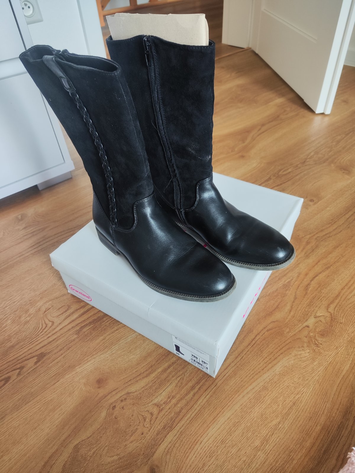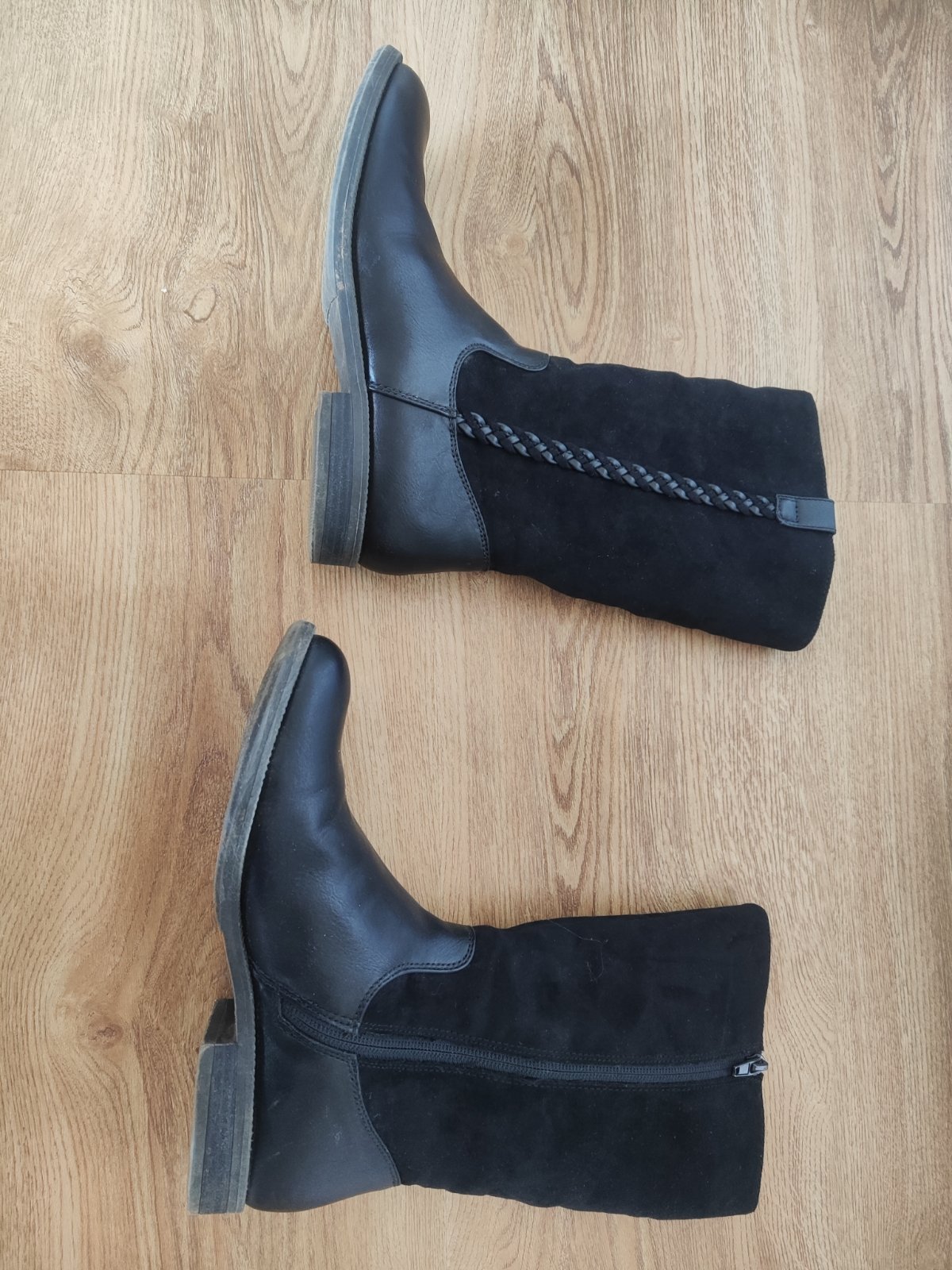 Čižmy mierne zateplené veľkosť 36 dcéra ich mala pár krát obuté. Majú maličkú chybičku viď foto pri nosení nevidno.