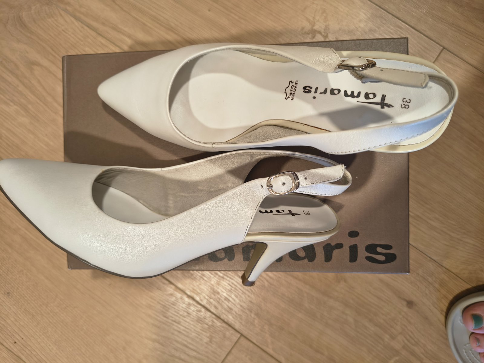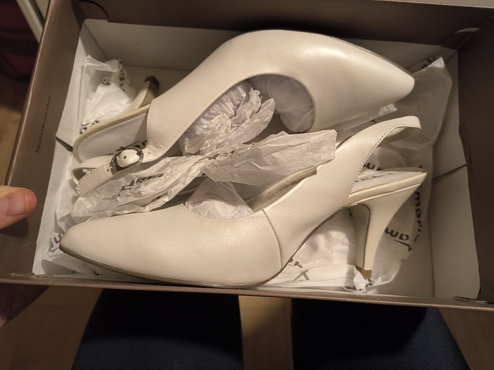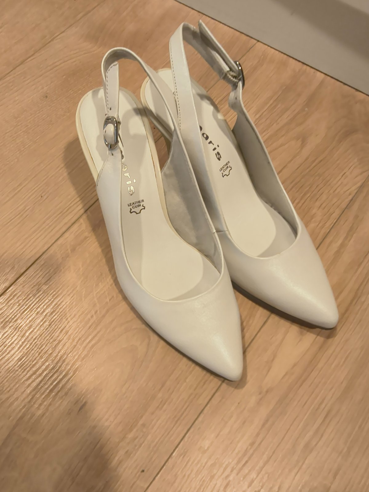 uzasne a kvalitne topanky anglickej znacky Rainbow Club, obute len na obrad a potom este chvilu a na fotenie nie su ani prilis vysoke ani prilis nizke farba nieje snehovo biela ale trosicku do krem...
