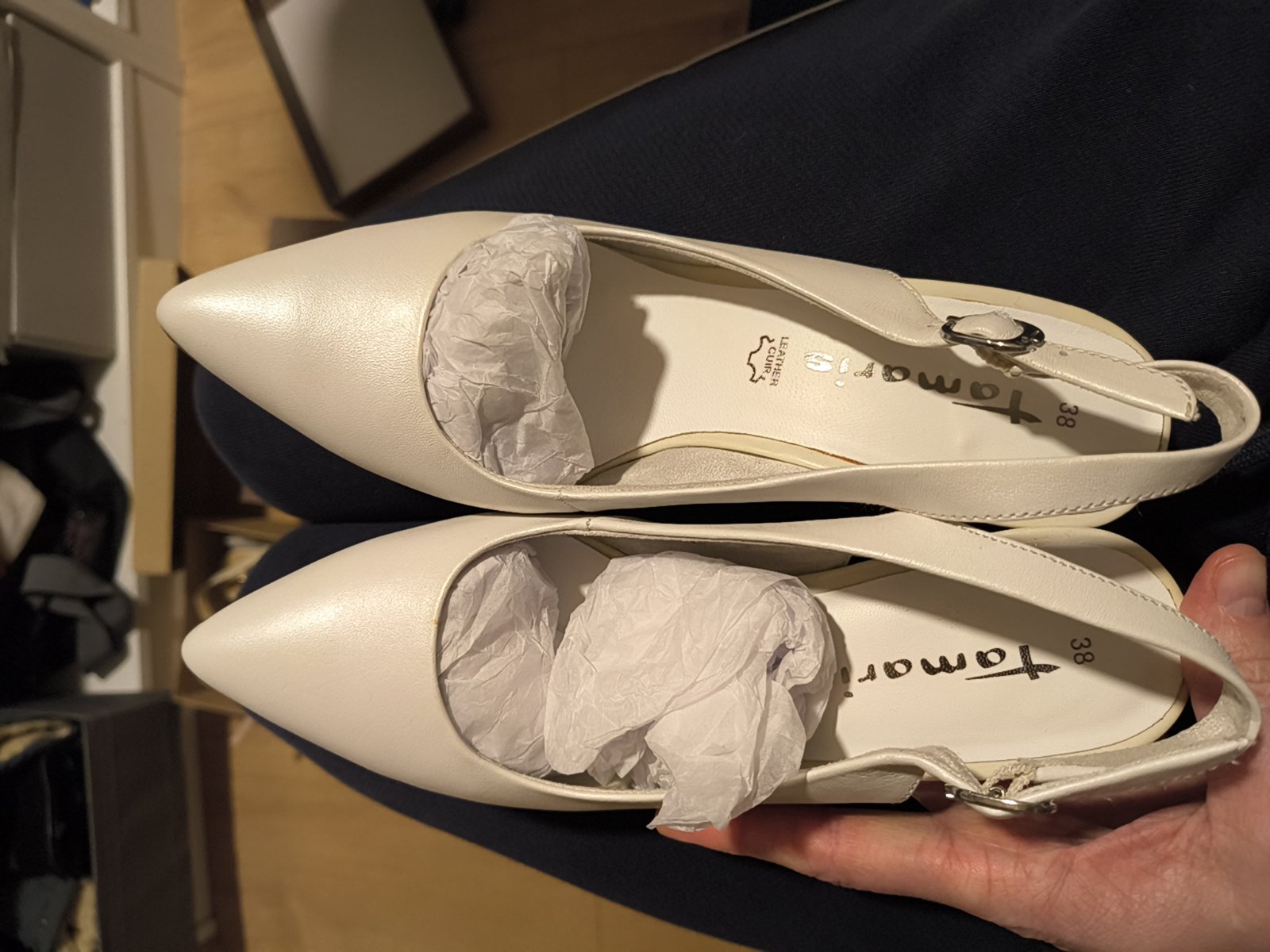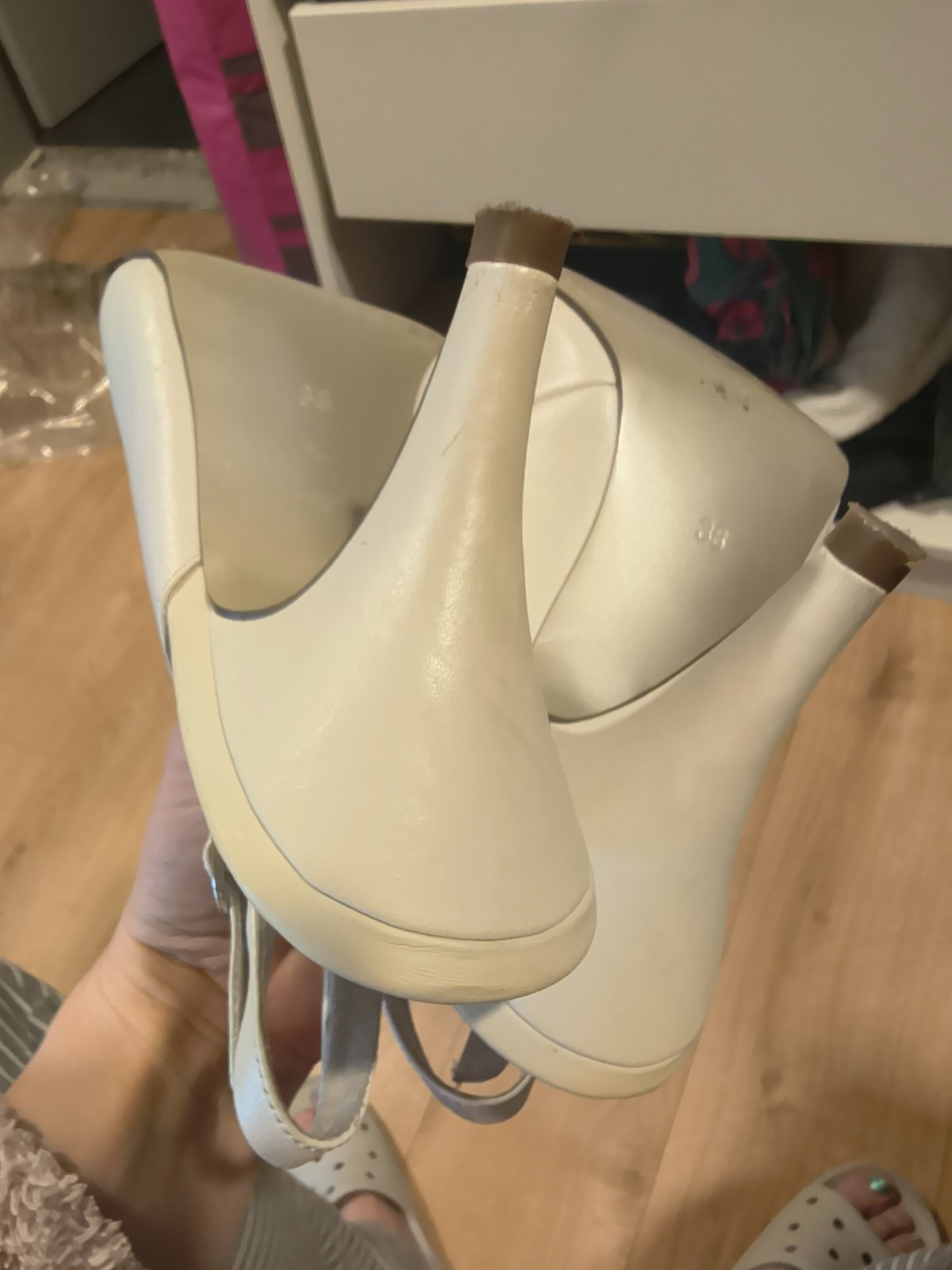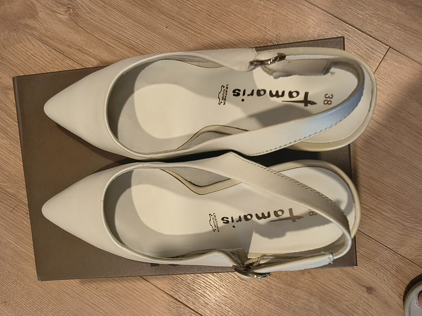 uzasne a kvalitne topanky anglickej znacky Rainbow Club, obute len na obrad a potom este chvilu a na fotenie nie su ani prilis vysoke ani prilis nizke farba nieje snehovo biela ale trosicku do krem...