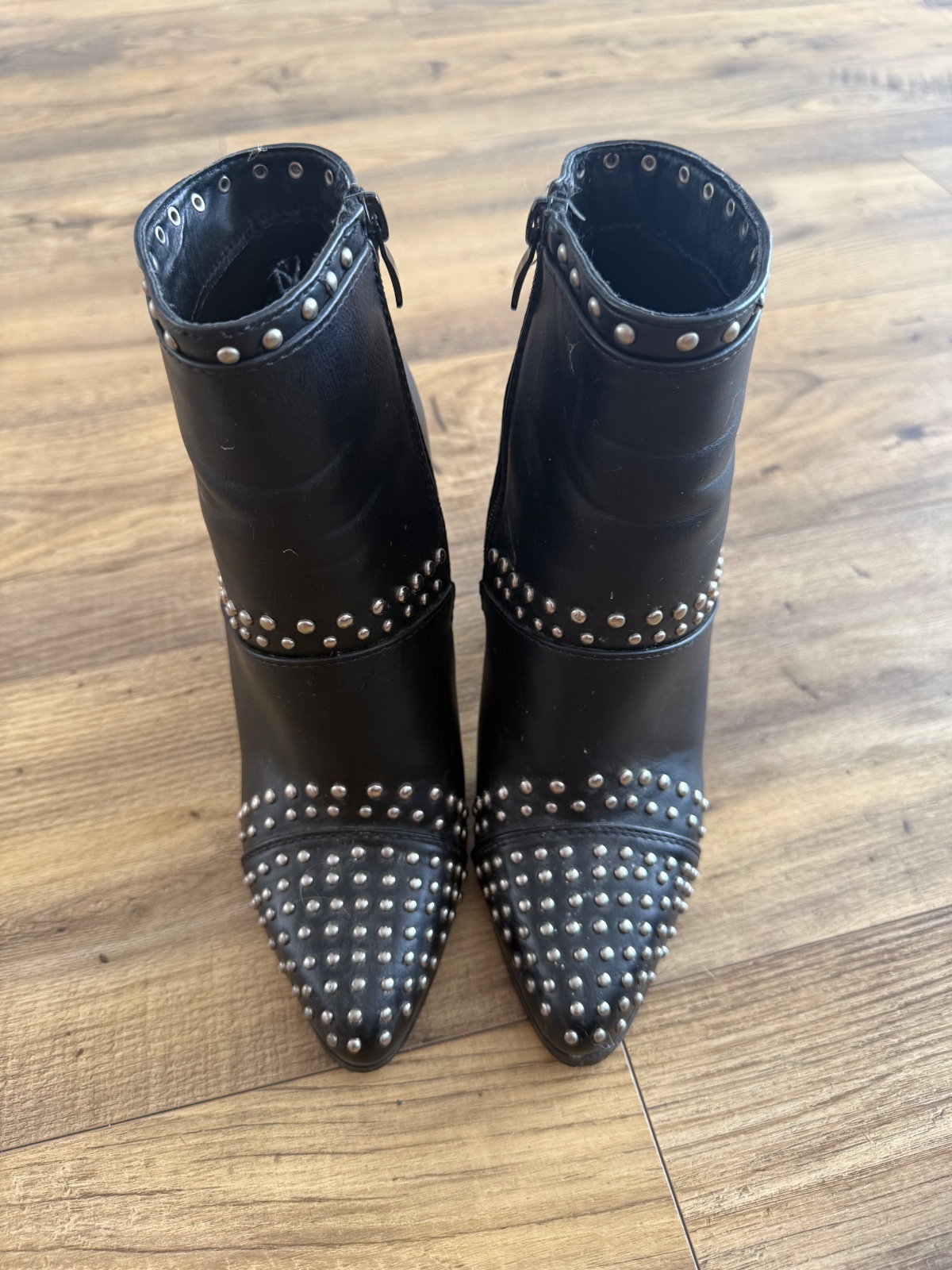 Na predaj kožené kotníky talianskej výroby, ani raz obuté, v. 37, výška kotníkov 24 cm, výška podpätku 5,5 cm, vonkajšia dĺžka23 cm, vnútorná dĺžka 23-24 cm, keďže majú špic, pozri všetky moje inze...