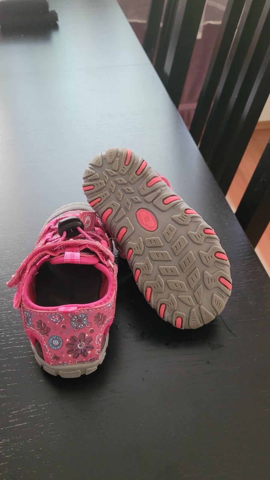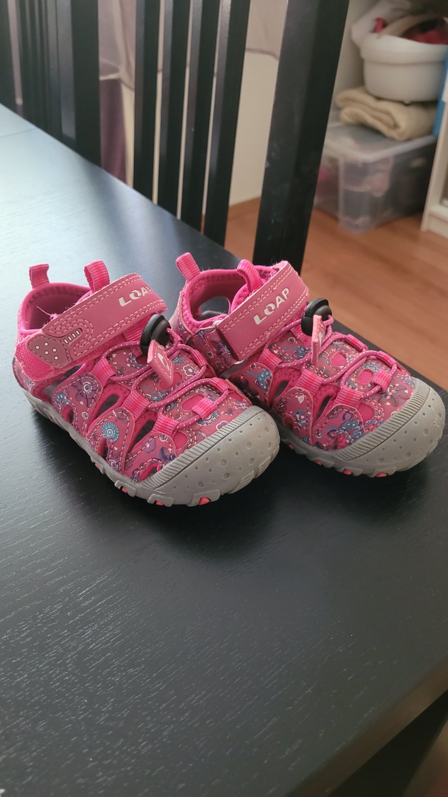 Nosené sandalky, značka loap, vnútorná dĺžka cca 15cm. Neznicene, len ich treba vyčistiť. Suchy zips drží, posuvné šnúrky funguju.