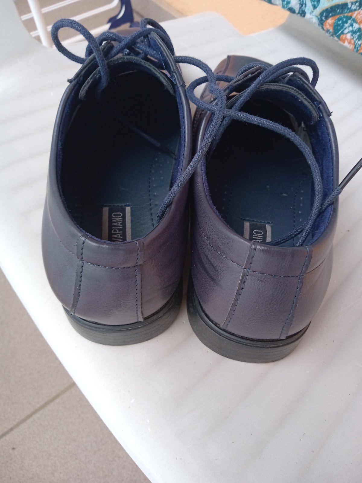 Predám 1 sezónu nosené kožené topánky kupované v ccc značka Lanetti. Nosené boli len príležitostne, aj tak sa podarilo synovi zakopnuť špičky (nafotené). Vďaka tmavomodrej farbe vôbec nevidno. Podr...
