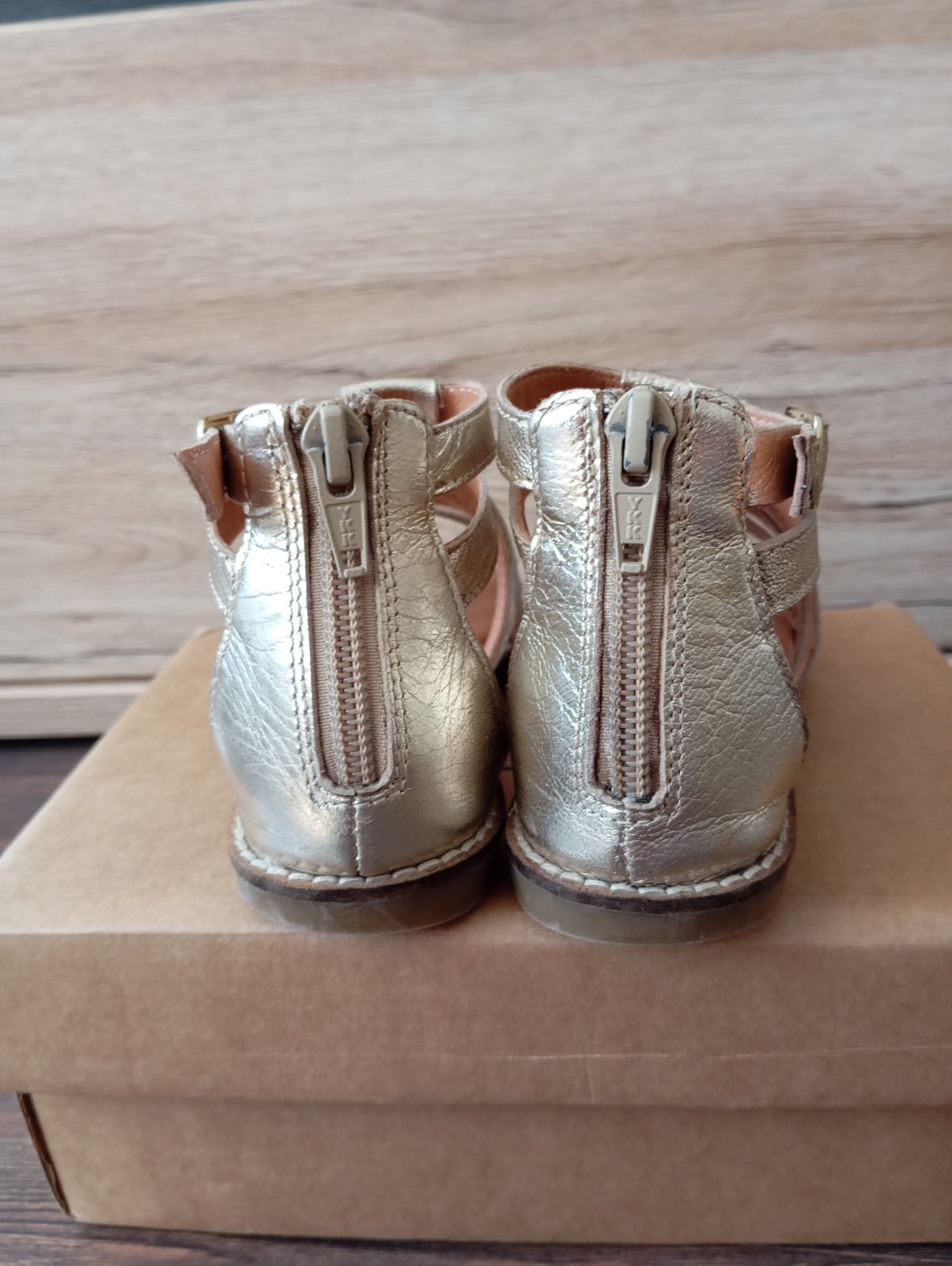 Predám detské sandálky v dobrom stave, bez akéhokoľvek poškodenia, zips je plne funkčný. Na niektorych miestach je farba ošúchaná, viď fotky. Cena je uvádzaná bez poštovného.