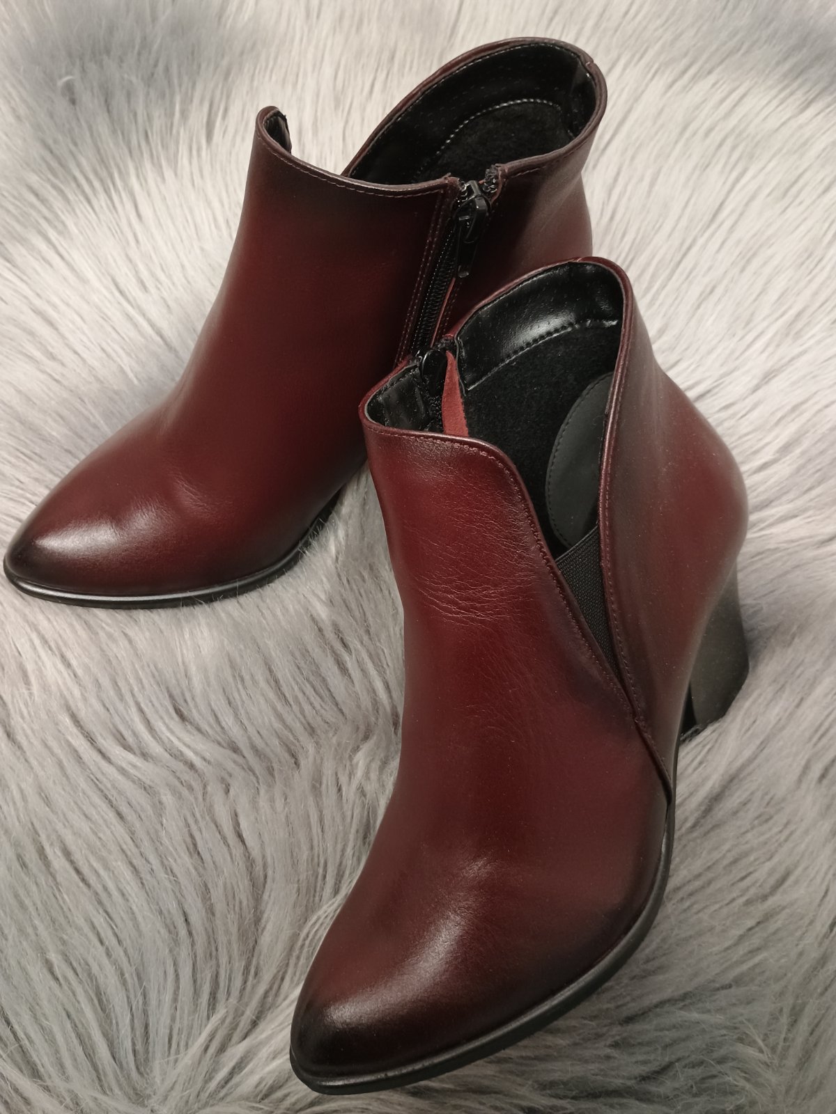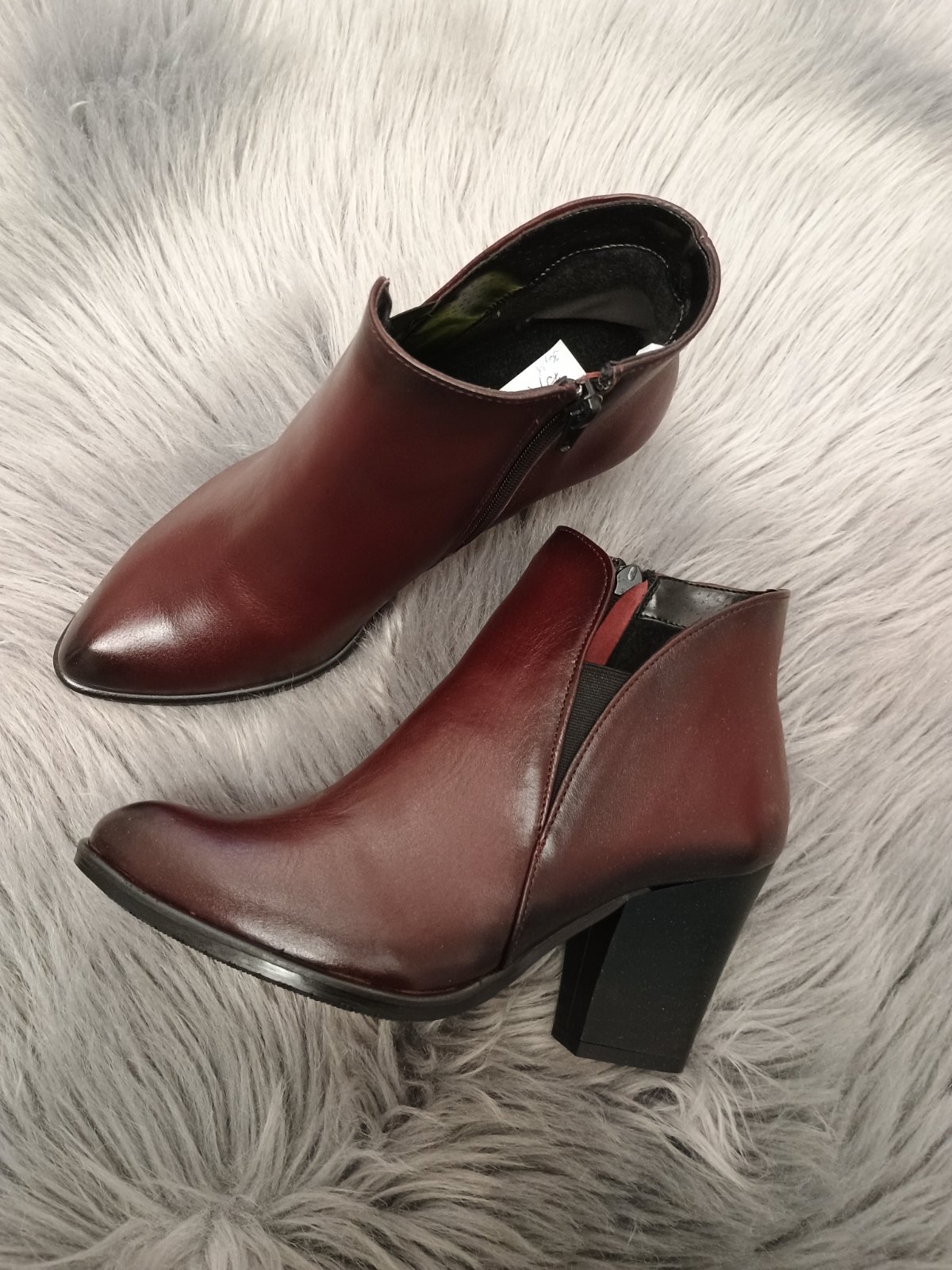 Členkové čižmy v elegantnom prevedení vhodné na každodenné nosenie. Tieto členkové topánky sú vyrobené z hladkej kože. V okolí členka sa nachádza elastická gumka, ktorá sa prispôsobí šírke chodidla. Obuv má na bočnej strane zips. K týmto topánkam si môžete vziať nohavice alebo sukňu a vyraziť do mesta. Hrubý podpätok vám zaručí pohodlie a stabilitu. Krásny jednoduchý model, ktorý dotvorí celý váš look.