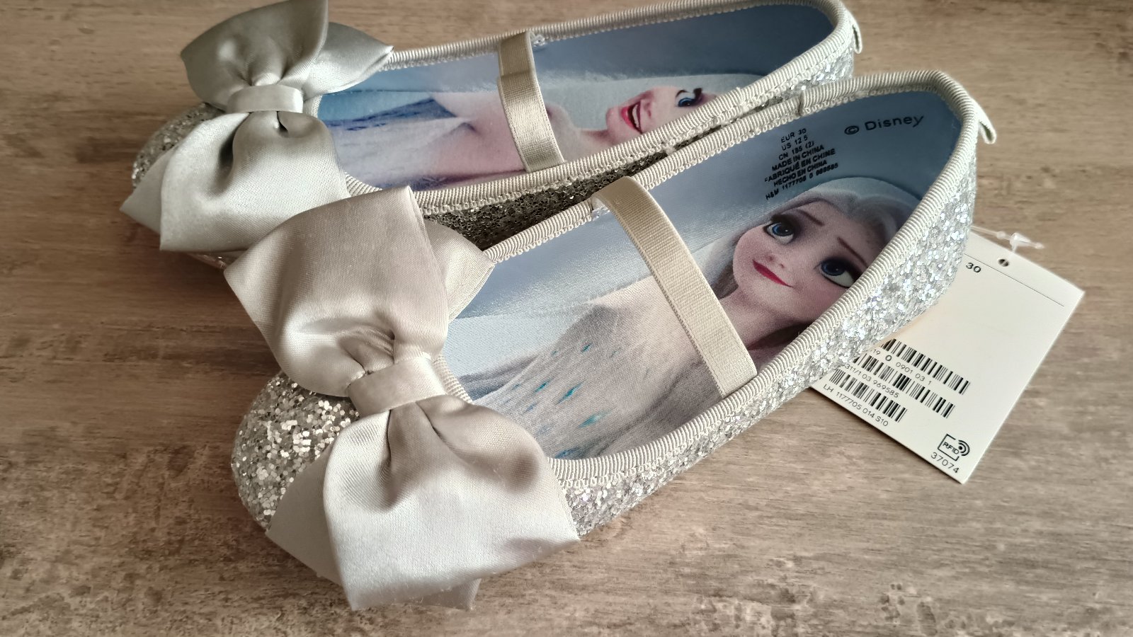 SKLADOM Strieborné baleríny Next, dovoz UK, kód 816113, Dostupné veľkosti: UK11=EU29 (vnútorná dĺžka 18 cm) UK12=EU30,5 (vnútorná dĺžka 19 cm) UK13=EU32 (vnútorná dĺžka 20 cm) Materiálové zlož...
