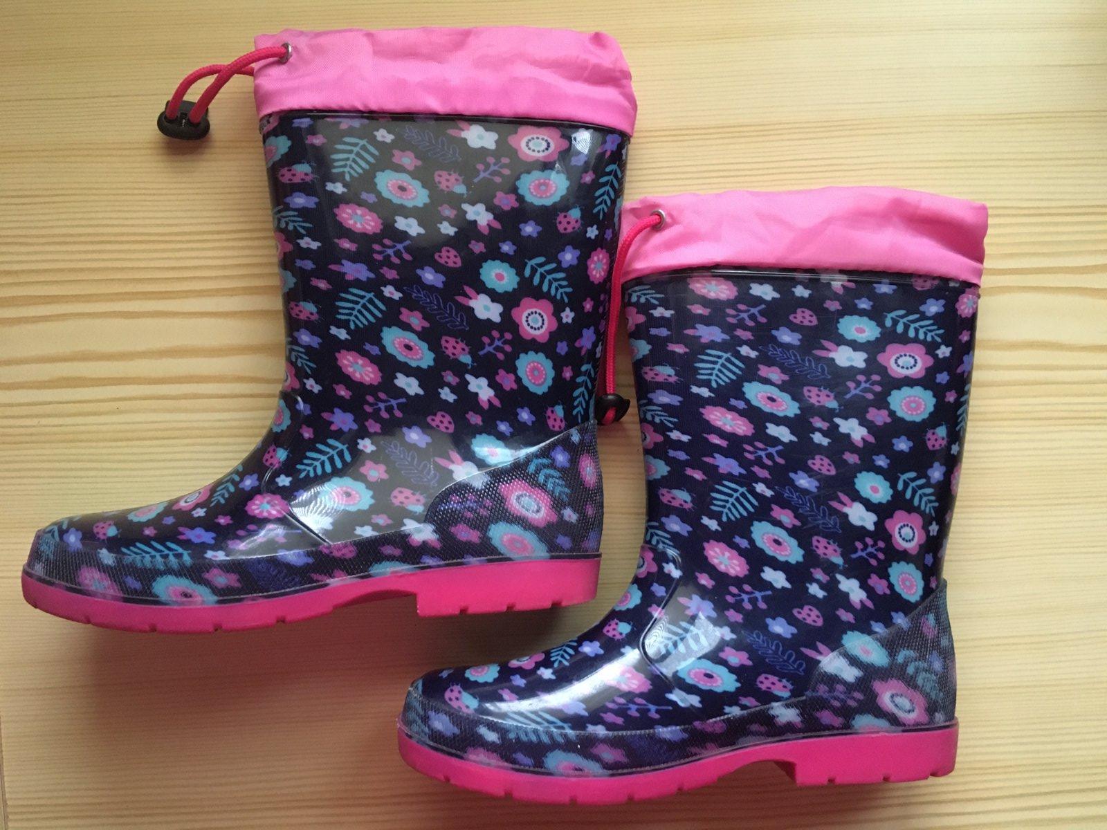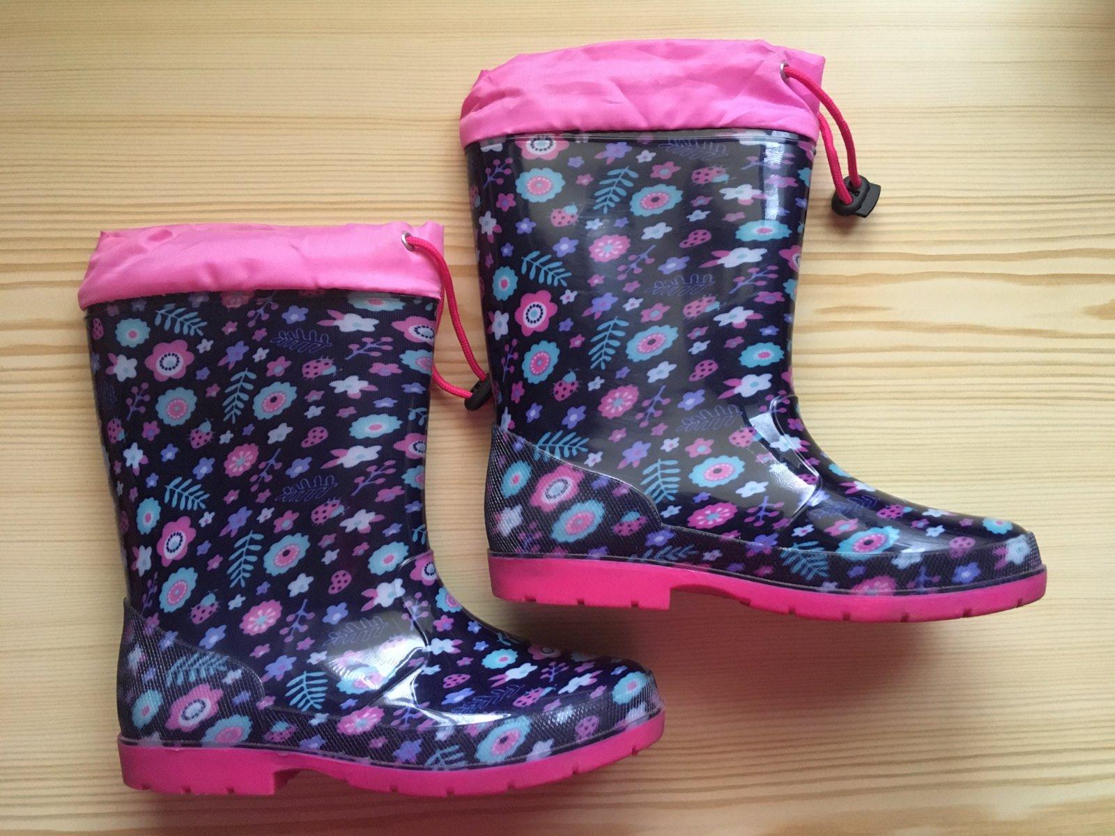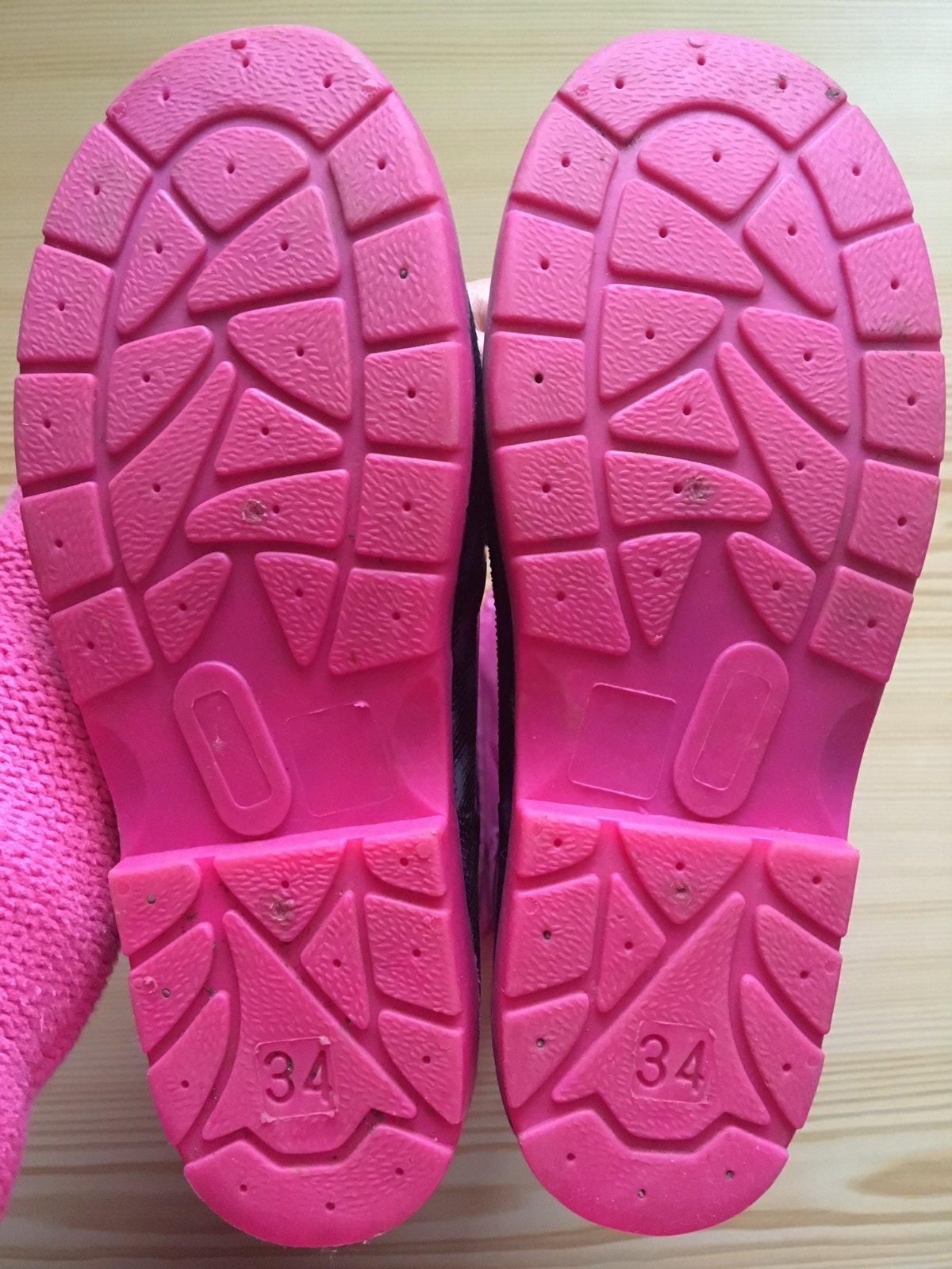 Ako nové, párkrát obuté. Zateplené gumáky s motívom kvietkov vo veľkosti 34, vnútorná dĺžka stielky 22cm. Zateplená vložka je čiastočne vyberateľná, je pripevnená hore na sáre.