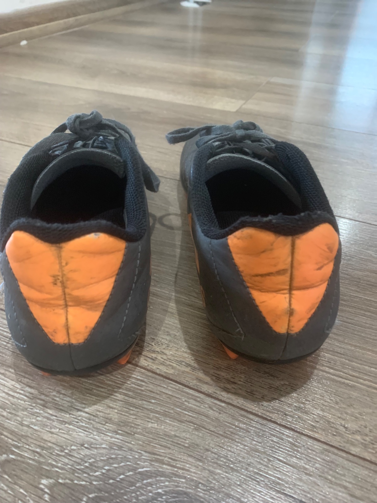Kupované nové. nosene jeden školský rok iba v telocvični. žiaľ sa synovi podarilo kúsok odrat - vid foto. ale sú plne funkčne. sem tam oškretý. nič strašne. stav zohľadnený v cene. nikde sa neodlie...