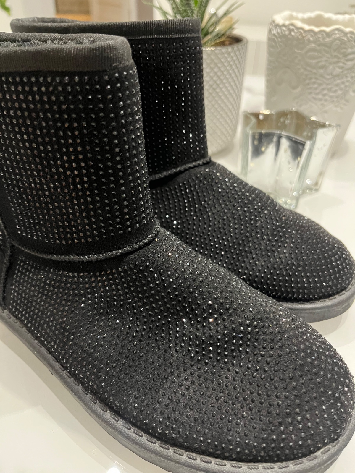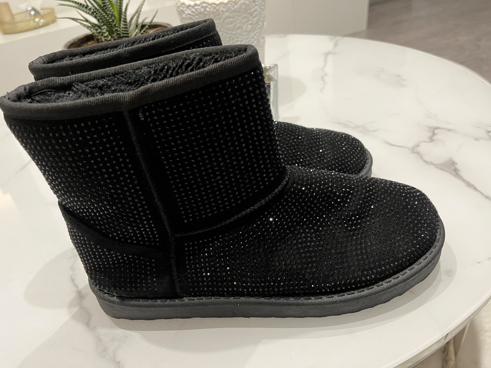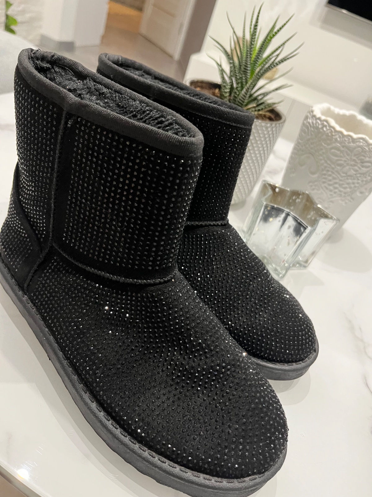 Damske snehule cierne s kamienkami tol stav obute asi 2x