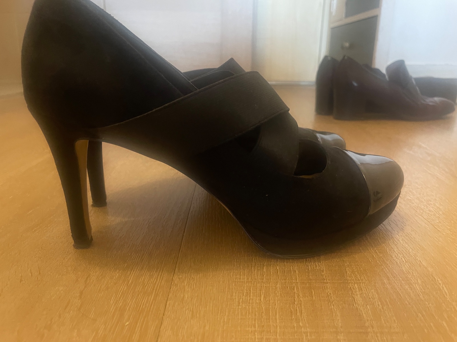 Pekne topanky na vysokom opatku vo velmi dobrom stave- kupene tu na modrom koniku ale mne su trosku velke, je to taka vacsia 41tka Rozmery: vnutorna dlzka: 28,5cm