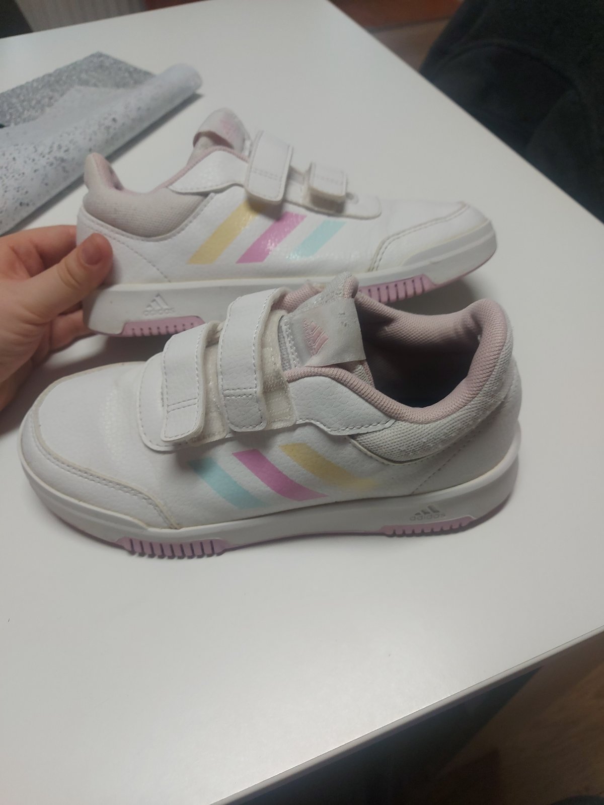 Kvalitné pevné a zároveň priedušné tenisky Adidas. Už sú nosené a stav je pofotený,preto nízka cena. Ešte sa v nich dajú nabehať kilometre, nakoľko sa nikde nerozliepaju, švy pevne držia.