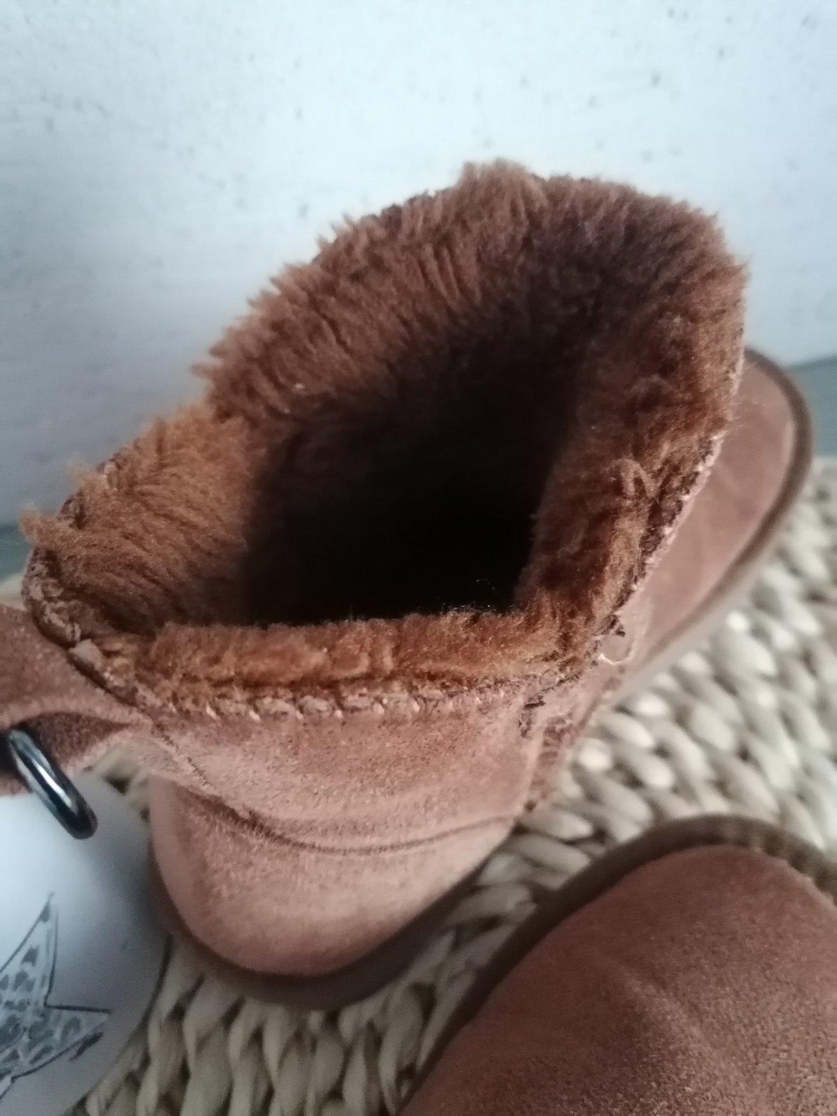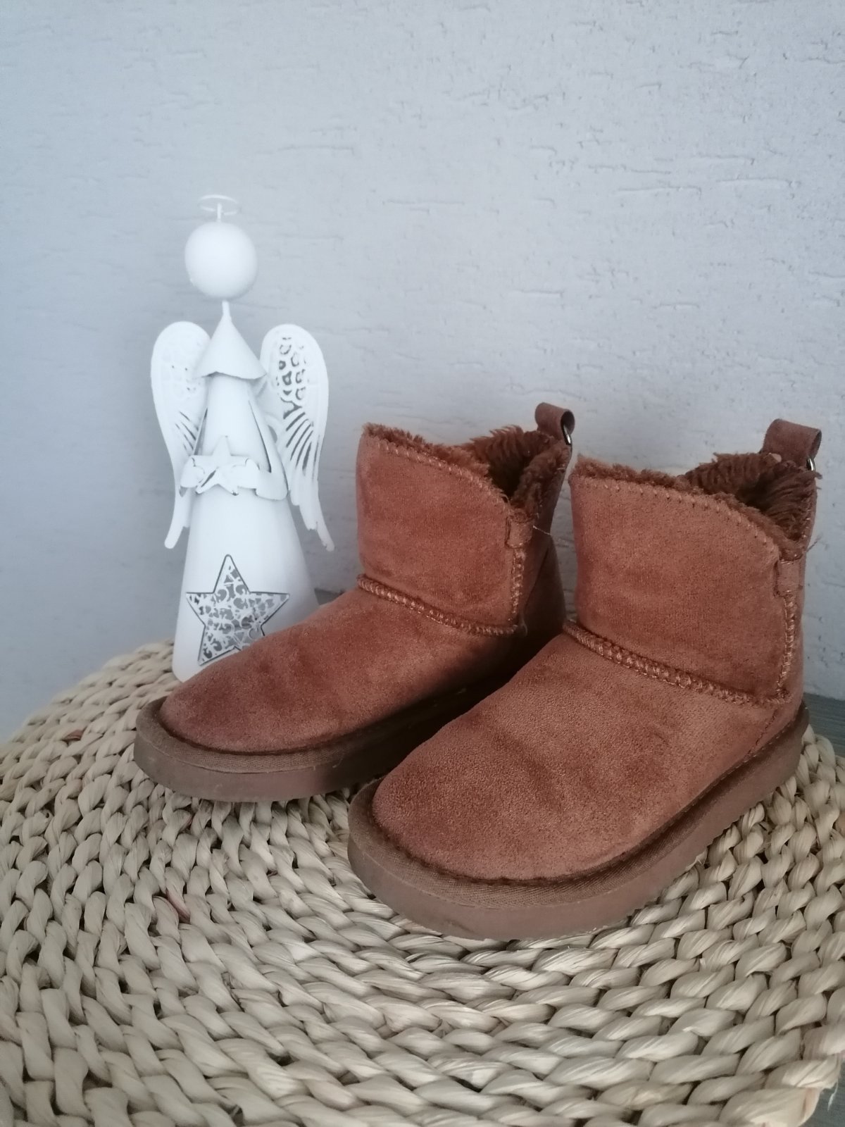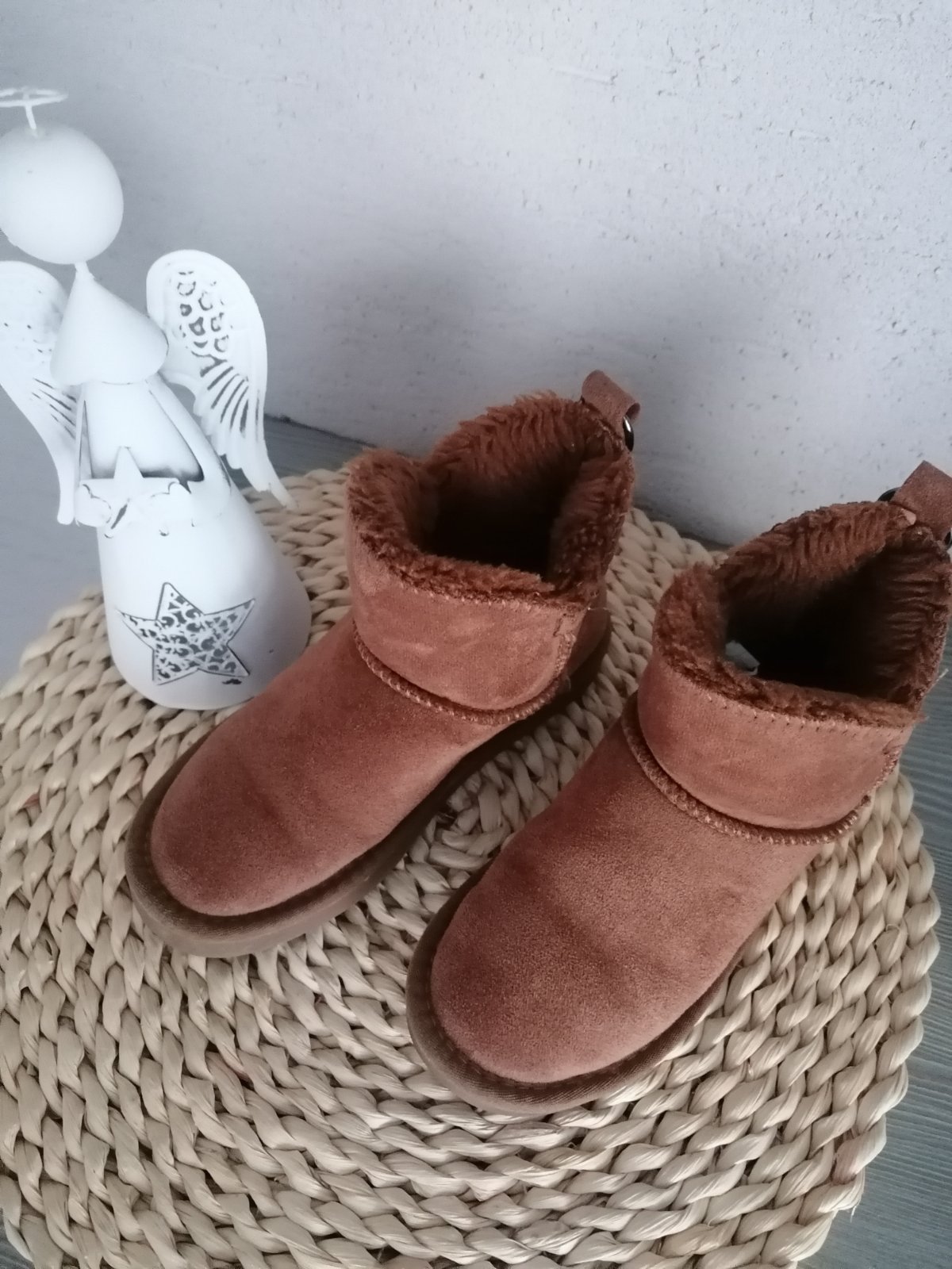 Pekné, horčicovo-hnede čizmy pre dievčatko. Spodna časť je z brúsenej kože, vrch od členku vyššie je textilna imitácia. Zvnútra sú zateplené umelou kožušinkou. V predu na spodu vidno fliačky, ktoré...