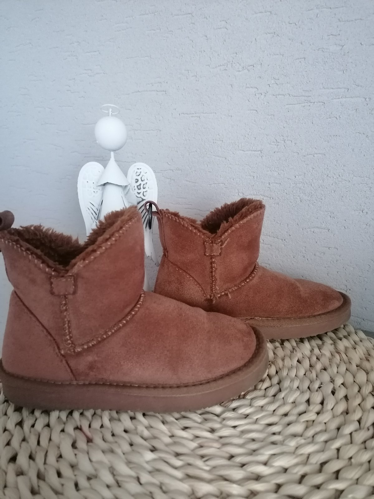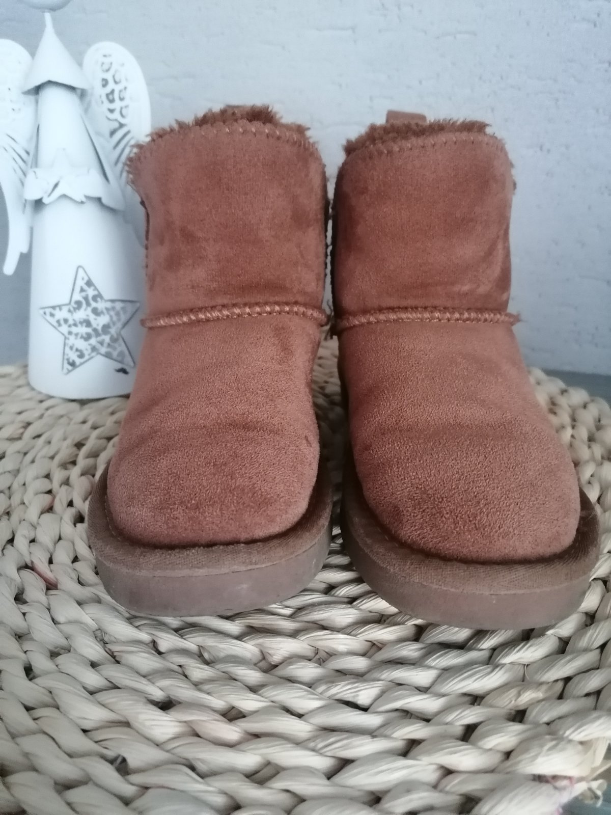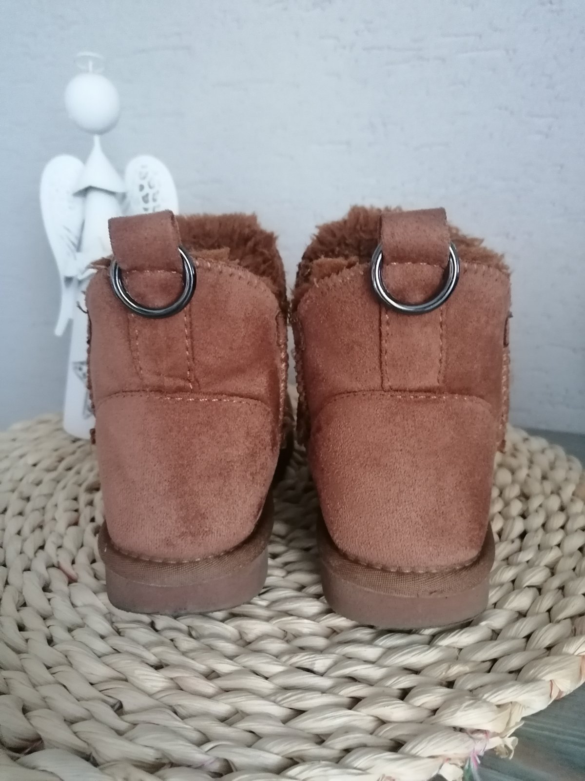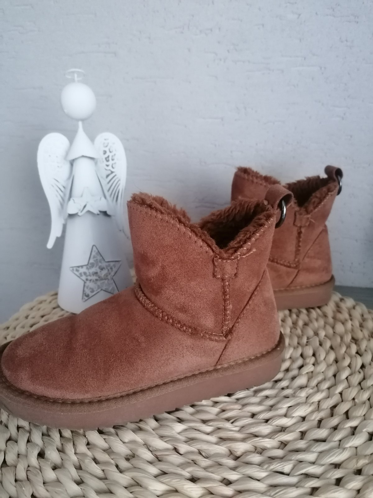 Pekné, horčicovo-hnede čizmy pre dievčatko. Spodna časť je z brúsenej kože, vrch od členku vyššie je textilna imitácia. Zvnútra sú zateplené umelou kožušinkou. V predu na spodu vidno fliačky, ktoré...