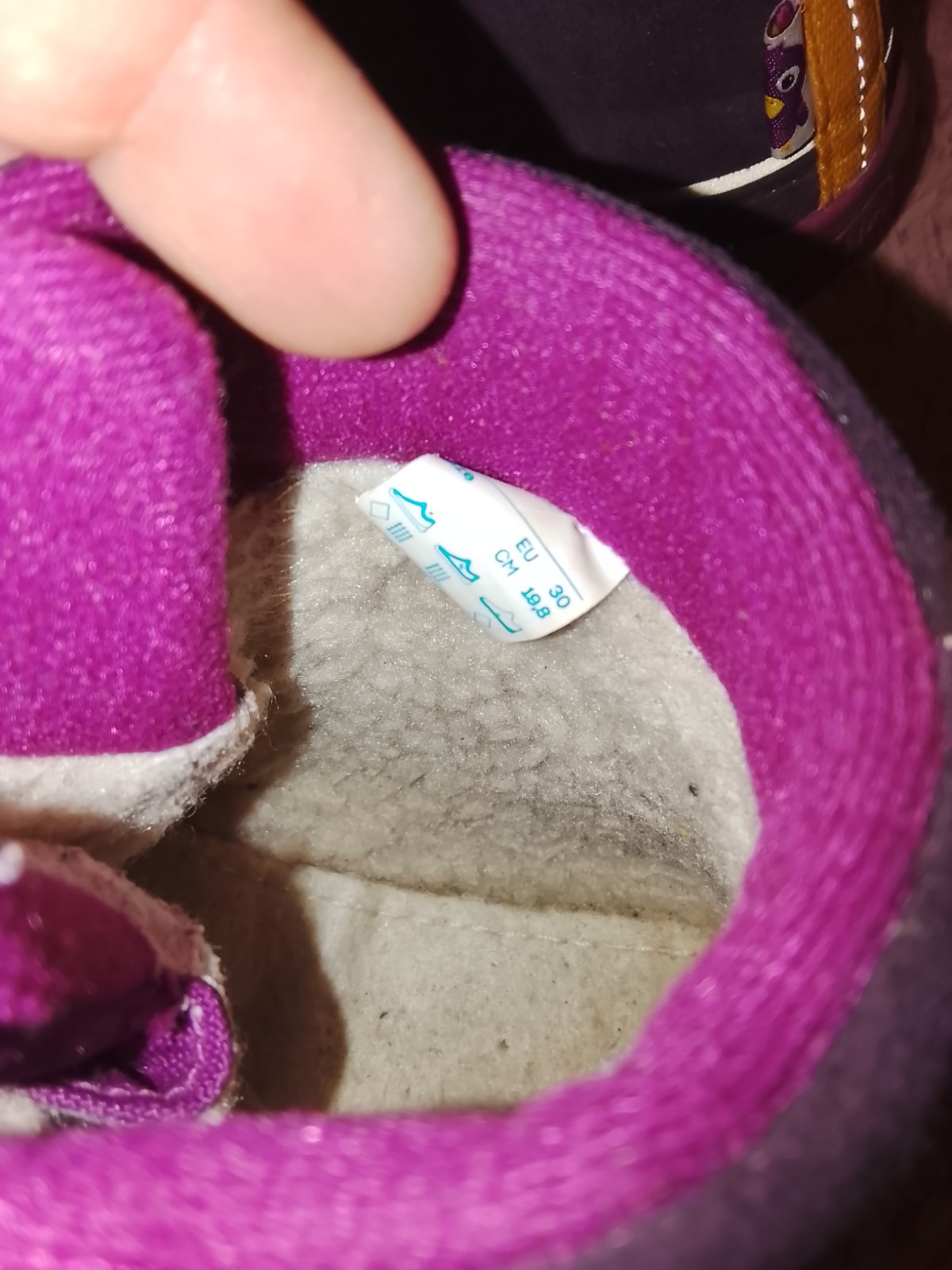 Sú zateplené, nepremokavé.Veľkosť 30, vnútri písaná dĺžka 19,8cm.