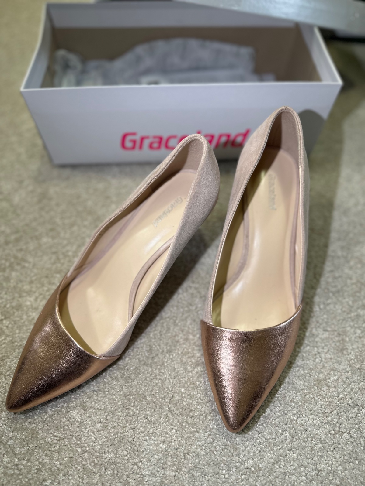 Predám nádherne raz použité lodičky, Krasna jemná farba, semis, bez poskodení, použité raz Dôvod predaj nevyužívam Opätok 10 cm Vnútorná dĺžka 25cm