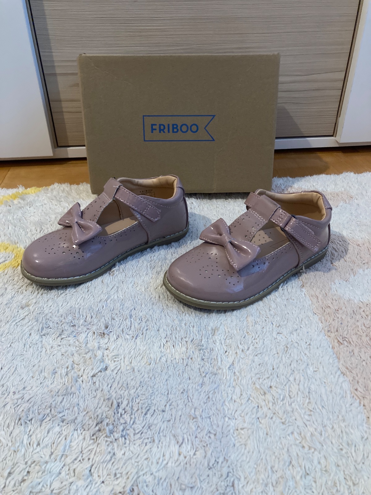 Ponukam na predaj balerinky Friboo. Majú pudrovo ružovú farbu, vpredu ozdobná maslicka. Velkost 28, VD na foto. Sedia na túto velkost. Dcérka ich mala obuté pár krat. Na vnútorných stranách sú bledé škvrny, pravdepodobne suchla nozicku o nozicku. Sú viditeľne iba keď sa človek veľmi sústredí. Kupovane nove, PC 36e. Nosene príležitostne 1 dieťaťom. K dispozícii aj originál krabica.