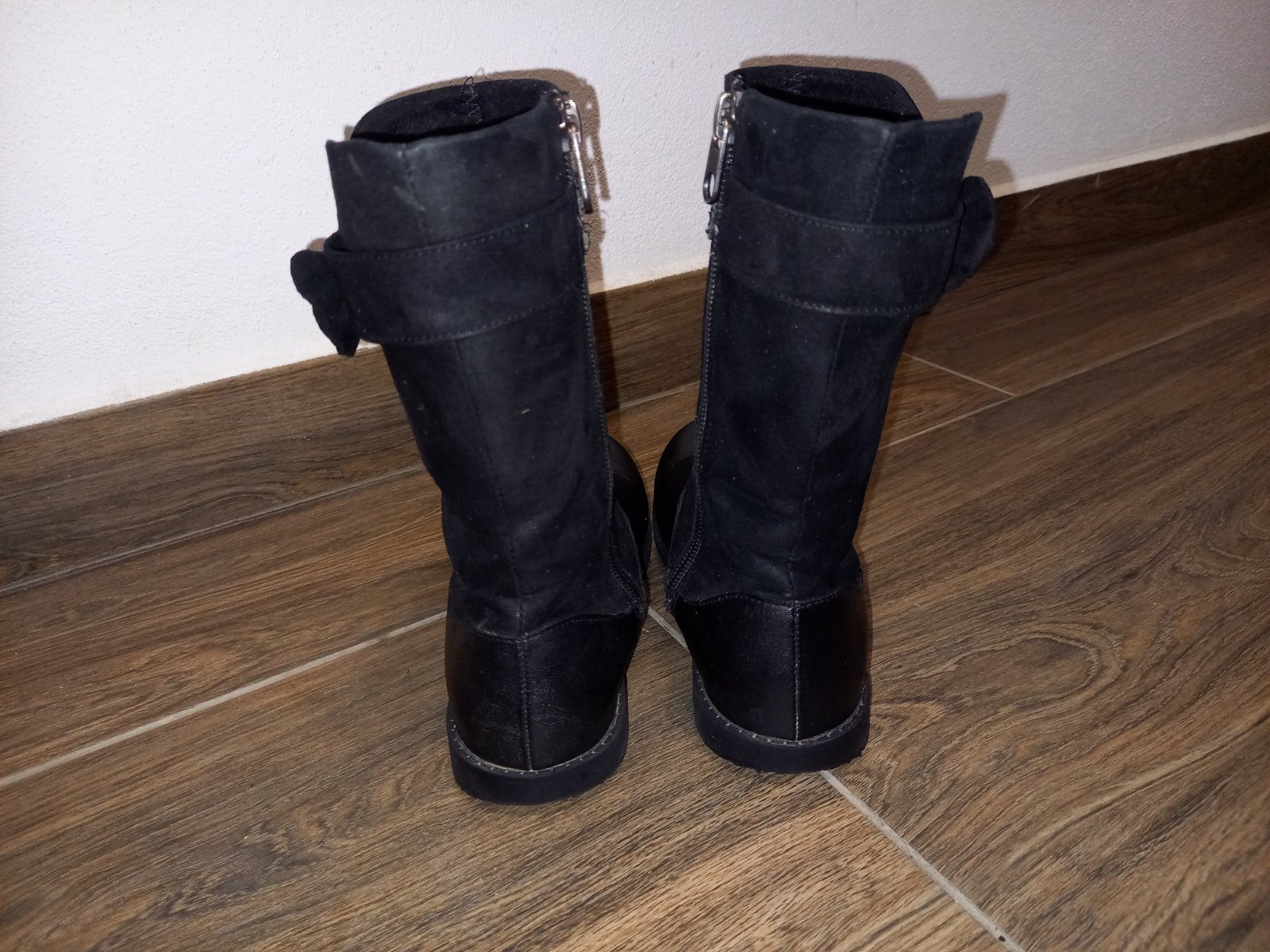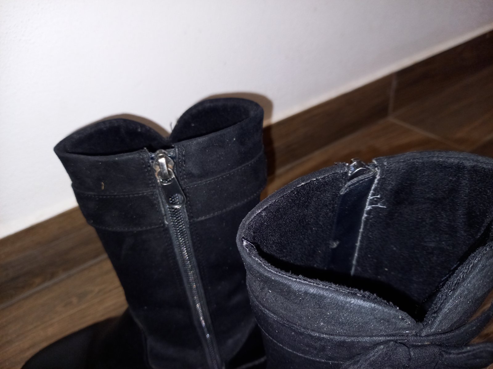 Teplo podsite cizmicky v top stave z imitacie koze,bez poskodeni. Na boku je zips pre lahsie obuvanie. Vnutri je tepla podsivka, vhodne na zimu. Cena je s obyc.postovnym.