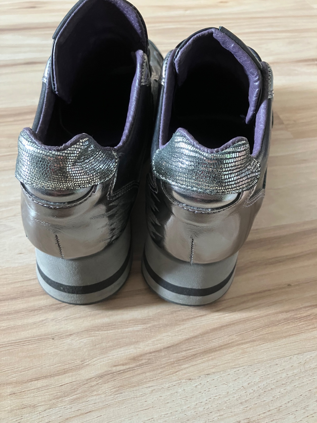 Málo Nosené, no majú malé nedostatky. Na vnútornej striebornej časti sú suchnute- nie je to veľmi viditeľne a vpredu špička mierne odlupená vid. foto. Napriek tomu stále naďalej nositelne. Kvalitné, kožené