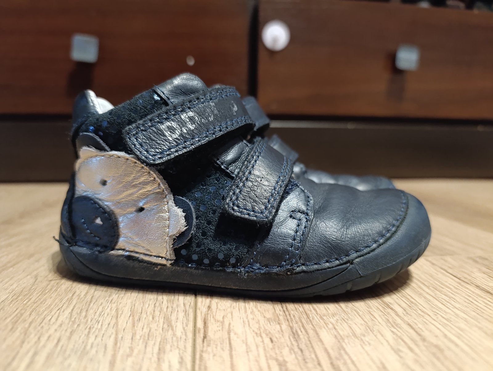 Predávam obľúbené topánky, kupované v marci, lenže už nám stihla vyrásť noha.... Na pohľad vidno, že sú nosené, na funkčnosti však nič neubudlo. Vpredu guma proti prešúchaniu, ináč koža. Na suchý ...