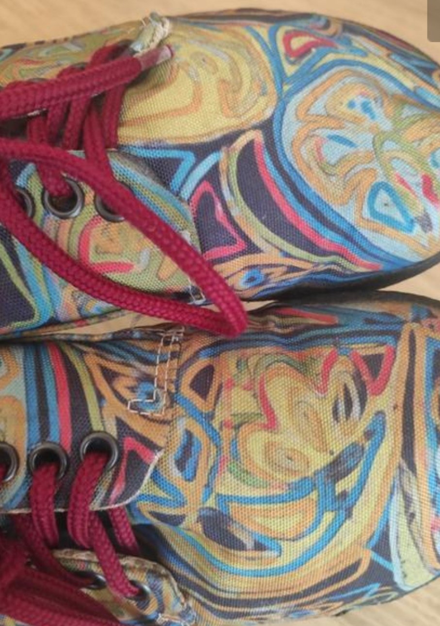 Predám 100% barefoot priedušné, ľahučké, odolné tenisky. Materiál odolný Sunbrella - od značky Ahinsa, odolný voči vode, podšívka sieťovina, podrážka pryzova (kaučuk), 23,1x9,1 rozmery tenisky, naživo sú veľmi veselé a krásne.