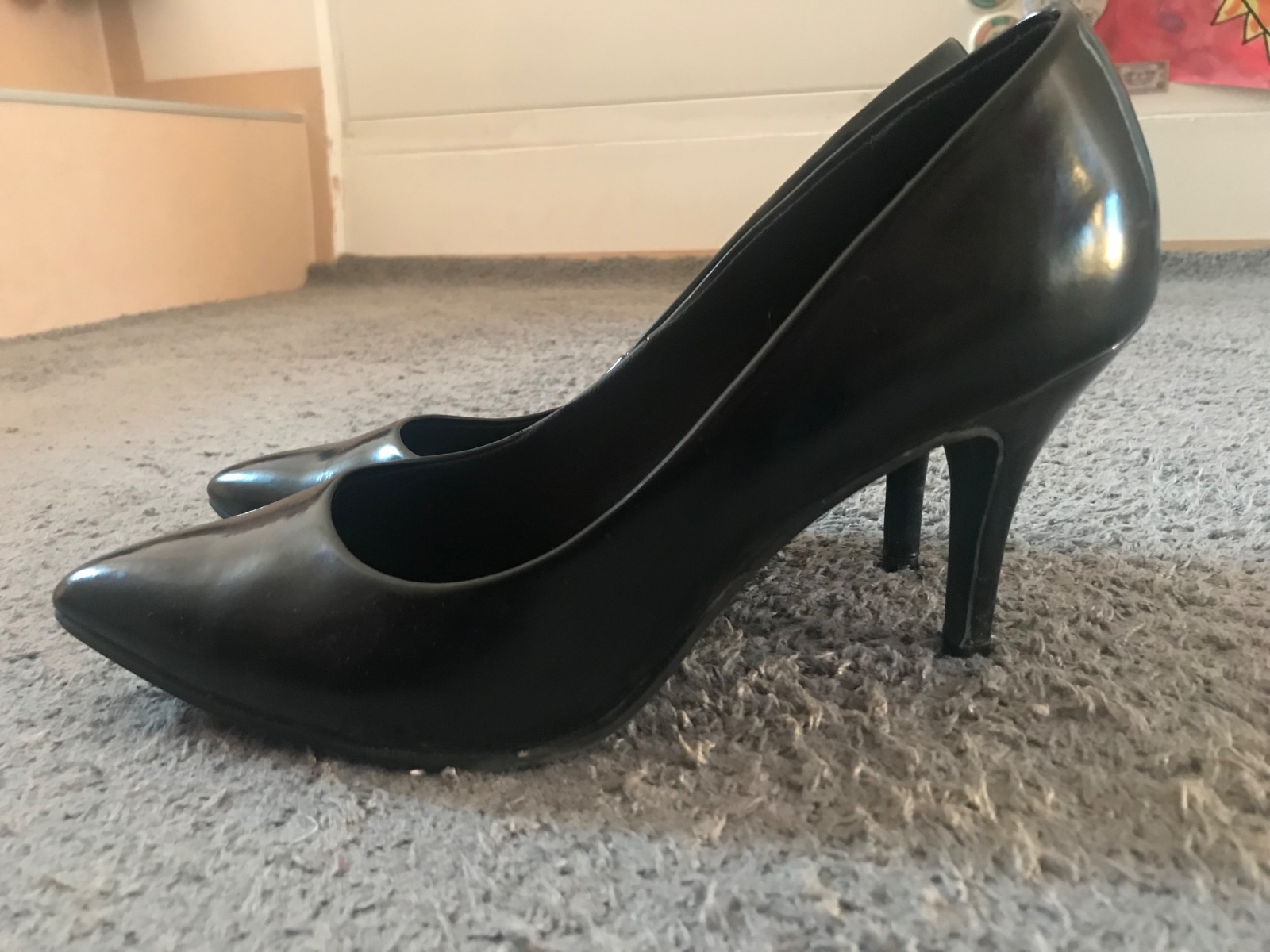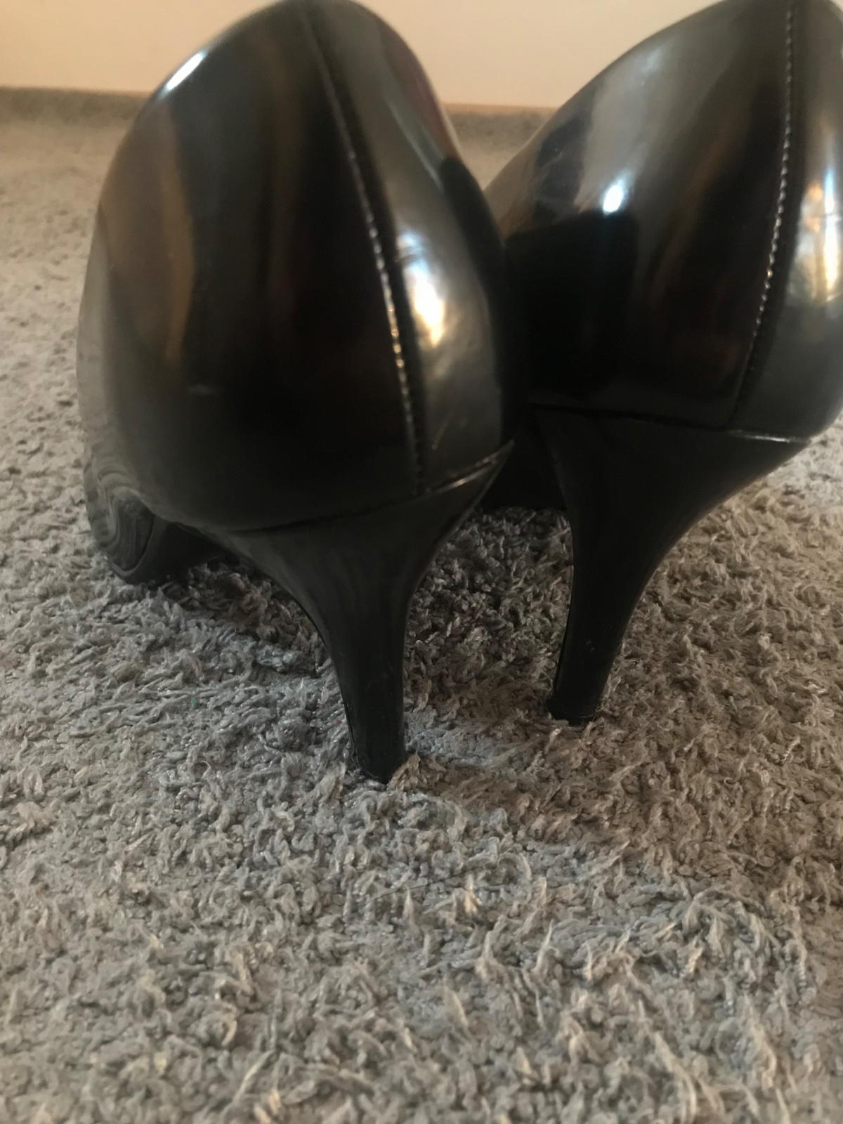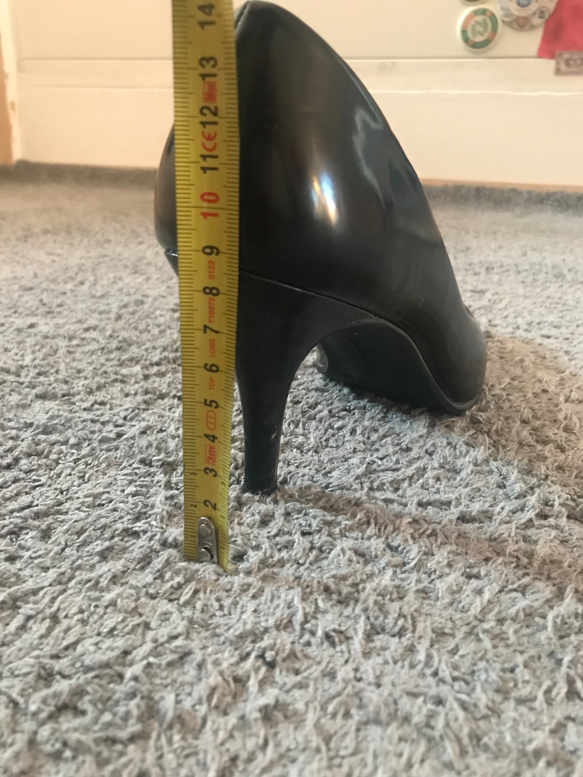 krasne cierne lodicky, raz obute na oslave. Velkost je 38, vnutornu dlzku som namerala 24 cm a vyska opatku je 8,5 cm.