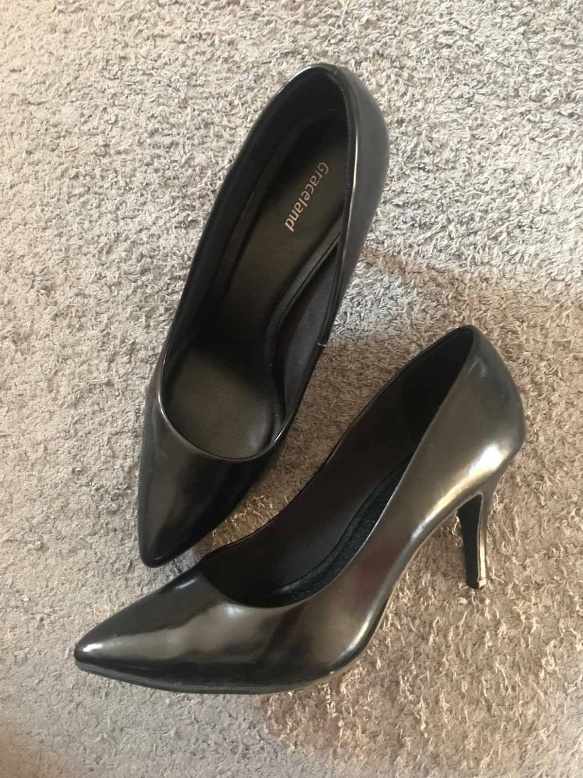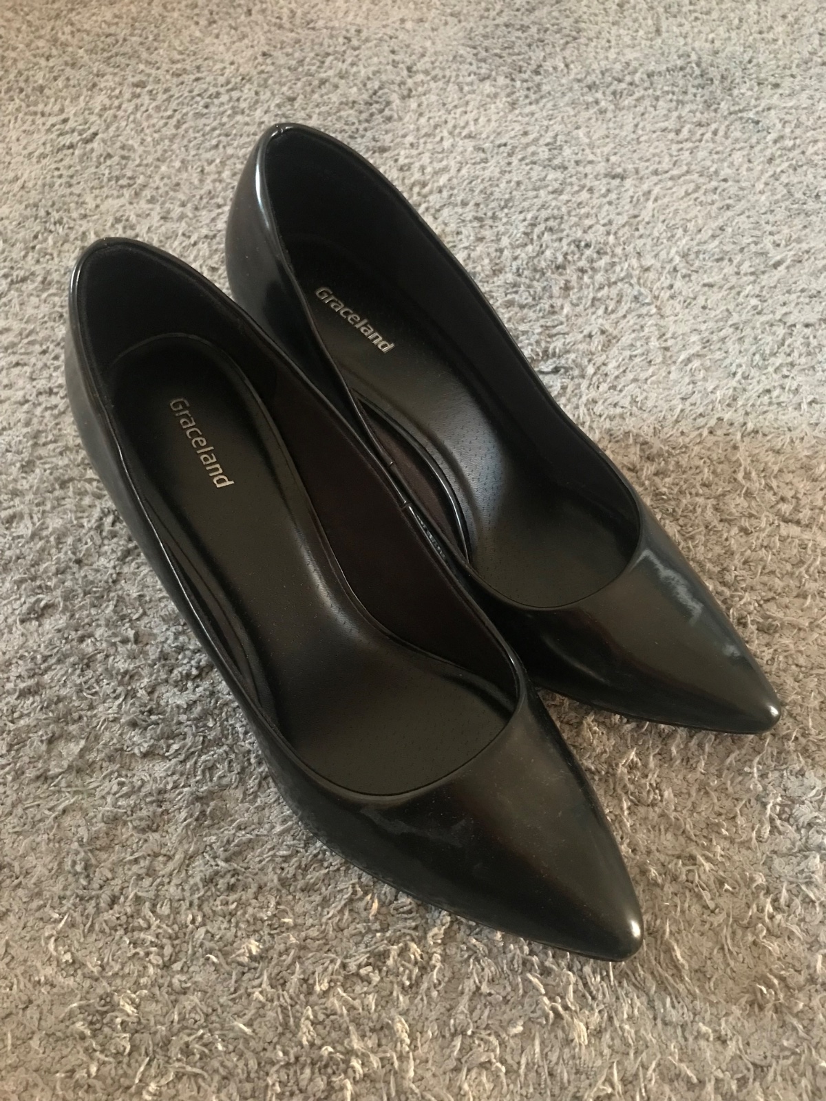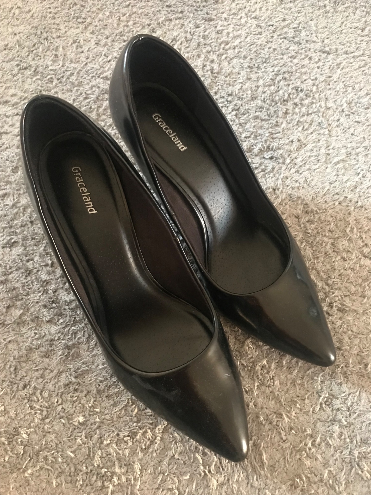 krasne cierne lodicky, raz obute na oslave. Velkost je 38, vnutornu dlzku som namerala 24 cm a vyska opatku je 8,5 cm.