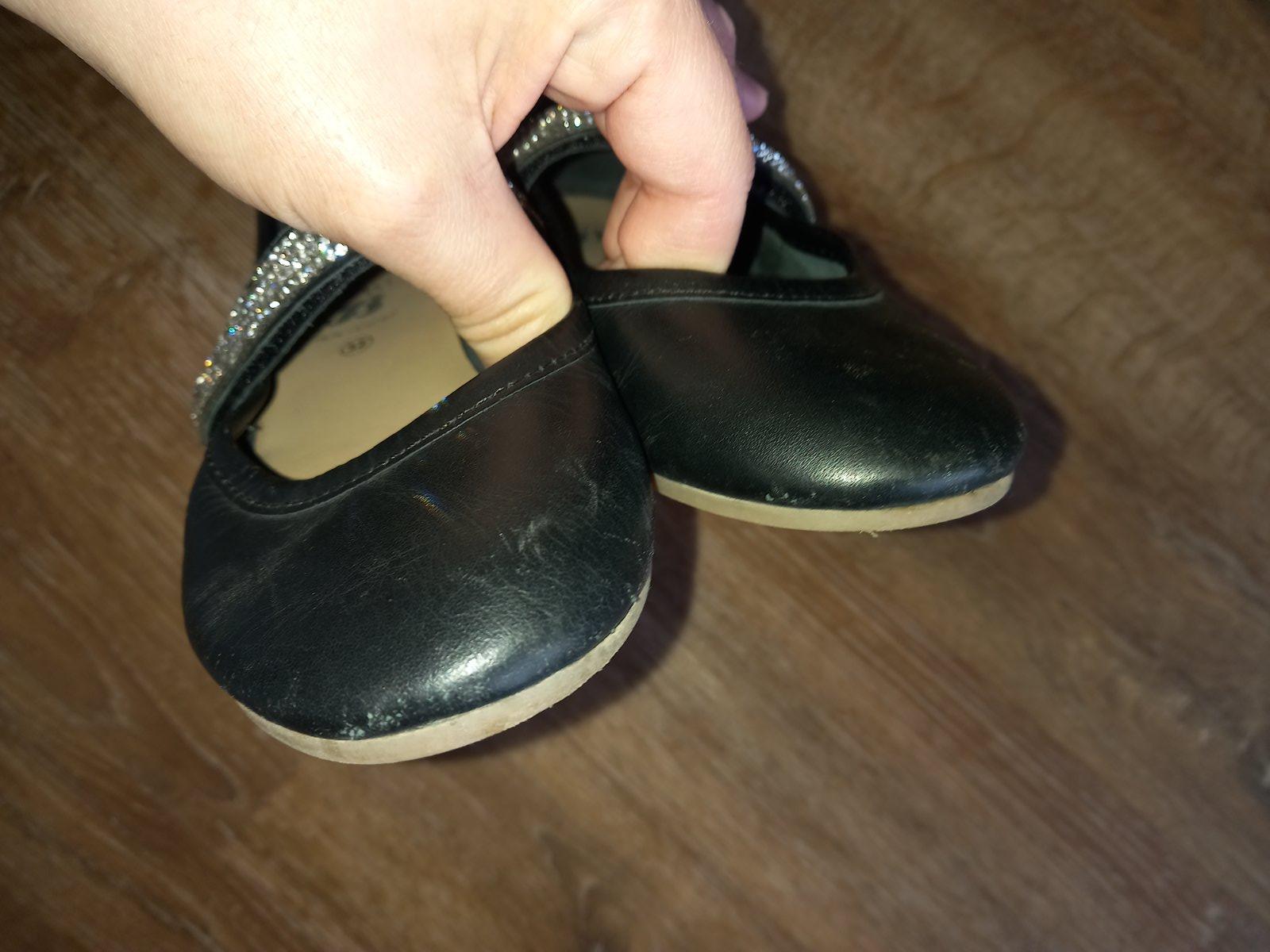 Ako nové, obuté len v interiéri na fotenie. Kožené balerínky s trblietavými kamienkami značky Baťa. Vnútorná dĺžka stielky 20,6cm. Vrátane originálnej krabice. Uvedená veľkosť 33, ale zodpovedajú s...