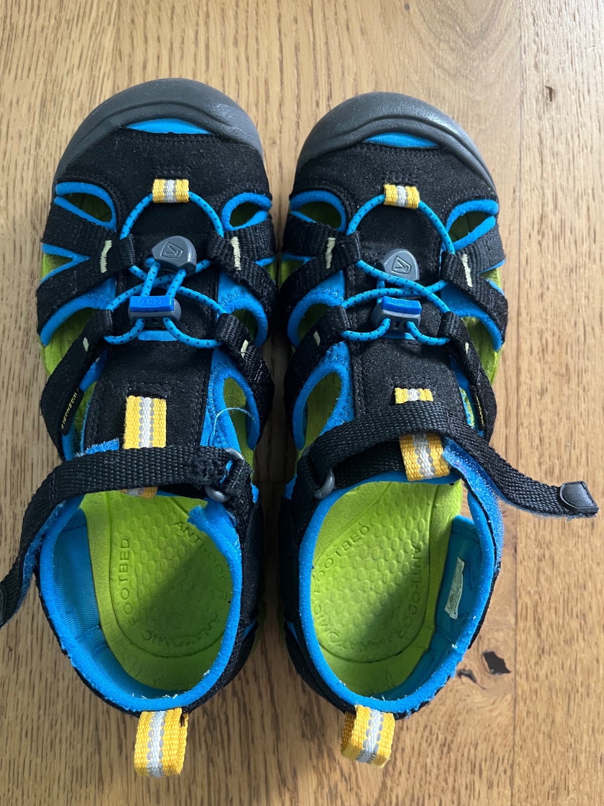 Predám sandále Keen Seacamp cnx veľkosť 36 nosené synom jedno leto na striedačku s inými topánkami. Veľmi dobrý stav, jediná chybička je natrhnutý lem, ktorý je možné zašiť (nechávam už na nových majiteľov), ale drží všetko aj tak ako to je. Inak sú sandále plne funkčné, opraté v eko prášku, suché zipsy držia.
