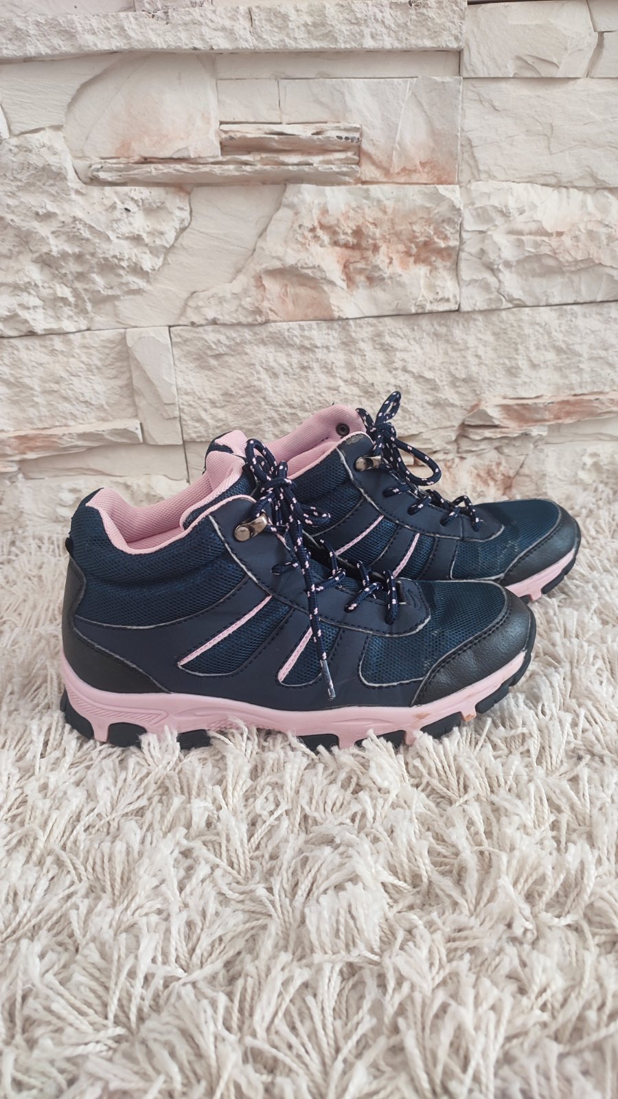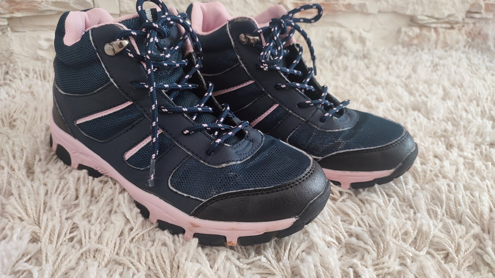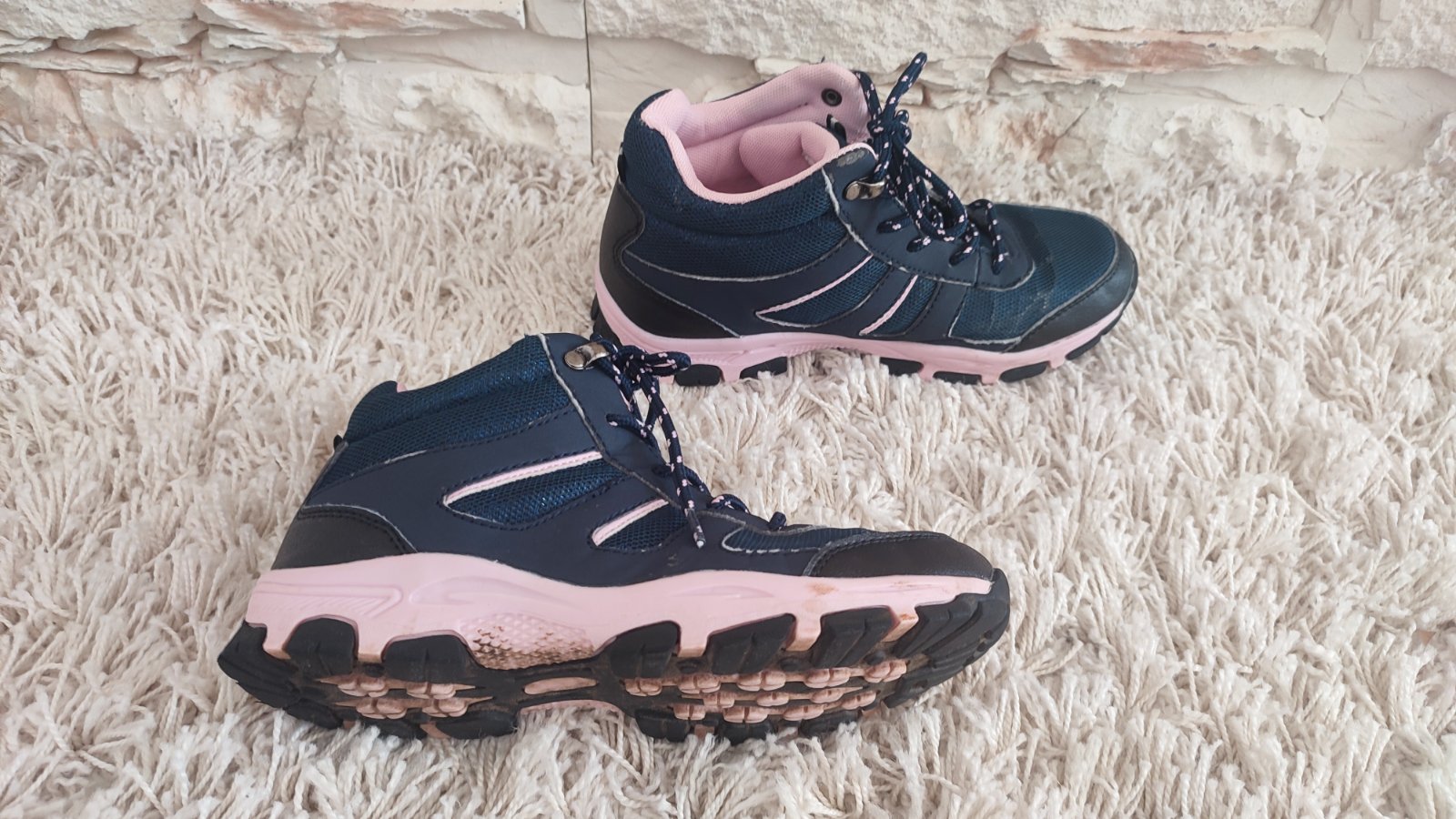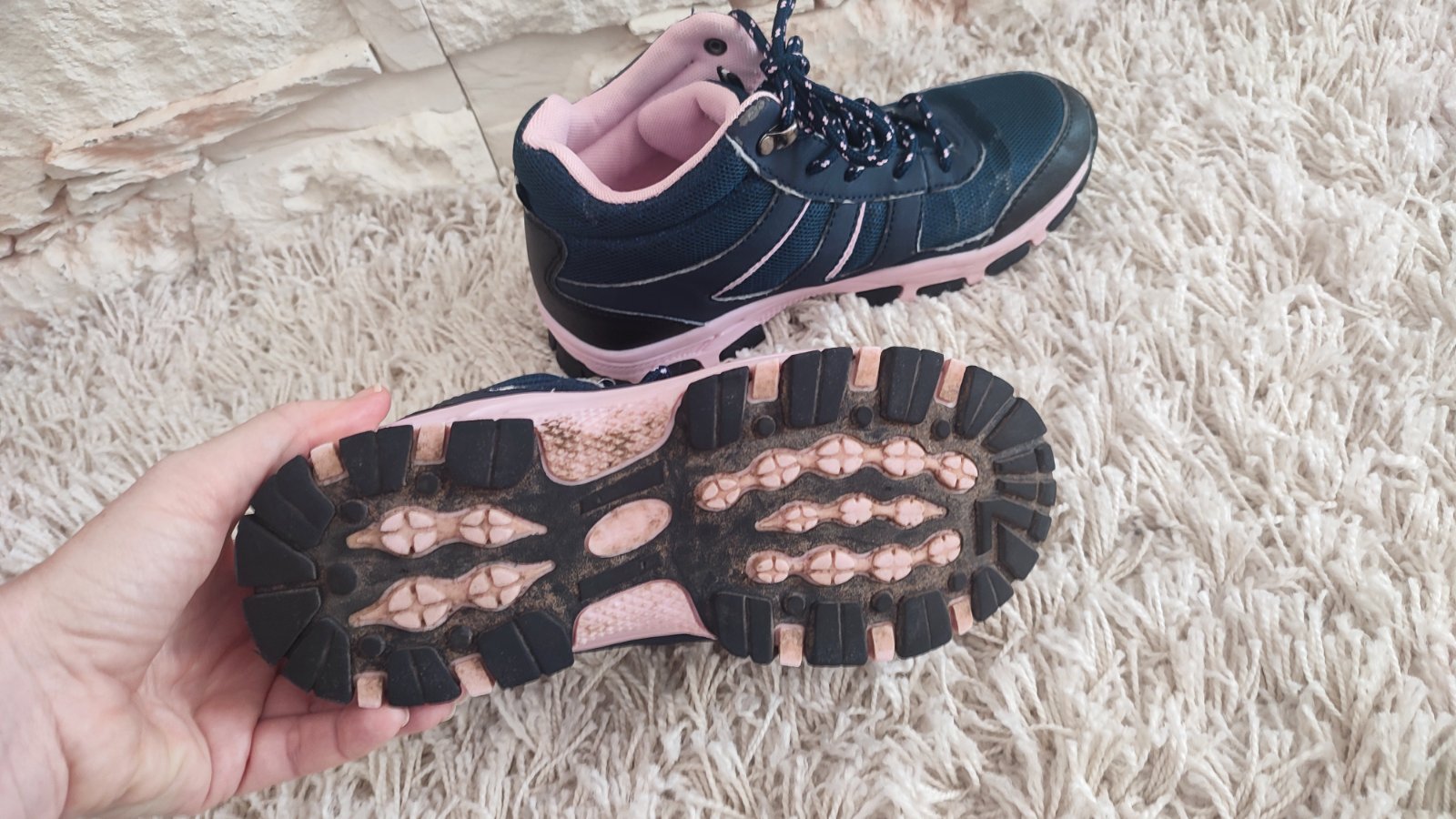 Ponukam pevné, turistické topánky s traktorkovou podrazkou, polstrovane. Maju osuchania v hornej časti, snažila som sa to podporiť, dala som ich do práčky a takto mi dopadli 😕. V prednej časti je spodná vrstva, pod sieťkou, akoby polamana/ prasknutá, pri nosení to nevadí, necítiť to.