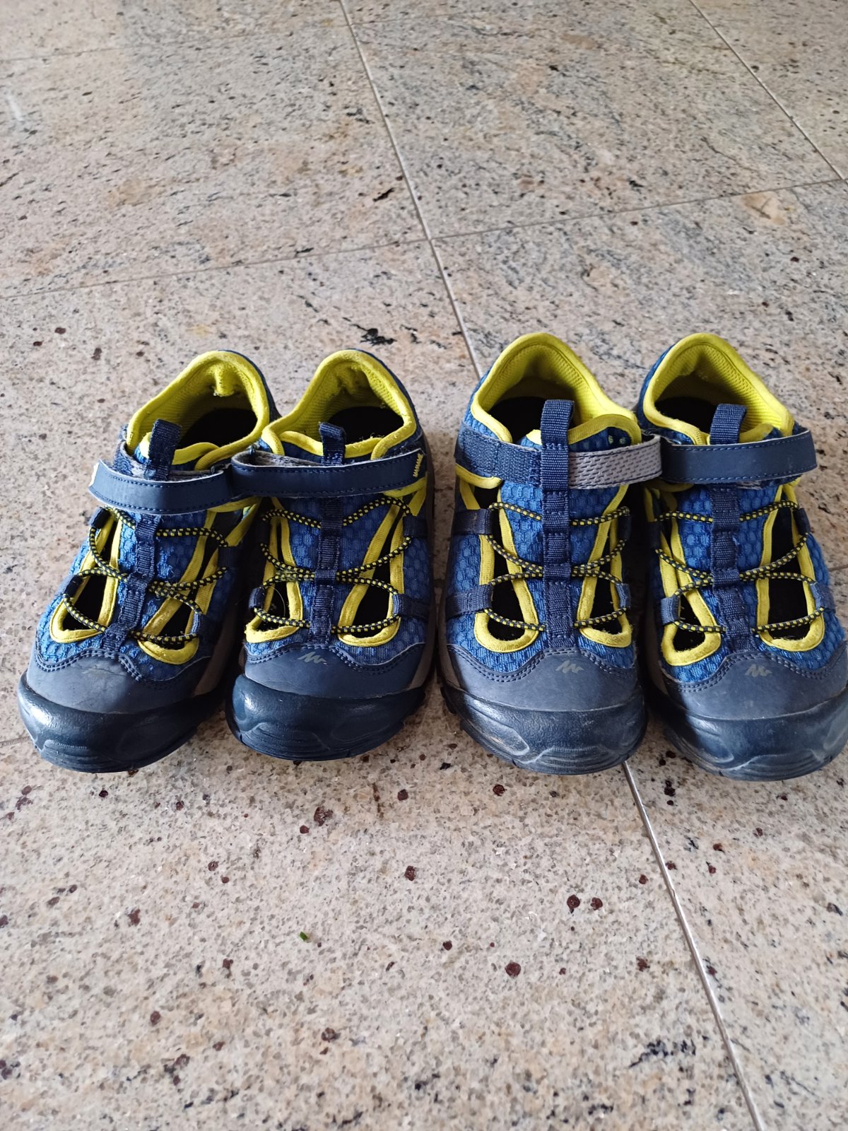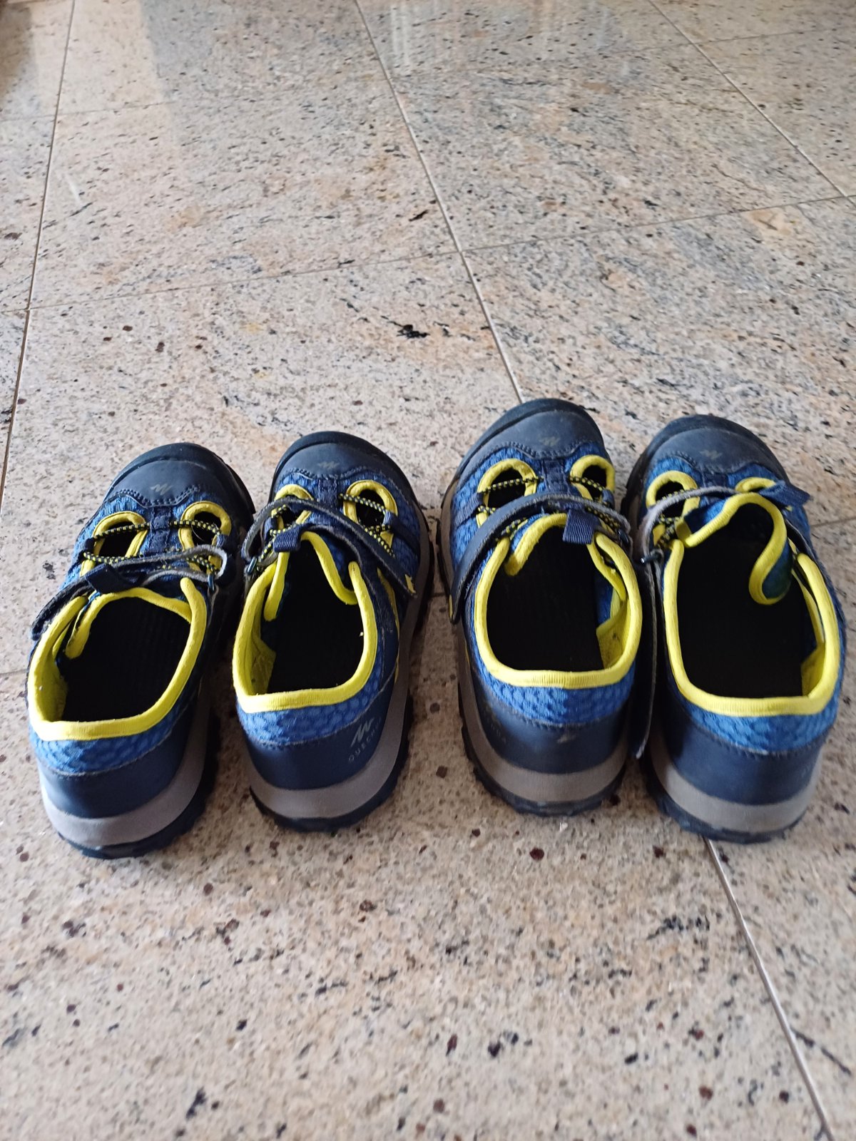 Dva pary turistickych tenisiek, oba nosene jednu sezonu, mensie velkost 28/29 vacsie 30/31. Obe v ezchybnom stave. Mensie vnutorna dlzka cca 18,5cm vacsie cca 19,0cm. Cena je za par