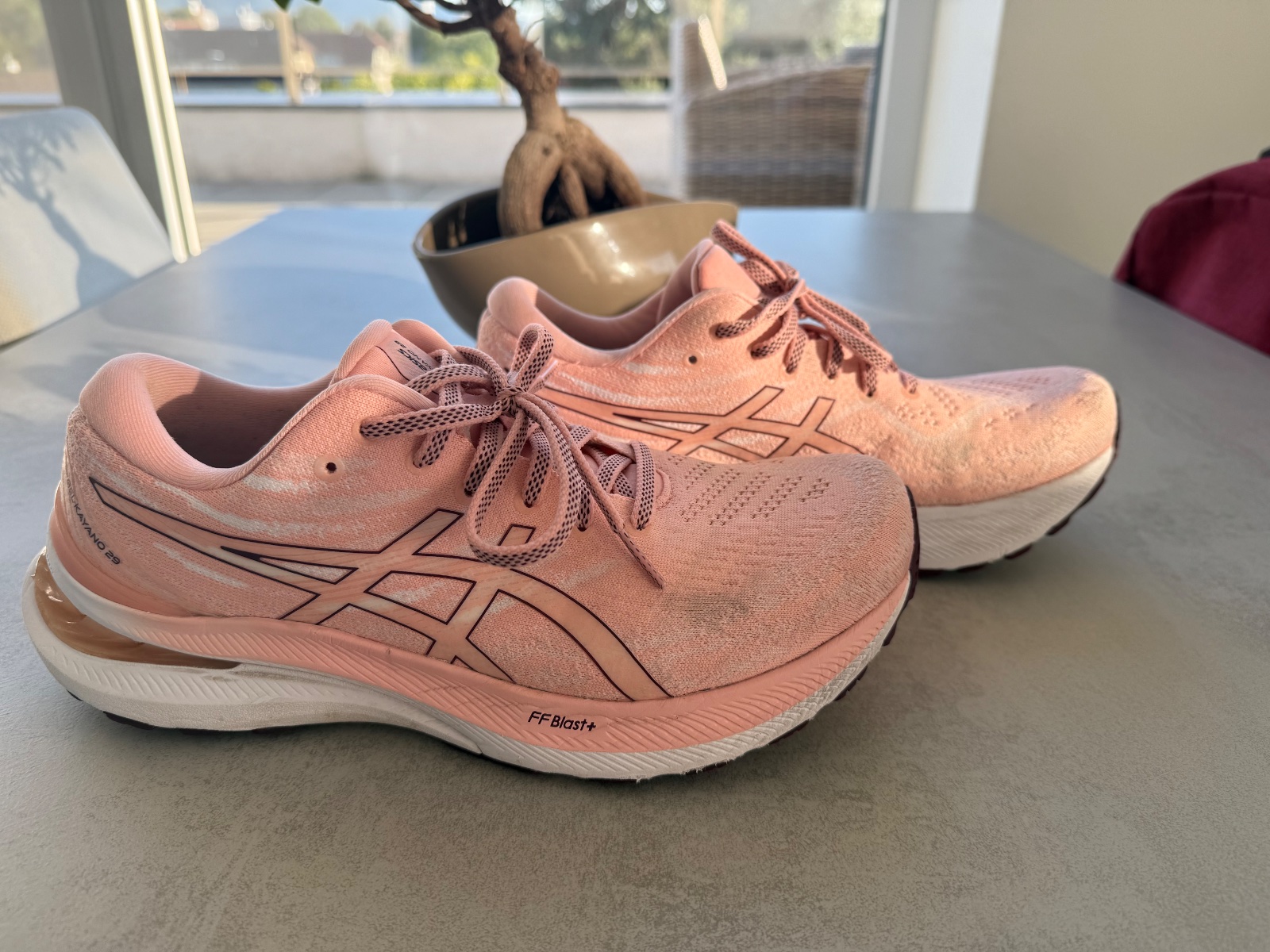 Predám bežeckú obuv, veľkosť 42, Asics gel-kayano 29. Mala som ich obuté asi 10-15x. Pôvodná cena bola cez 200€. Bežala som vzdy s kočíkom, tak su trochu obkopané od kolesa, žiadna vada.
