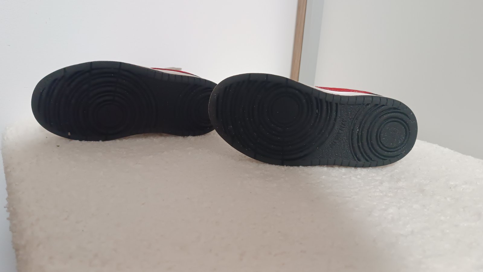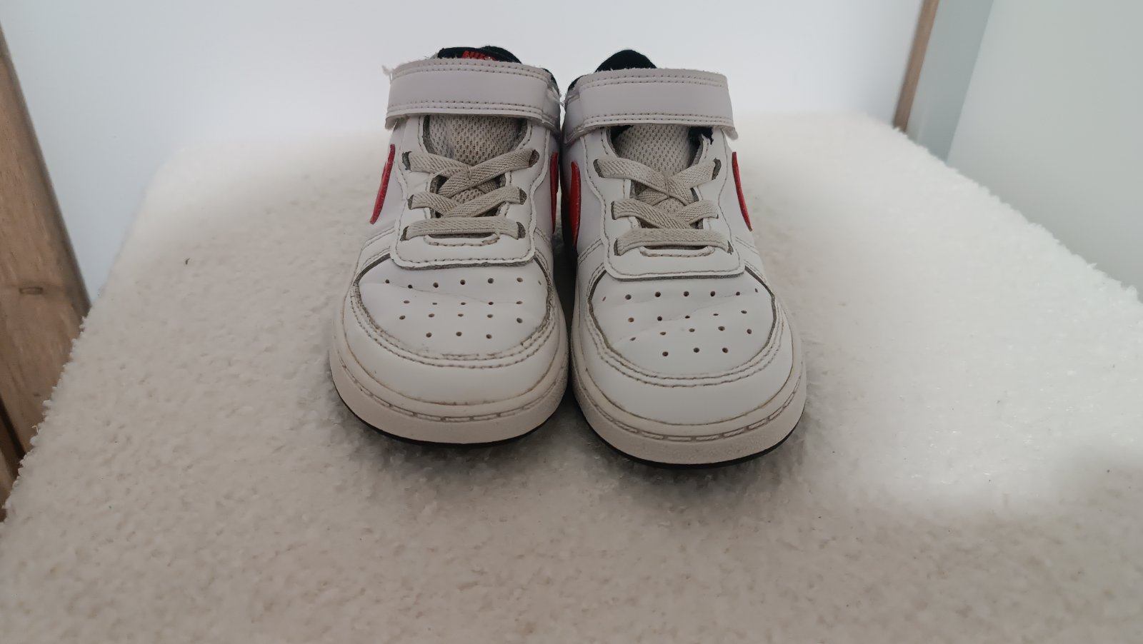 Krásne tenisky Nike, biela farba s červenými prvkami. Nie sú nejak veľmi osuchane, ale na špičke majú rozparane šitie - viď fotky. Vnútorná dĺžka je 16 cm.
