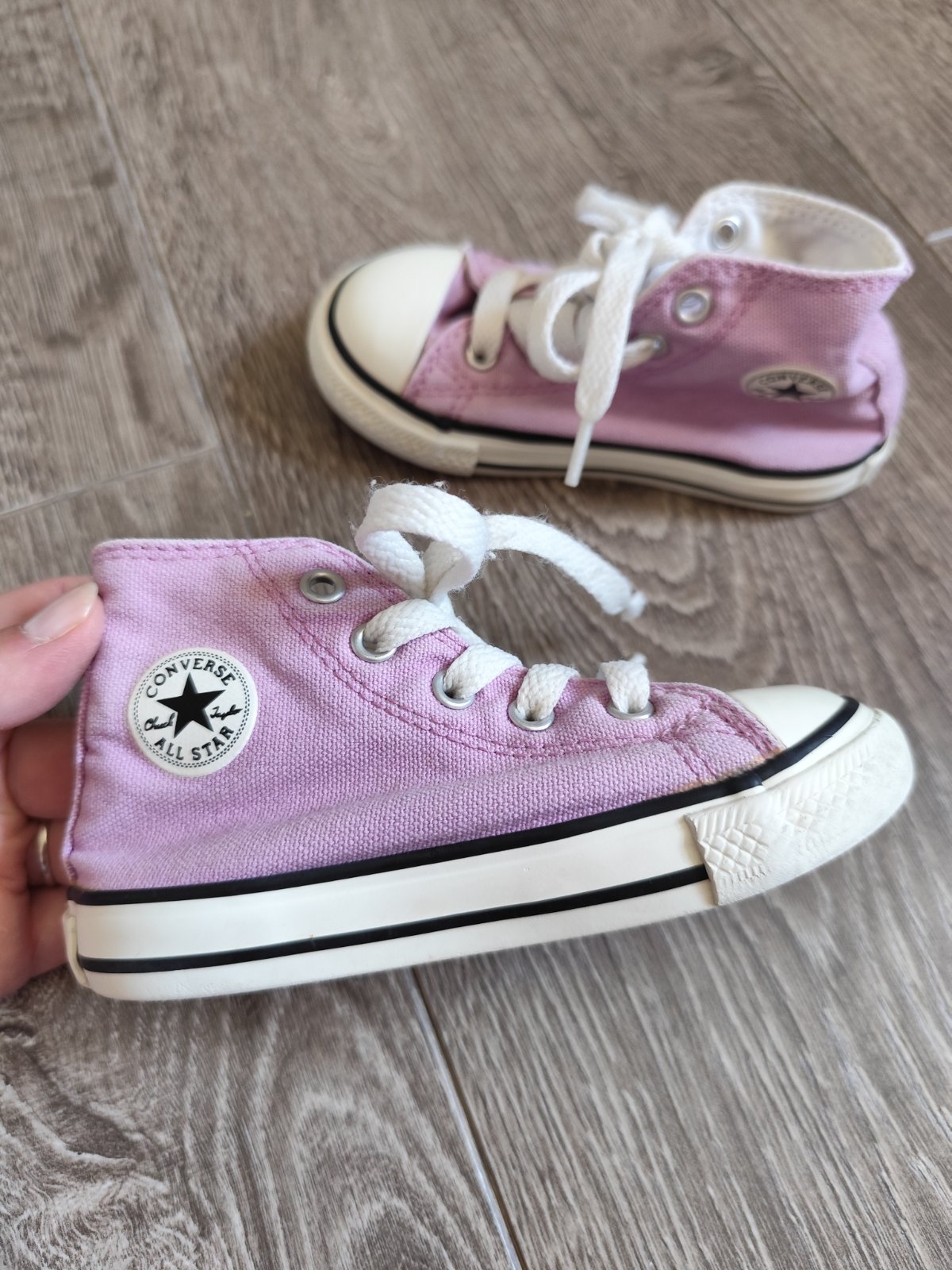 Tenisky su v top stave. Mini skriabnutia na prednej gume, ale to je vidiet az po skumani. Su neschodene, nezodrate. Vsetko som nafotila. Maju 14 cm. Naozaj krasne stylove, moderne. Pre maleho spid...
