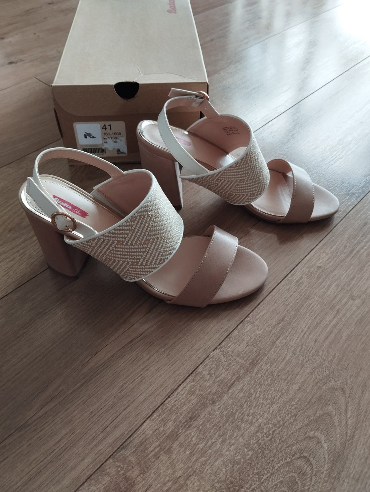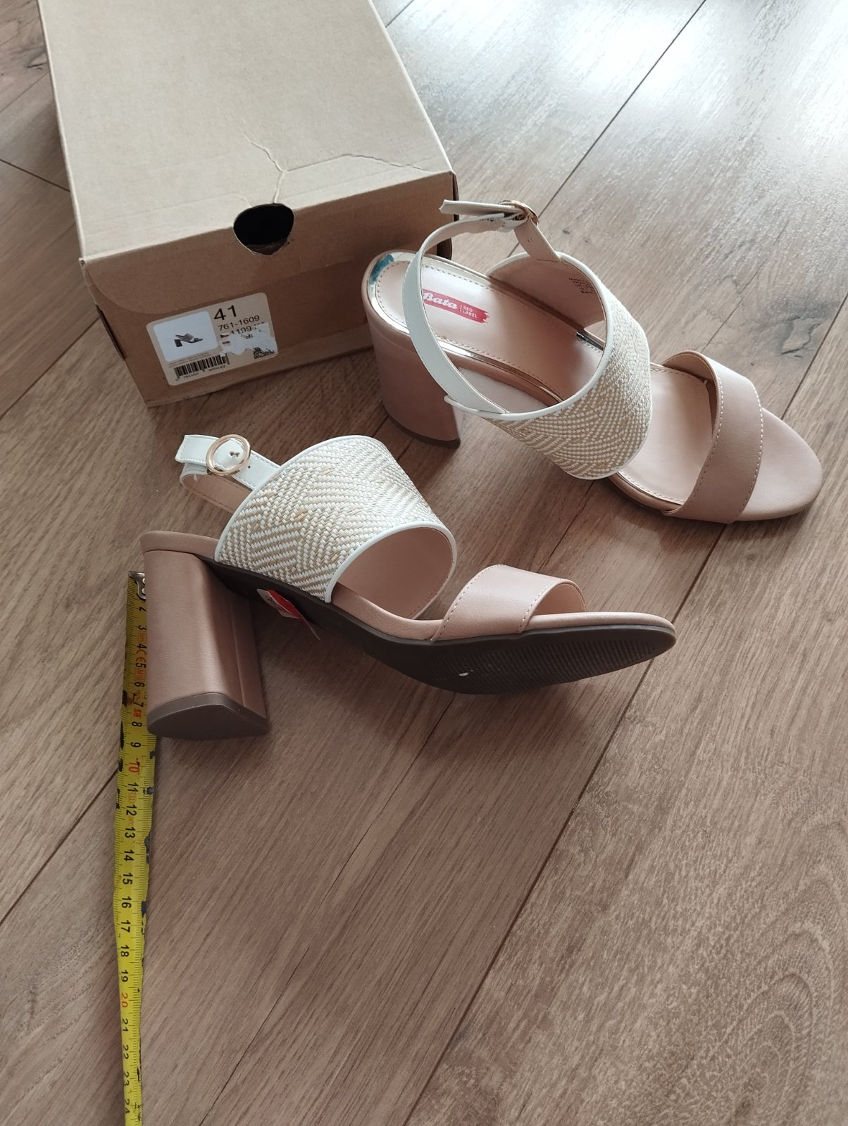 Baťa Insolia 41 - dámske kožené sandále Veľkosť: 41 Vnútorná dĺžka: 26 cm ✓ Vnútorná dĺžka po úplný koniec päty: 26,5 cm ✓ Podpätok: 10,50 cm Pôvodná cena: 54,99€