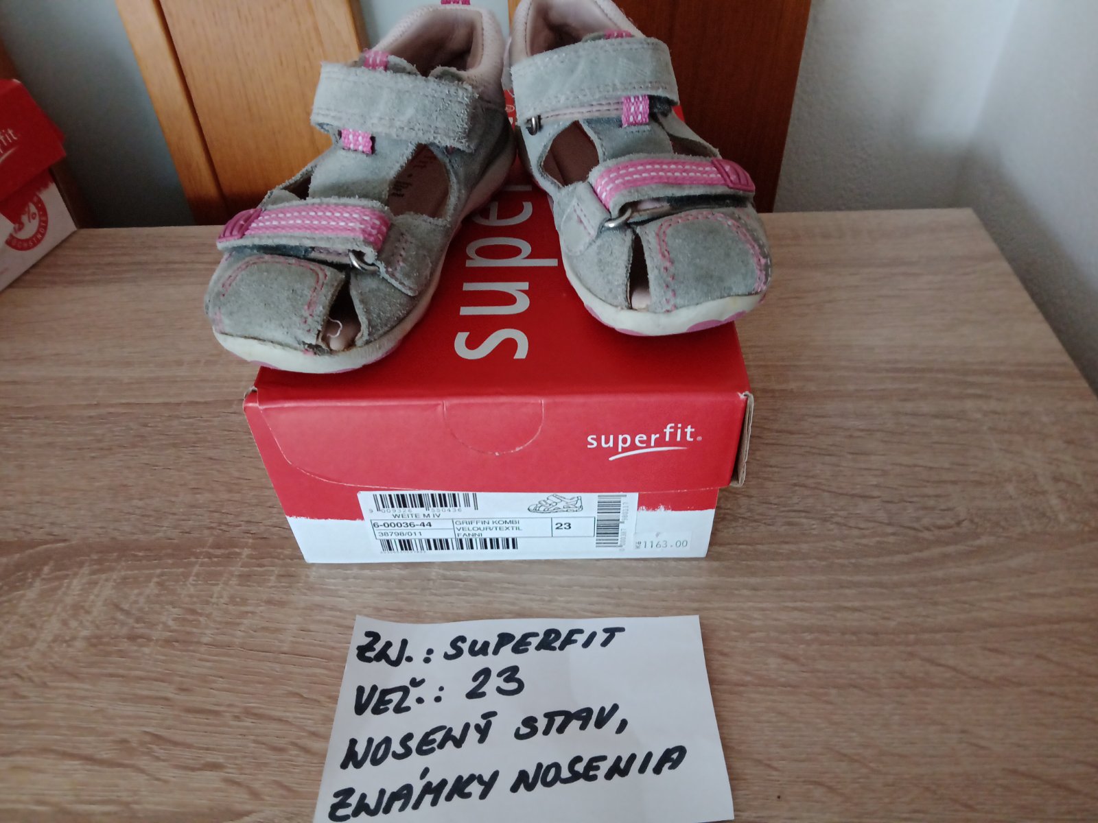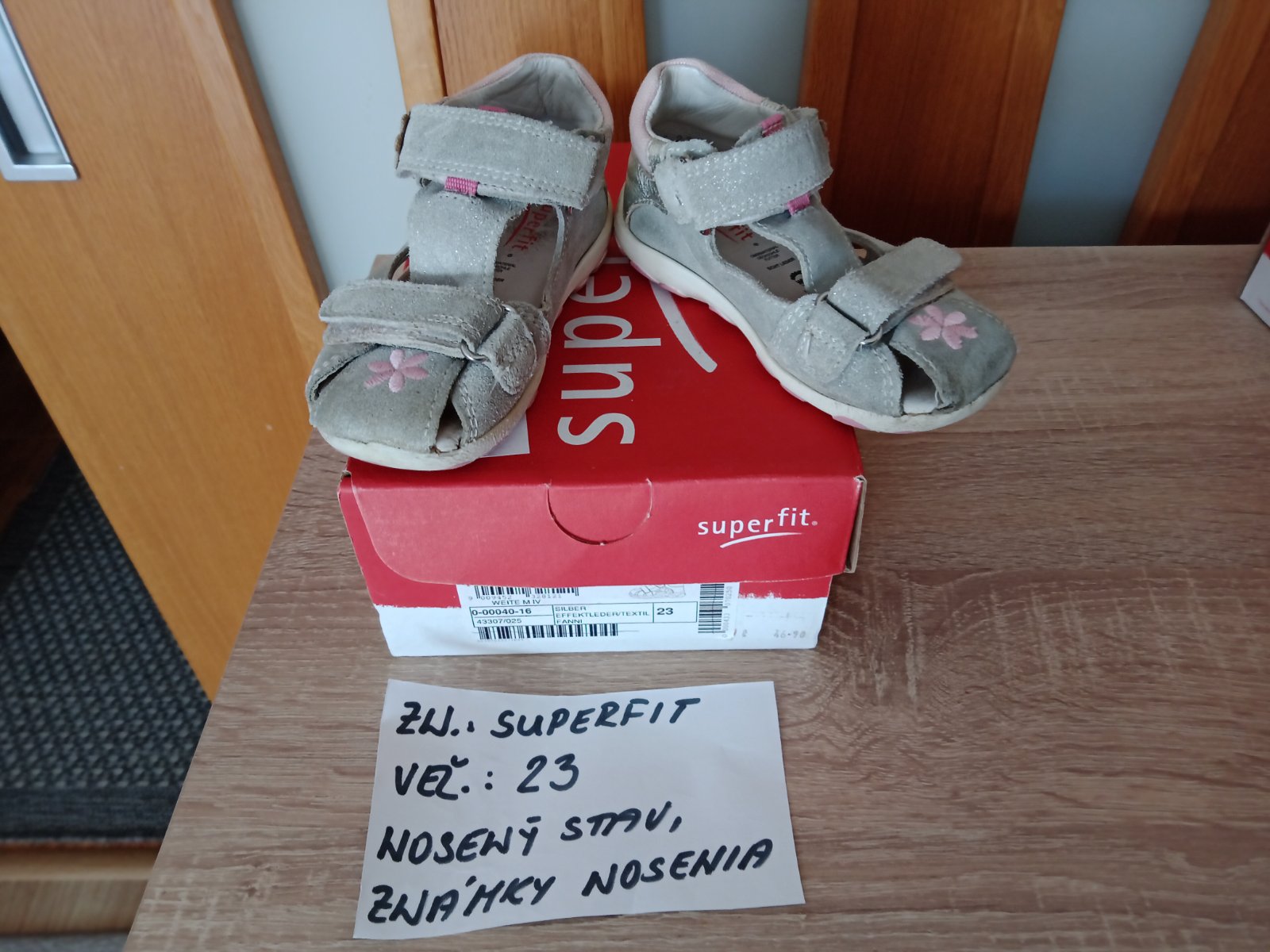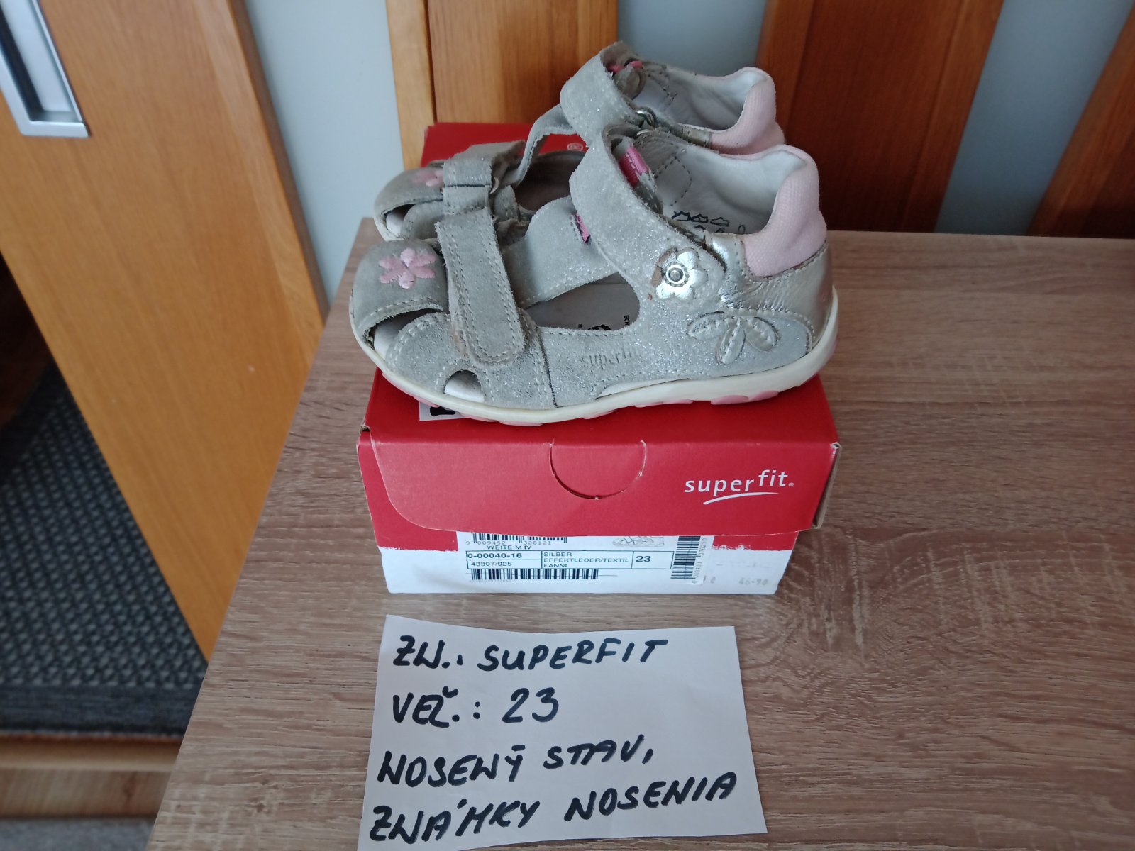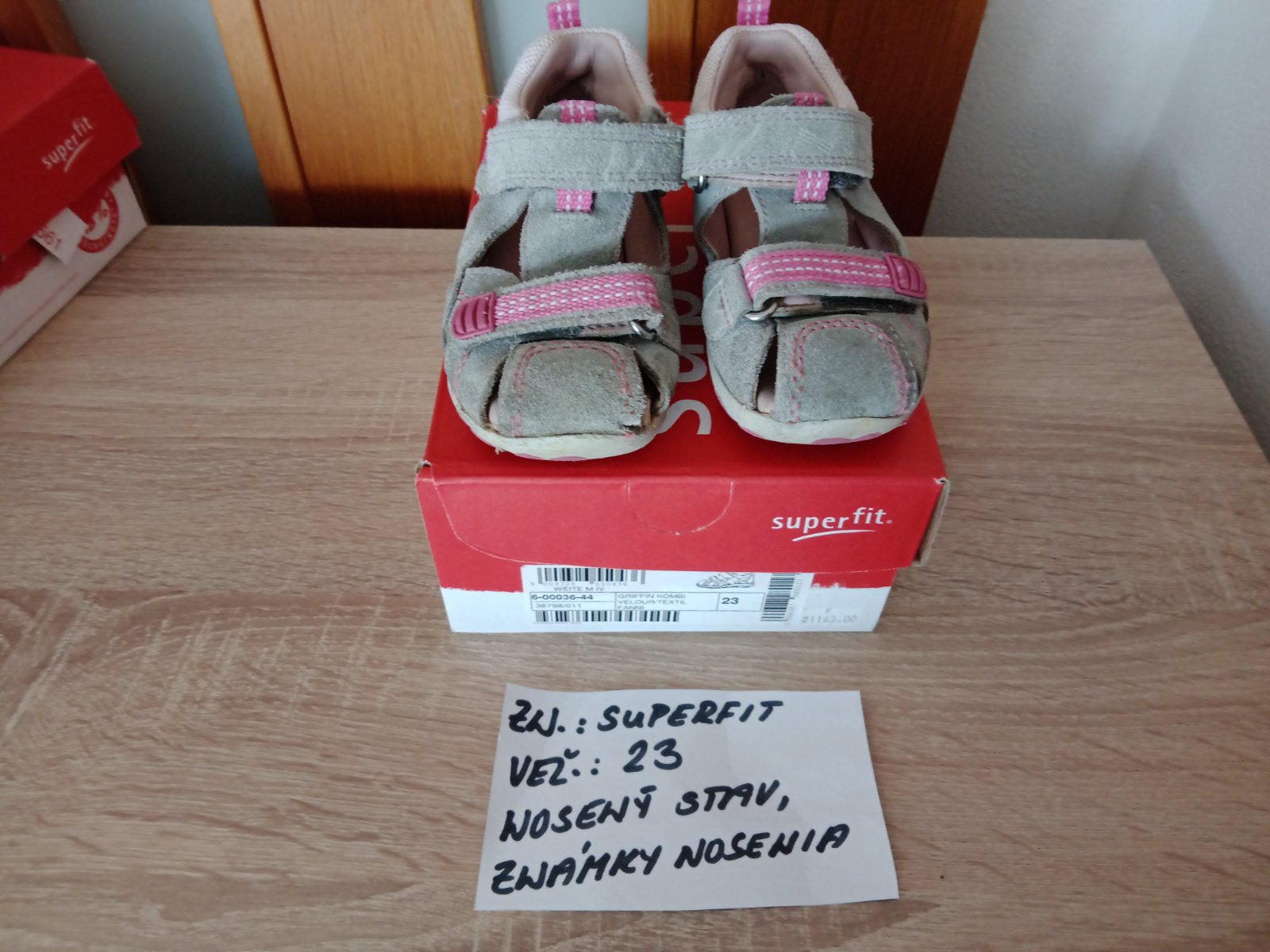 Dievčenské sandále zn.Superfit veľ.23,v nosenom stave,sú na nich známky nosenia hlavne vpredu,na jednej sandále každého páru je trošku poškodenie(natrhnuté),ale nepara sa to ďalej. na nosenie po záhrade,alebo po dvore možno ešte niekomu poslúžia.Cena za pár 5eur.