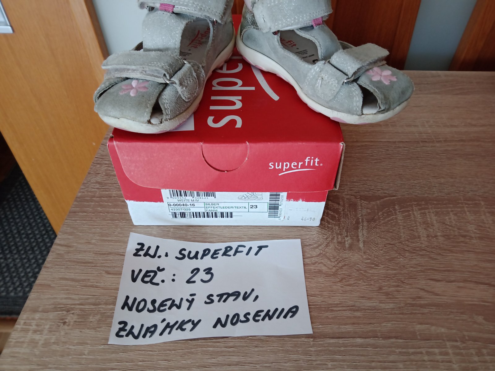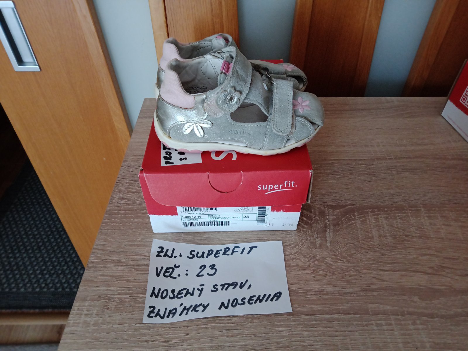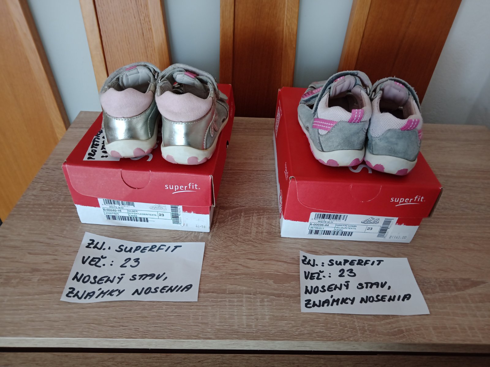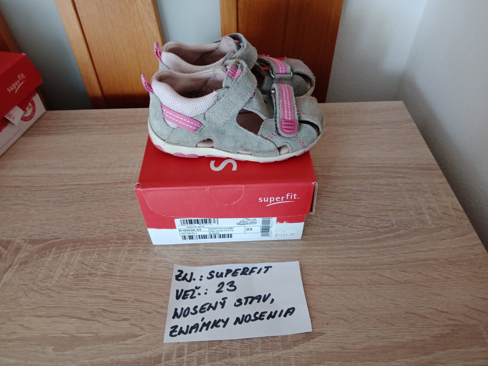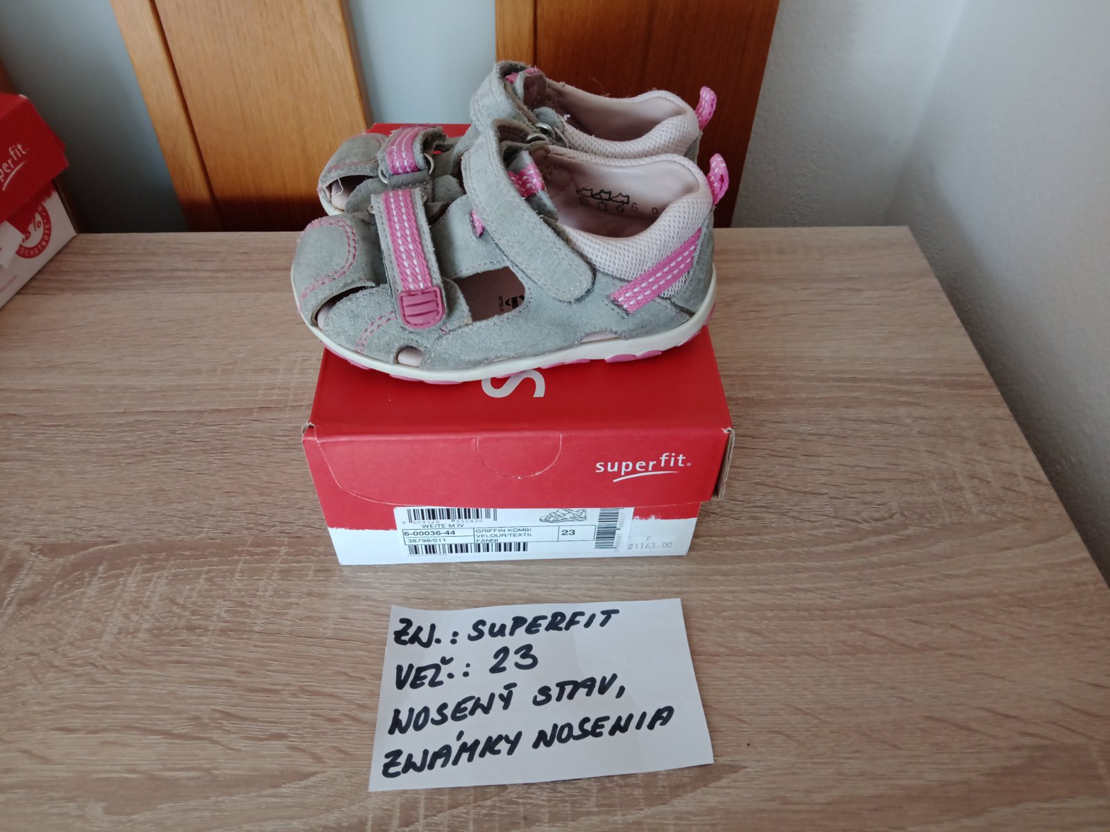 Dievčenské sandále zn.Superfit veľ.23,v nosenom stave,sú na nich známky nosenia hlavne vpredu,na jednej sandále každého páru je trošku poškodenie(natrhnuté),ale nepara sa to ďalej. na nosenie po záhrade,alebo po dvore možno ešte niekomu poslúžia.Cena za pár 5eur.